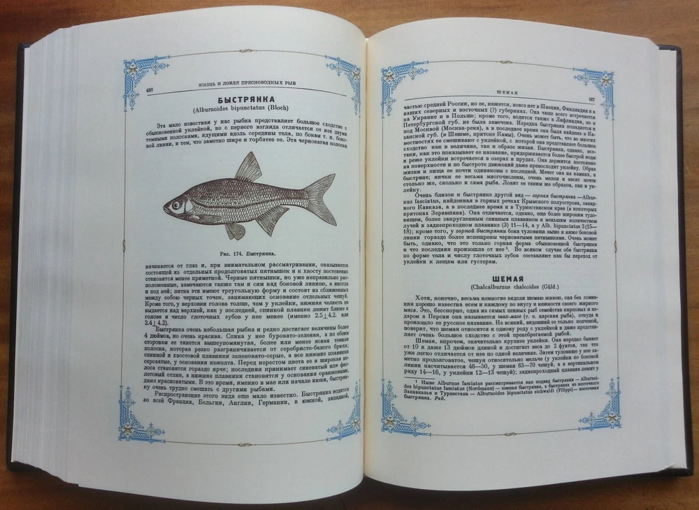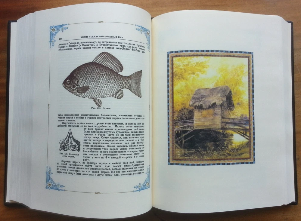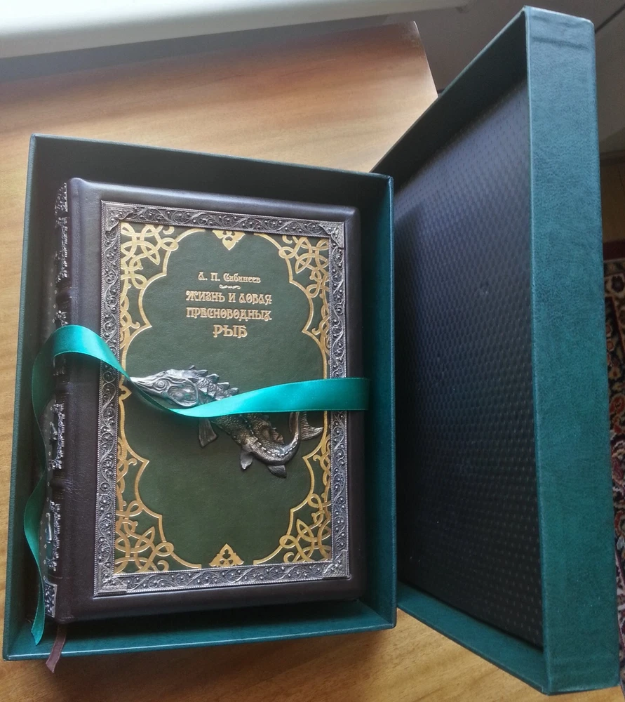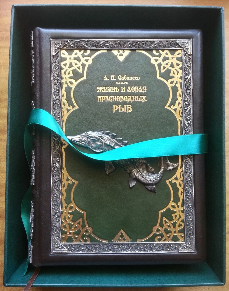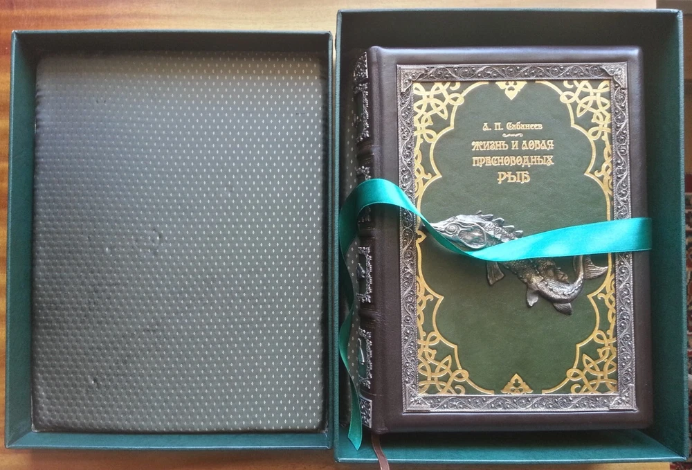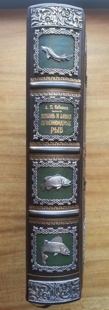 Сабанеев Л. П. Жизнь и ловля пресноводных рыб. С приложением `Рыболовного календаря` Л. П. Сабанеева. Киев, Киевское общество Купола, 2016 г., 667 с. В цельнокожаном художественном переплете с блинтовым золотым тиснением, скань ручной работы, футляр, формат 22х29,5 см. Книга «Жизнь и ловля пресноводных рыб» - репринт с третьего издания работы Л. П. Сабанеева «Рыбы России», вышедшей в 1911 году. Л. П. Сабанеев является классиком русской охотничьей литературы и литературы по спортивной ловле рыб. Это великолепное эксклюзивное издание станет отличным подарком всем любителям рыбалки. Цена включает в себя стоимость пересылки в США. Стоимость пересылки по ЕС существенно ниже, соответственно уменьшиться и цена книг.