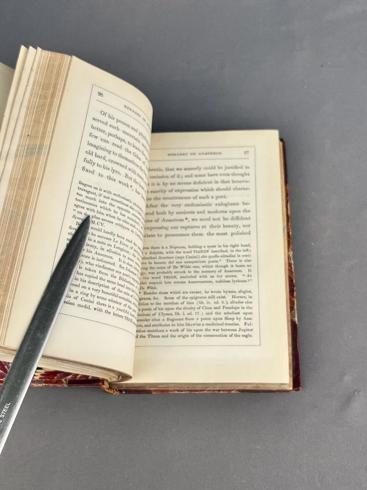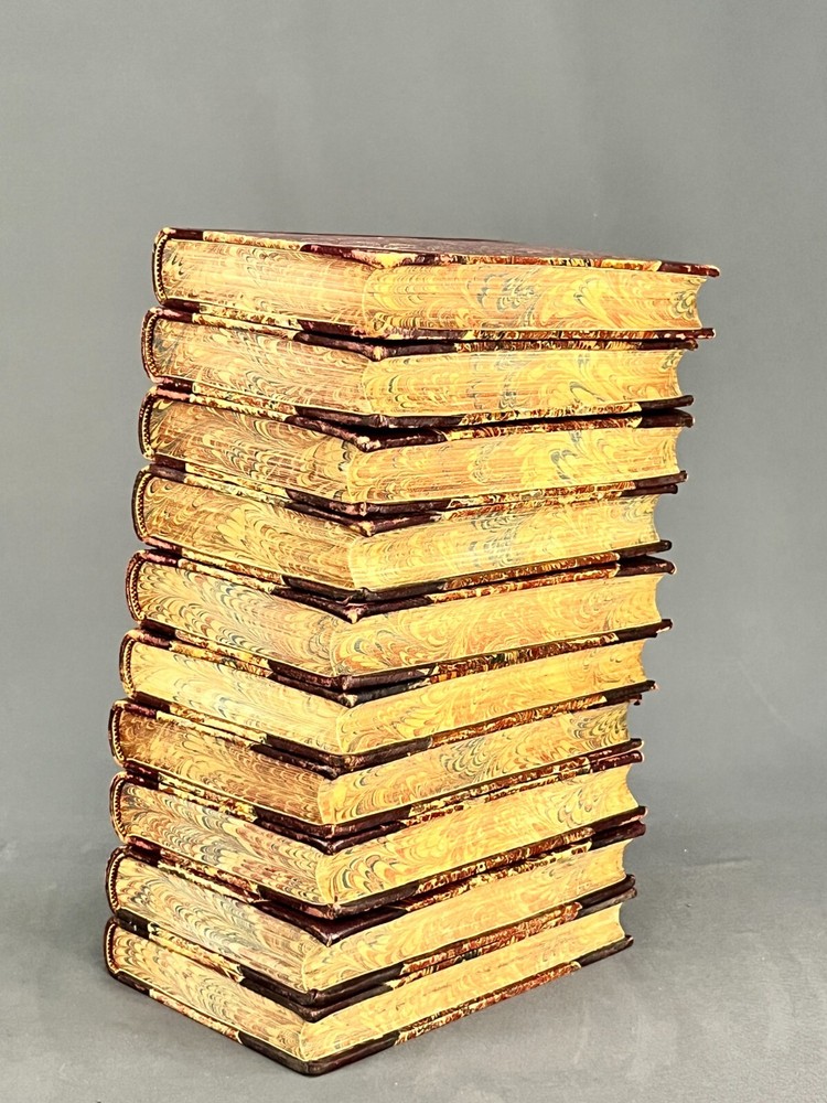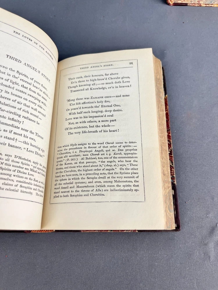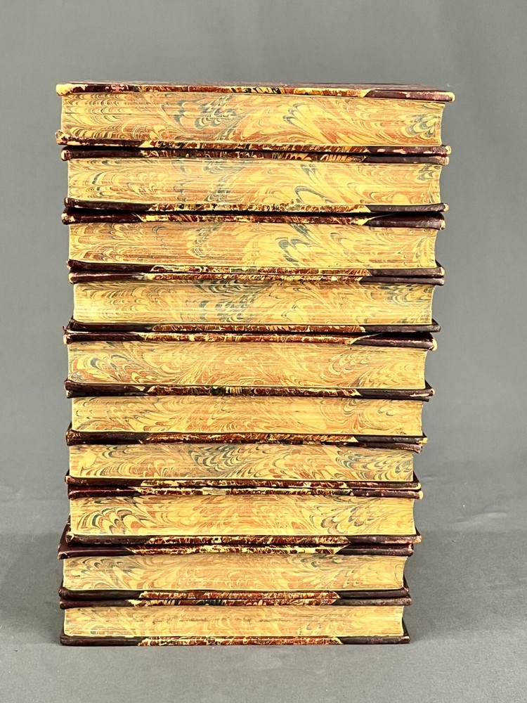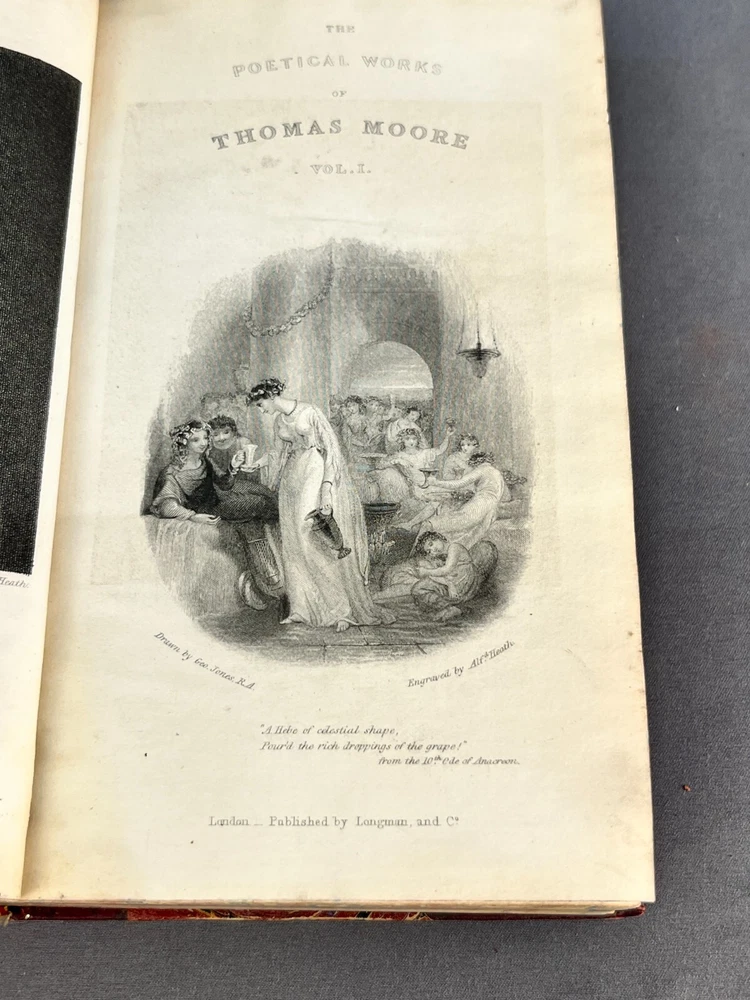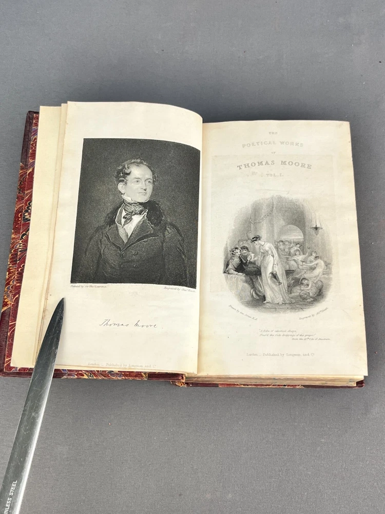 Fabulous, a complete10 Volume Set of The Poetical Works of Thomas Moore, circa 1869. Leather bindings, they books measure 6 3/4" X 4 3/8" X 1" thick. Each book has a name plate in the interior, as pictured. 2 Illustrated pages in the first few pages of the book. Excellent condition overall with no breaks to the leather spines. Some minor spotting on a few pages here and there. The only real issue is that volume 5 has some wrinkling on 10-12 pages, but minor. A fine addition to any home or collection! Shipping is FREE in the Continental USA. Please email for an international shipping quote. All items come from a smoke free home. Items are usually shipped within 24 hours of receiving payment. Email us your questions and check out our fully stocked eBay Store! Please contact us if you have any questions at all. We are here to help you with your purchase decisions. Please view the total listing as there are more pictures at the bottom of the listing. Shipping Cost, if quoted in the listing, is an estimate and is based upon us using the least expensive way of shipping to you if your address is a street address in the Continental United States Only (48 States), all others (i.e., foreign country, Alaska, and Hawaii residents), please contact us prior to purchase for a shipping quote. Thank you