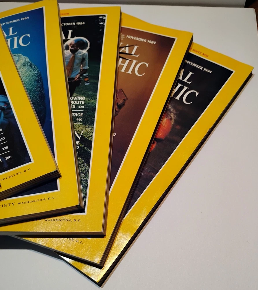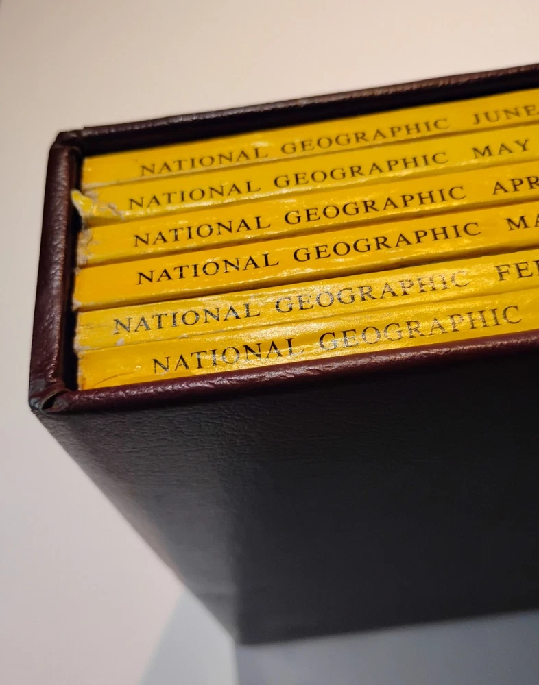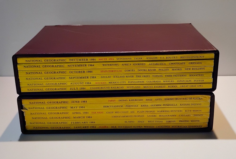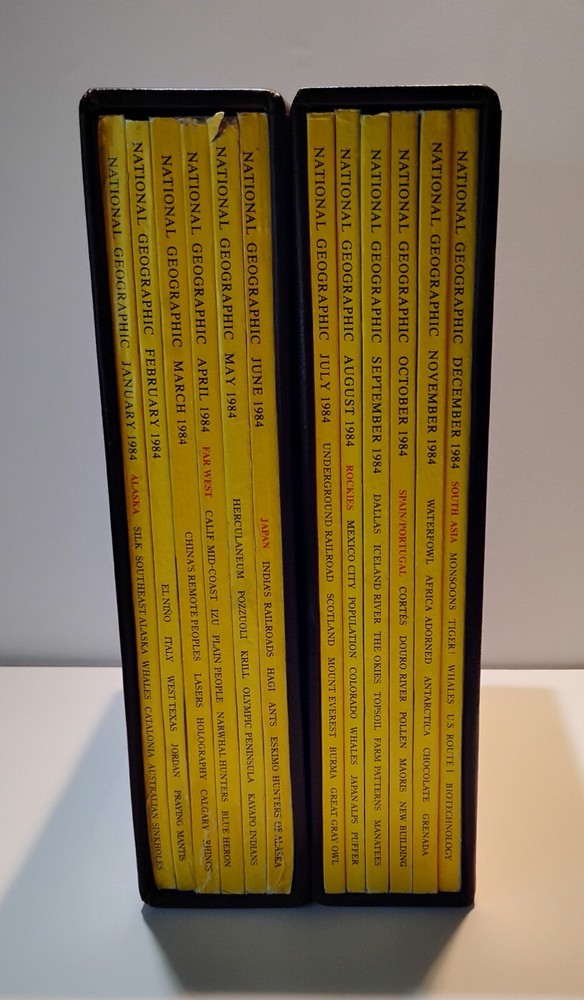 This complete set of National Geographic magazines from 1984 is a must-have for any collector or enthusiast of exploration and travel. The faux leather slip covers add a touch of sophistication to this unique collection. The publisher, National Geographic Society, is well-known for its dedication to exploration and discovery, making this set a perfect addition to any collection. The magazines cover a range of topics related to exploration and travel, making them a great resource for anyone interested in the subject. Whether you are a history buff or a current or former explorer, this set is sure to provide hours of enjoyment and inspiration. Add it to your collection today! Includes March 1984 Hologram Cover * See photos *