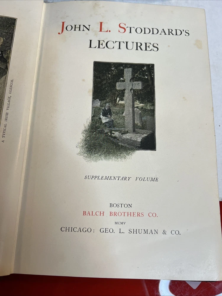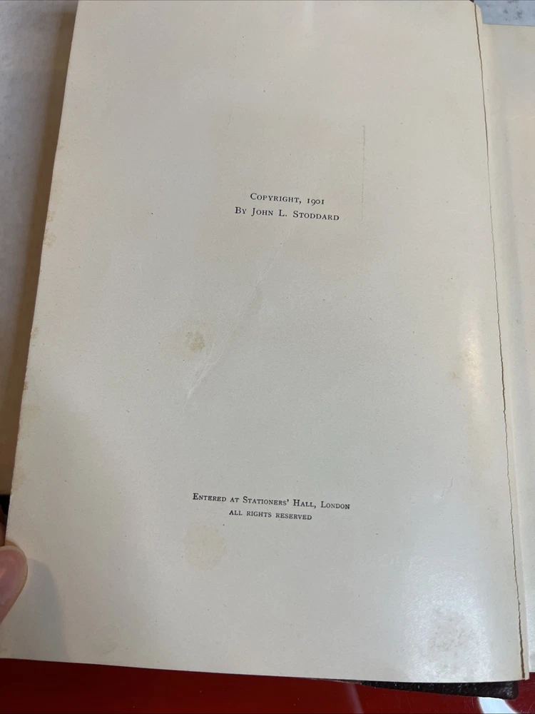 This beautiful leather-bound set of books is a must-have for any collector or travel enthusiast. It includes 12 volumes of "Stoddard's Lectures" from 1897, along with a set of illustrated travel color pictures. The books are in great shape and have been well-preserved over the years. The topics covered in these books are varied and interesting, with a focus on travel and adventure. The books are perfect for reading and collecting, and would make a great addition to any library. The beautiful leather binding adds to the charm and value of this set. Don't miss out on the opportunity to own this rare and unique collection of books!