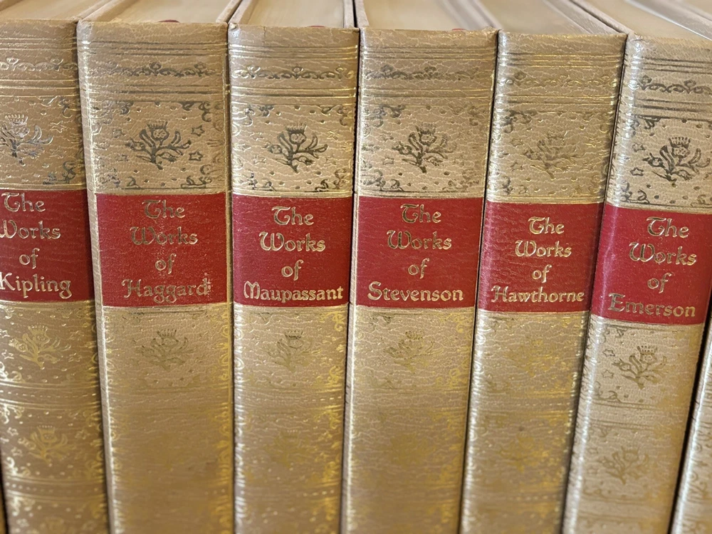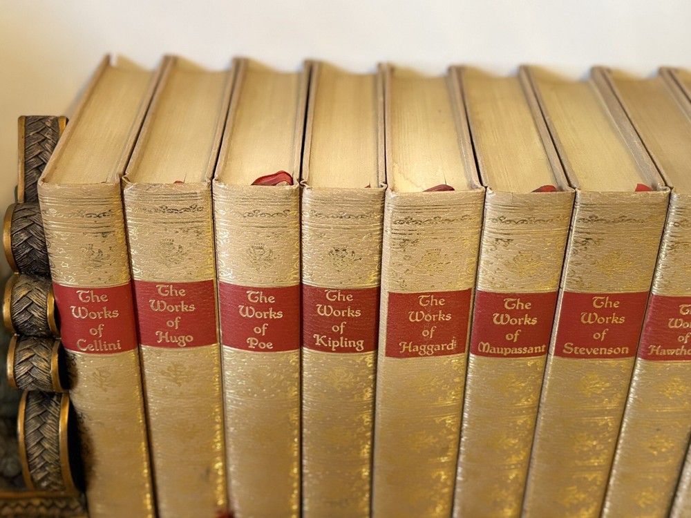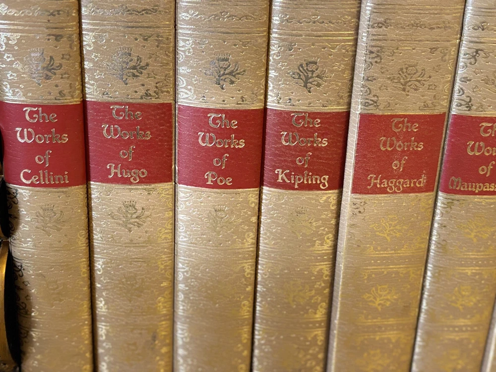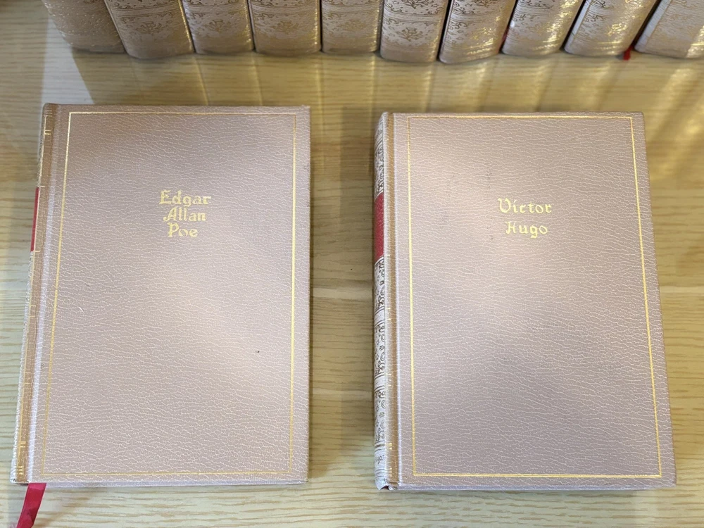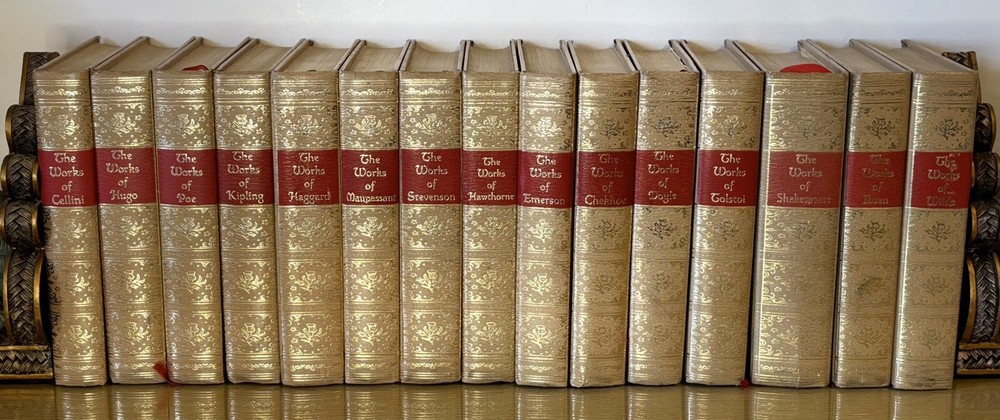 14 books VG Like New. 1 Doyle acceptable The product is a collector's edition book set from Blacks Readers Service featuring works by Shakespeare, Doyle, Hawthorne, Stevenson, Hugo, and Cellini. The books are bound in leather and published by Easton Press in English, making them classics in literature and fiction. This original edition set does not appear to be signed or personalized, but it is a valuable addition to any collection for fans of these renowned authors and their timeless works.