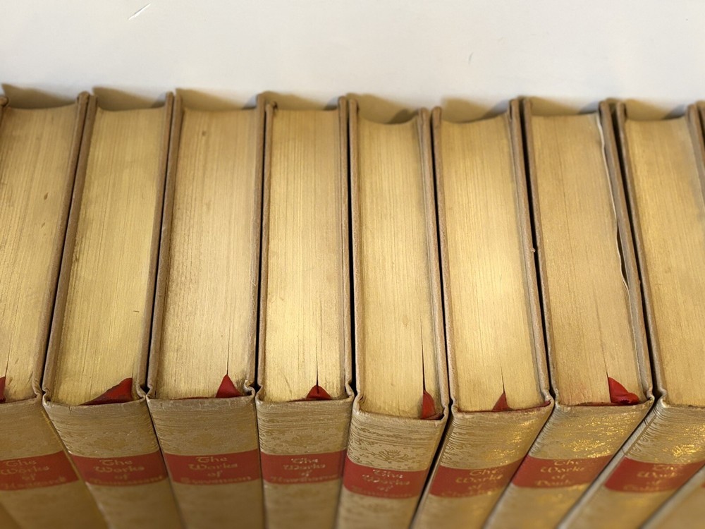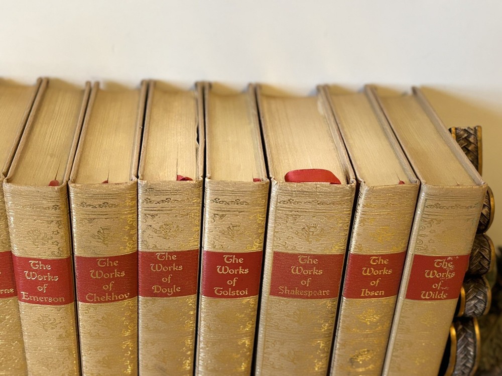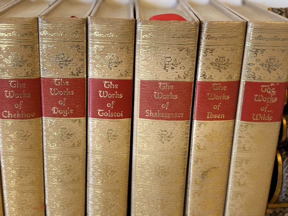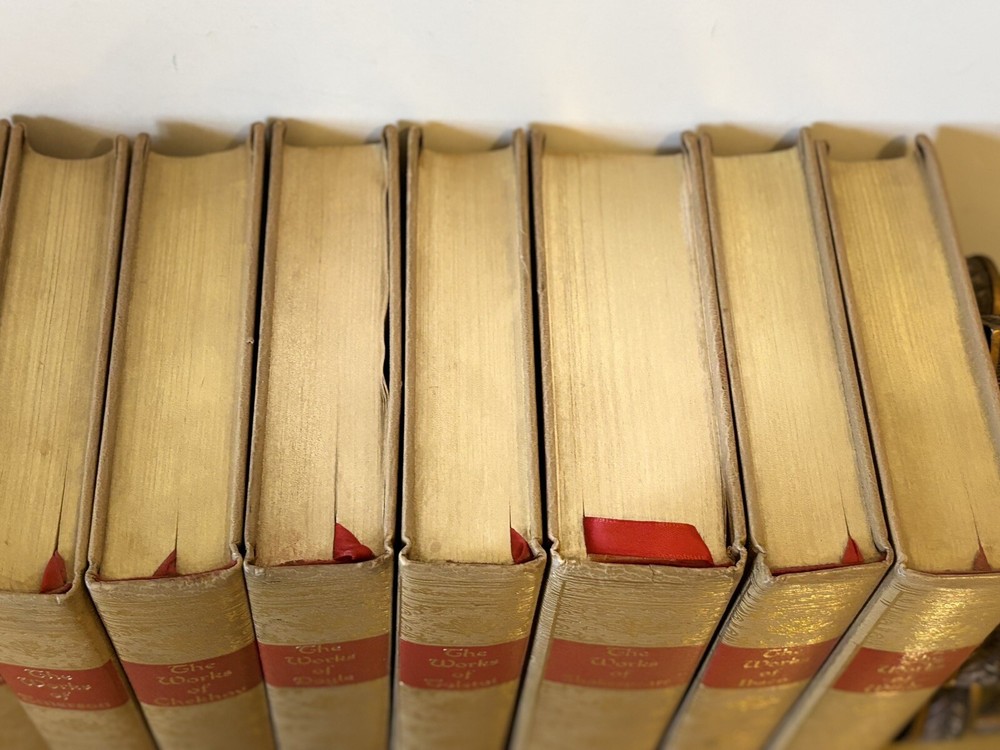 14 books VG Like New. 1 Doyle acceptable The product is a collector's edition book set from Blacks Readers Service featuring works by Shakespeare, Doyle, Hawthorne, Stevenson, Hugo, and Cellini. The books are bound in leather and published by Easton Press in English, making them classics in literature and fiction. This original edition set does not appear to be signed or personalized, but it is a valuable addition to any collection for fans of these renowned authors and their timeless works.