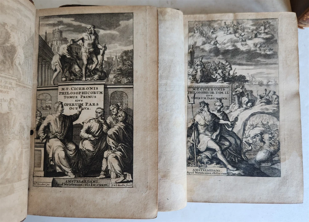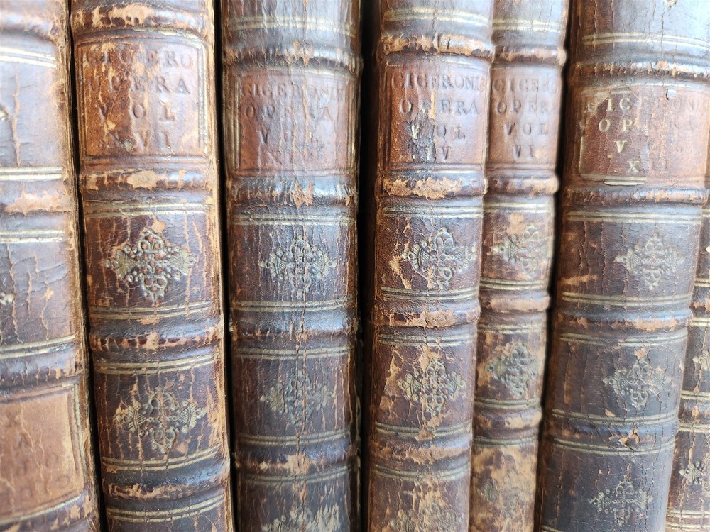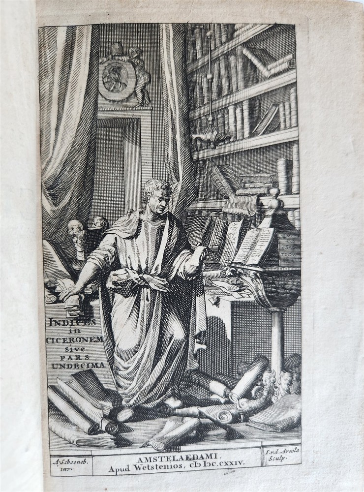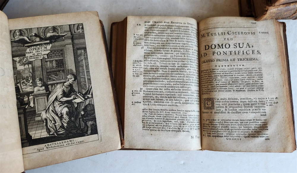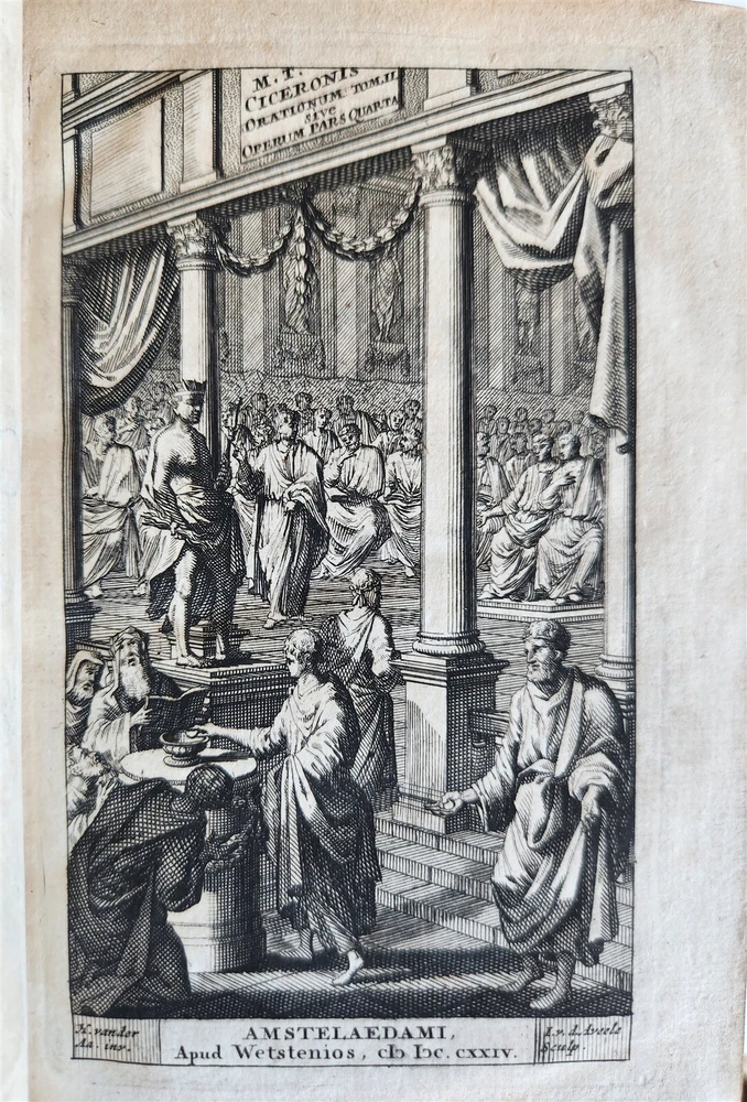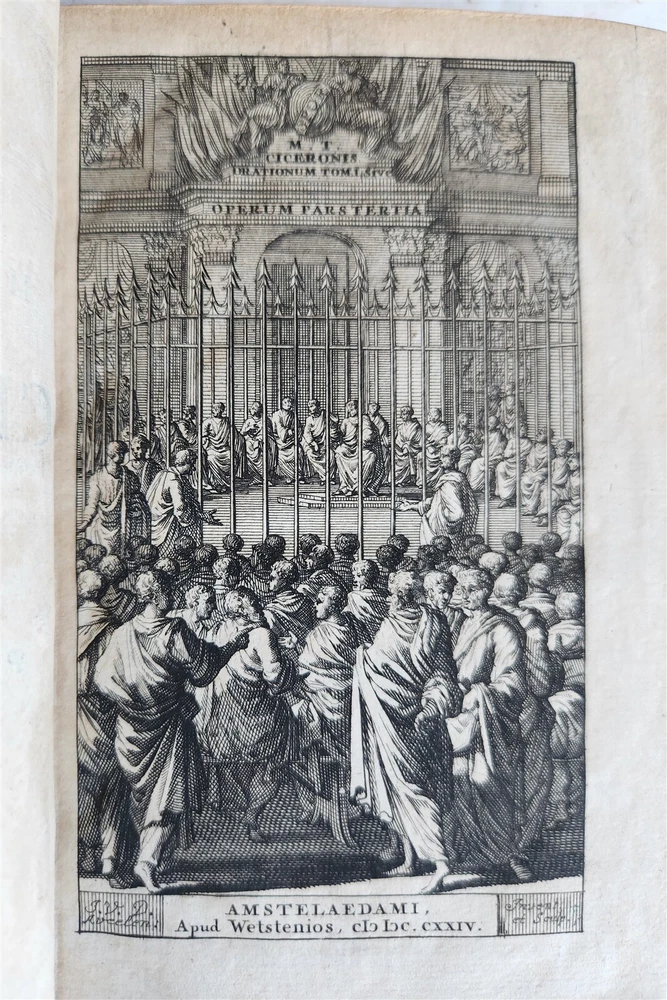 MARCI TULLII CICERONIS OPERUM Amsterdam; 1724 16 volumes, complete set Size 4 1/3 by 6 3/4" Original calf, ribbed spines Part of the volumes with illustrated frontispieces Some wear of bindings, very good interior, minor occasional foxing. Text in Latin ===================== Please see my other auctions Thank You Refund Policy: We will issue a FULL REFUND, 100% money back if you are not satisfied with your purchase. Items must be returned to us within 20 days in order to receive a refund or replacement. Buyer is responsible for shipping costs. Powered by SixBit's eCommerce Solution