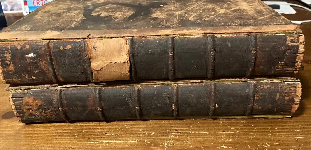 14.5 x 9 inches. Original leaves bindings with boards detached. Contents secure and well preserved. Volune I 699 pages plus errata and index. Volume 2 568 pages. Unable to find another example....