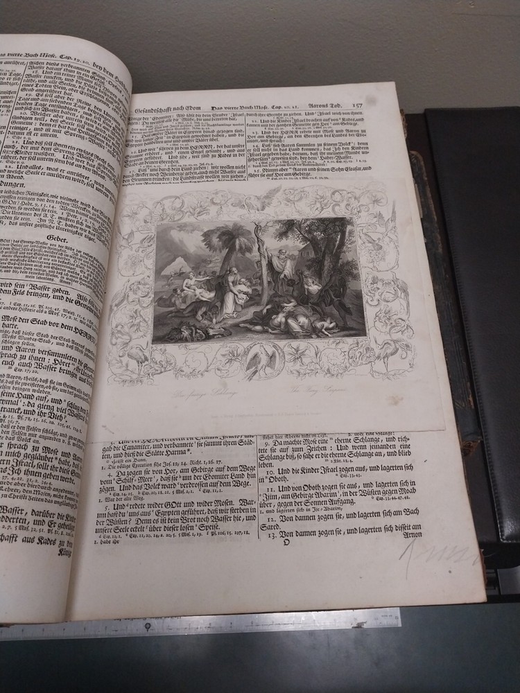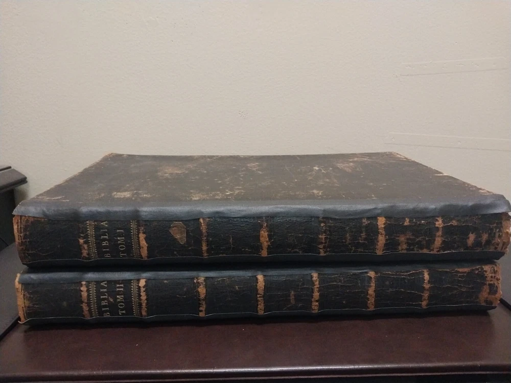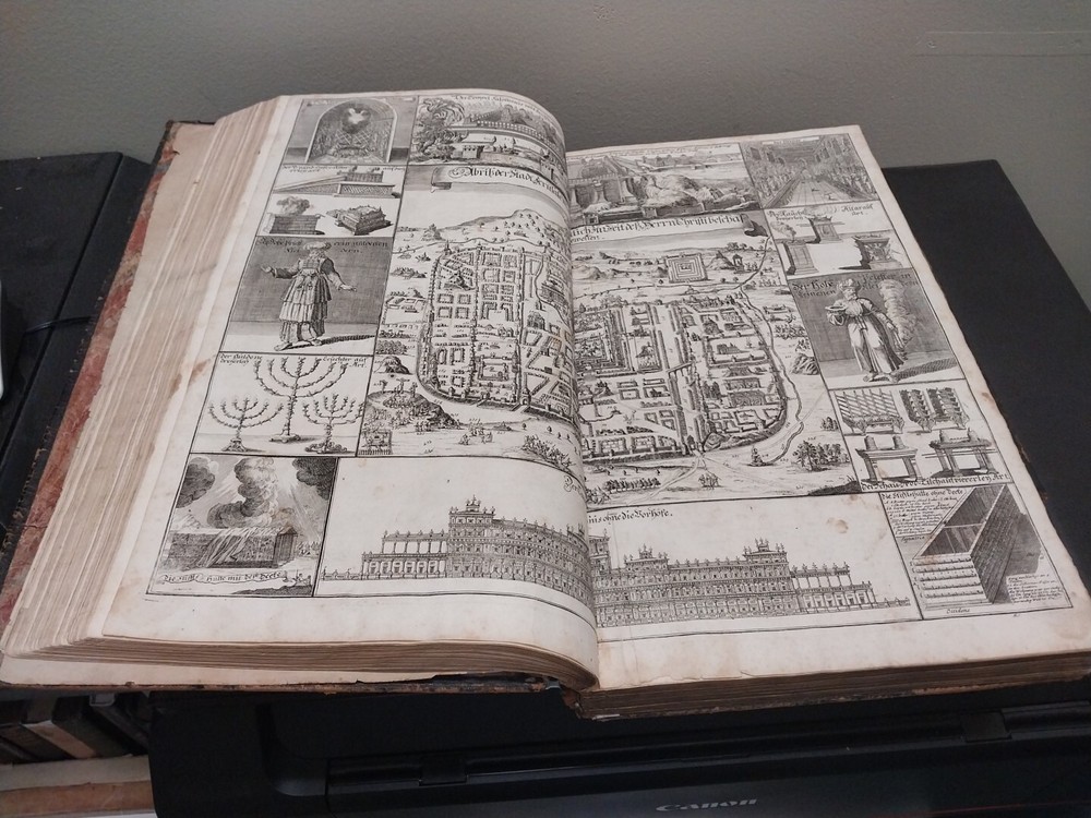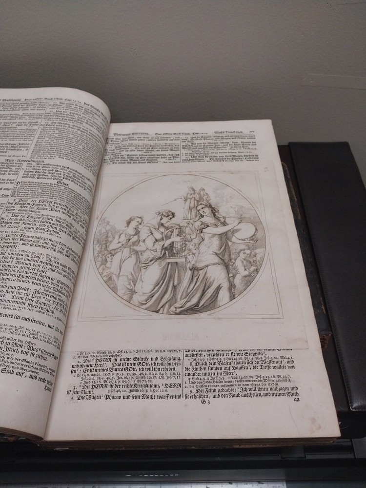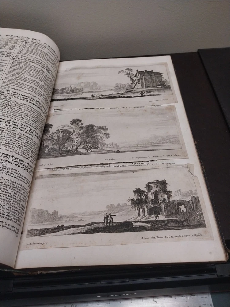 This 1730 2 Volumes Folio Martin Luther Bible (Old Testament Only) is a valuable addition to any collection of antique and collectible books. The hardcover binding and original language make it a rare find for those interested in Christianity and Bibles. With its two volumes, this Bible is perfect for anyone looking to delve into the old testament. Many engravings bound in, mostly in the first volume. This item is a must-have for any book collector or enthusiast. Each measure about 17.25 in x 11.25 in and combined about 4.5 inches thick.