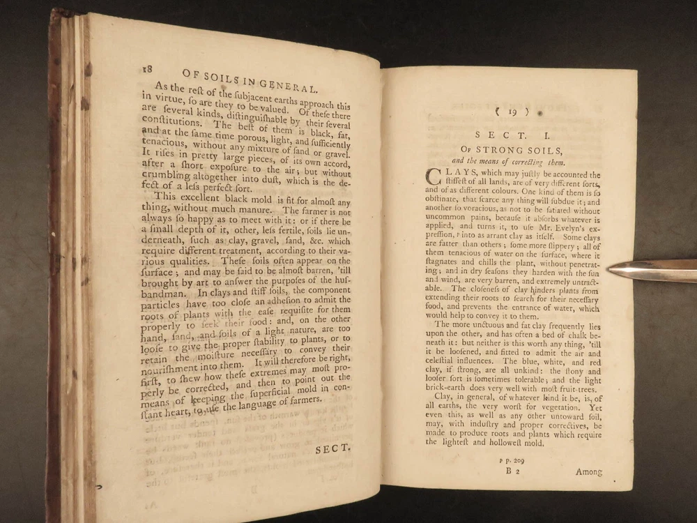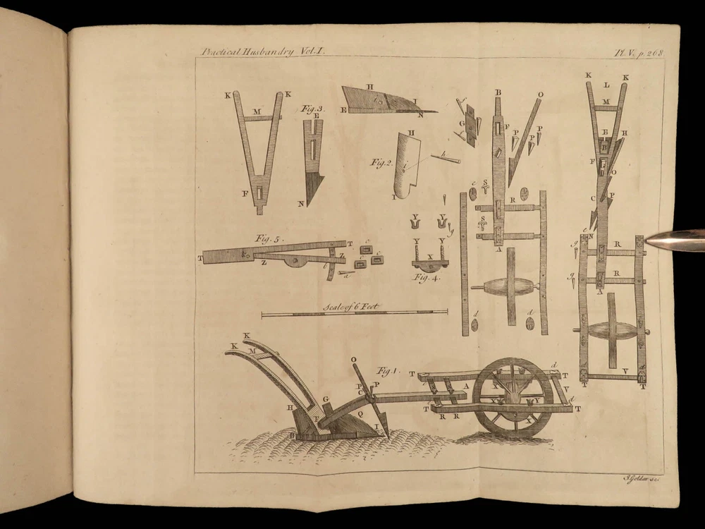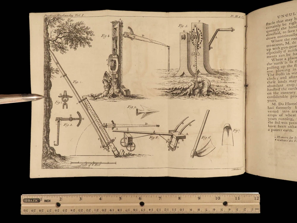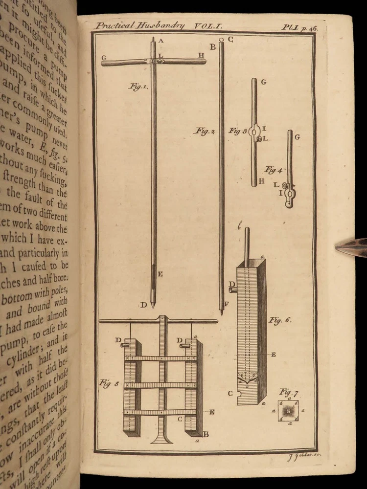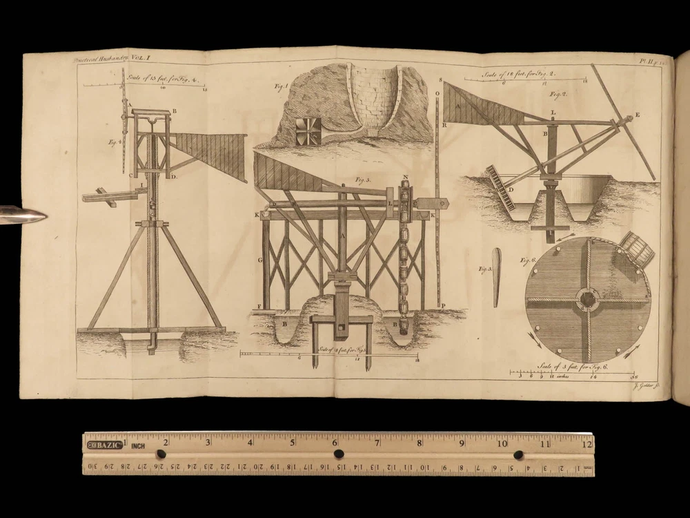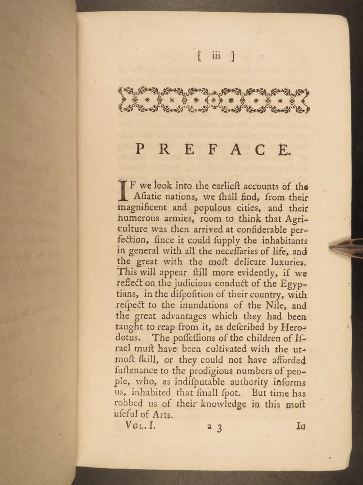 1767 Husbandry FARMING Horses BEER Wine Horseshoes Mills 5v SET John Adams USA John Mills’s “ Practical Husbandry ” is a thorough survey on farming and rural life. Mills offers direction producing strong soils for plant growth, cultivating the land, farming tools and plows, shoeing horses, fermenting beers and wine, harvesting fruits and vegetables, and so much more. This impressive five-volume set is known to have been in the library of famous founding fathers, including John Adams! This 1676 edition includes numerous full-page and folding engravings! Item number: #25966 Price: $750 MILLS, John A new and complete system of practical husbandry London: printed for J. Johnson and B. Davenport, 1767. Details : · Collation: Complete with all pages; 5 volumes o Vol. 1 – [2], xxii, 483, [1] o Vol. 2 – [2], xv, [1], 437, [1] o Vol. 3 – [2], xii, 3-466 o Vol. 4 – [2], xii, 3-465, [1] o Vol. 5 – [2], v (i.e., xii), 342, xcviii o 20 engravings (most folding; 3 present but incomplete) · Provenance: Handwritten o John J. Robinson, Althorne, 1903 o James Robinson, Latimer, 1840 · Language: English · Binding: Leather; secure · Size : ~8in x 5.25in (20.5cm x 13.5cm) Our Guarantee: Very Fast. Very Safe. Free Shipping Worldwide. Customer satisfaction is our priority! Notify us with 7 days of receiving, and we will offer a full refund without reservation! 25966