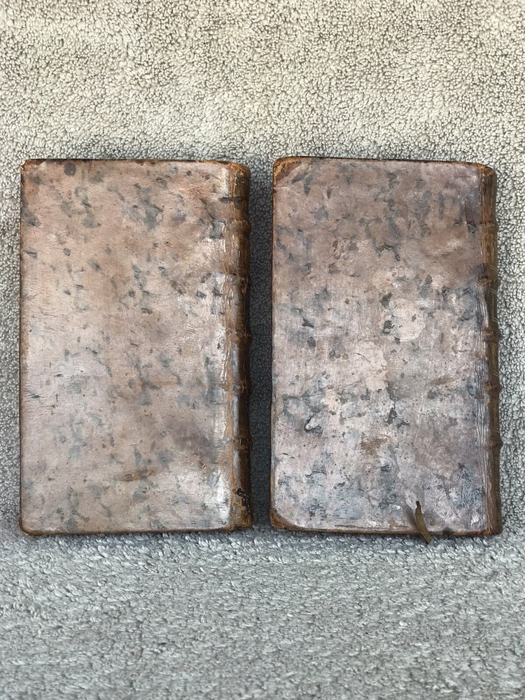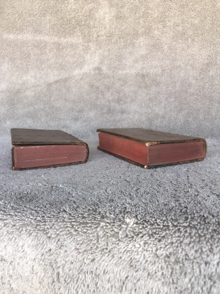 Both of these are in very good condition for their age. The first volume has some writing on the top right of the cover page and a crease on the page. The back cover page has a short tare and on the next some writing upper right hand corner. The second volume has a little writing on the topic page. One book has some stain on a couple of pages in the middle of the book. These books have very little staining and discoloration and are in good handling and readable condition. These will be professionally packed, fully insured and boxed for their protection.