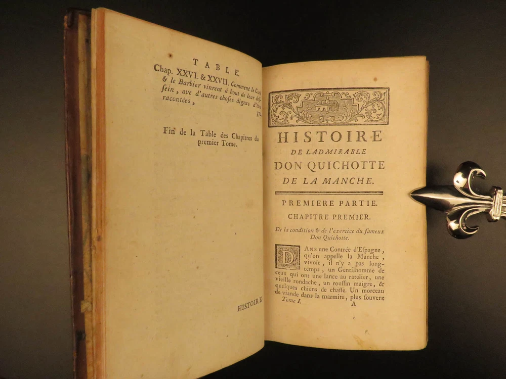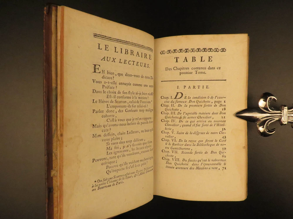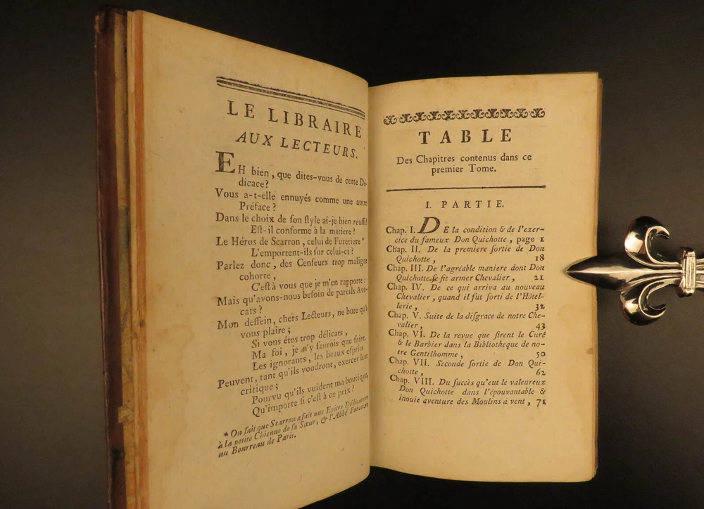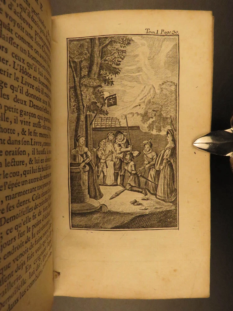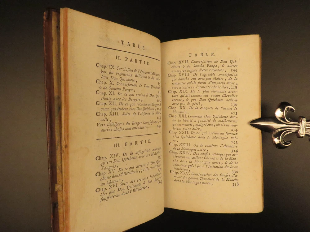 1773 Don Quixote Cervantes Saint-Martin French NEW ENDING Illustrated 6v SET Miguel de Cervantes’s ‘ Don Quixote’ is one of the most famous works of literature and is one of the most popular adventure tales to be written. This 1773 printing features François Filleau de Saint-Martin's French translation and is iconic for its full-page engravings depicting scenes from the famous story. Saint-Martin’s edition was first published in 1678 who modified the original ending by making Don Quixote live at the end! Item number: #10648 Price: $950 CERVANTES Saavedra, Miguel de Histoire de l'admirable Don Quichotte de la Manche. La Haye : & se vend chez Bassompierre, père, libr. à Liege, 1773. Details : · Collation: Complete with all pages; 6 volumes o Vol. I – [4], 397, [1] § 4 engraved plates o Vol. II – [4], 400, [4] § 2 engraved plates o Vol. III – [8], 403, [1] § 8 engraved plates o Vol. IV – [8], 488 § 10 engraved plates o Vol. V – [8], 451, [1] § 4 engraved plates o Vol. VI – [8], 452 § 4 engraved plates · Provenance: Handwritten – François Victor Euvrard, A Paris · Language: French · Binding: Leather; tight & secure · Size : ~6.5in X 3.75in (16.5cm x 9.5cm) Our Guarantee: Very Fast. Very Safe. Free Shipping Worldwide. Customer satisfaction is our priority! Notify us with 7 days of receiving, and we will offer a full refund without reservation! 10648