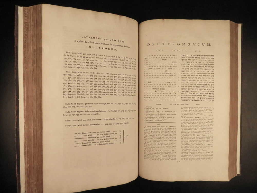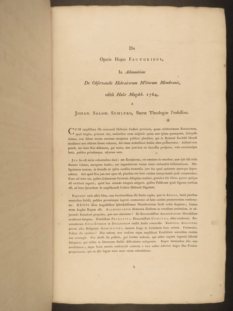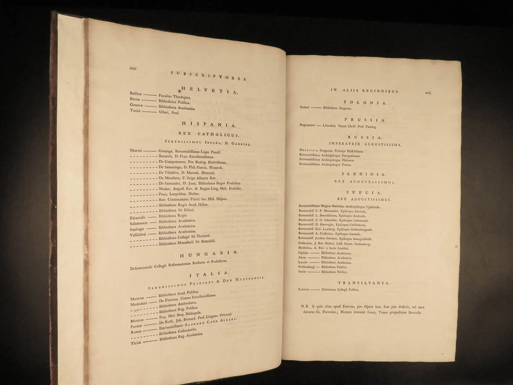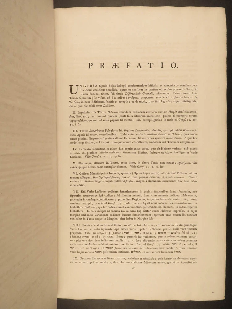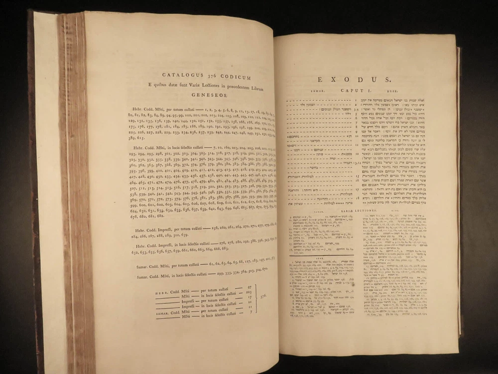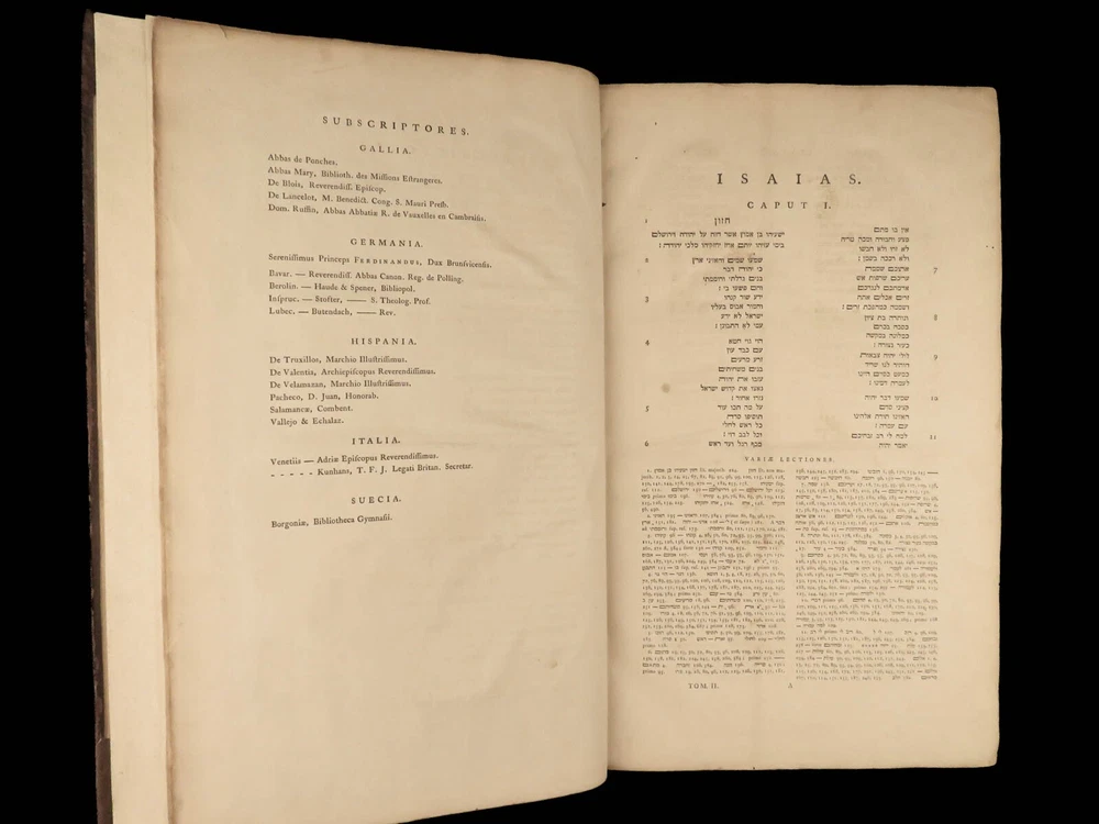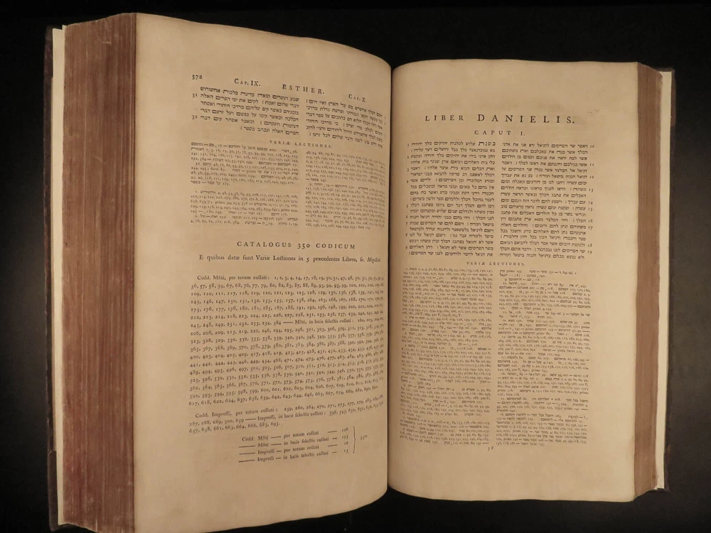 1776 FAMED 1 st Kennicott Hebrew BIBLE Hebraica Oxford ENORMOUS 2v SET Judaica The ‘Kennicott Bible’ has long been known as one of the most important Bibles of the 18 th -century . Benjamin Kennicott was a well-known English Hebraist who studied the Hebrew Bible and made his life’s work studying and comparing variants of Hebrew manuscripts. This utterly massive 1776 Oxford first edition of the Kennicott Bible was published by in two huge tomes, filled with Kennicott’s Hebrew annotations and scriptural references. Kennicott spent years collecting hundreds of Hebrew manuscripts, which made this one of the most thorough and comprehensive collections of variant readings of the Old Testament. According to Andrews, “Kennicott's edition was a significant contribution to biblical scholarship in the 18th century. It was the first edition to include variant readings from such a large number of Hebrew manuscripts and helped to establish the original text of the Hebrew Bible”. Item number: #24464 Price: $1500 KENNICOTT, Benjamin Vetus Testamentum Hebraicum, cum variis lectionibus Oxonii: E. typographeo Clarendoniano, 1776-1780. First edition! Details : · Collation: Complete with all pages; 2 volumes o Vol. I – xxiii, [1], VIII, 684, [2] o Vol. II – [4], 732, 129, [7] · References: Edward D. Andrews: Introduction to the Text of the Old Testament, p.106; Darlow & Moule 5160 · Language: Hebrew / Latin · Binding: Leather; tight and secure · Size : ~17.5in X 11in (44.5cm x 28cm) Our Guarantee: Very Fast. Very Safe. Free Shipping Worldwide. Customer satisfaction is our priority! Notify us with 7 days of receiving, and we will offer a full refund without reservation! 24464