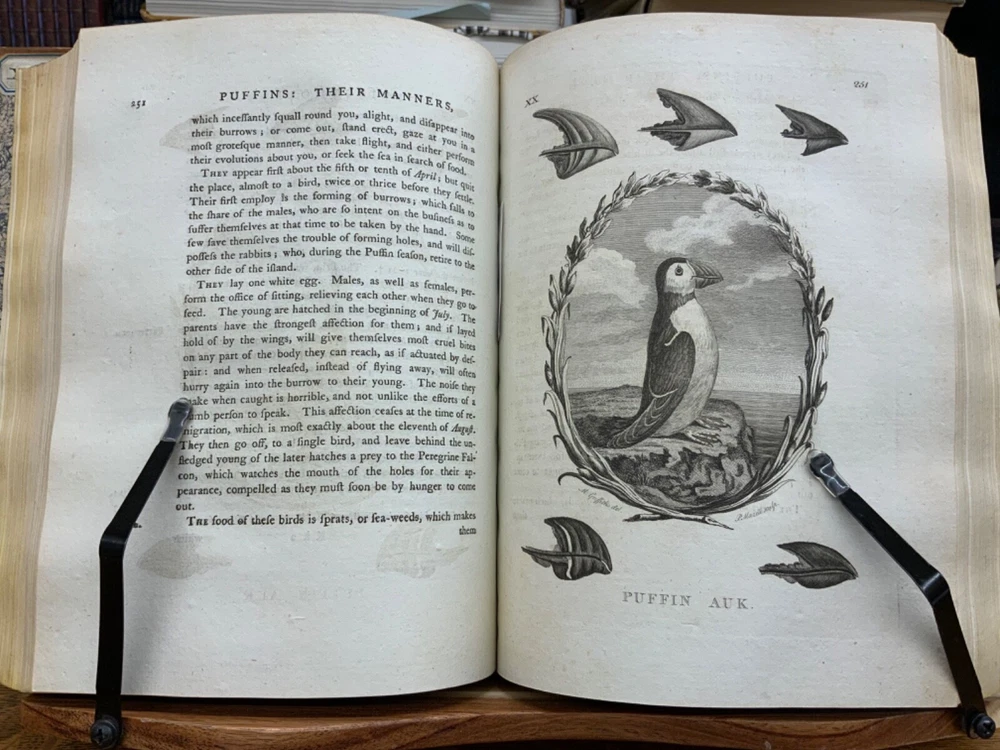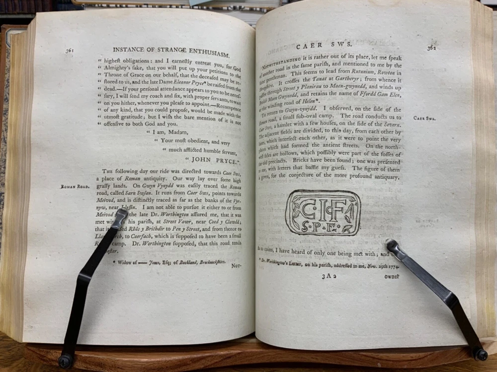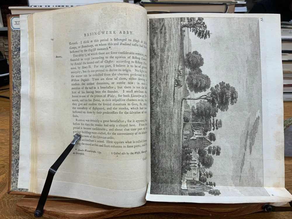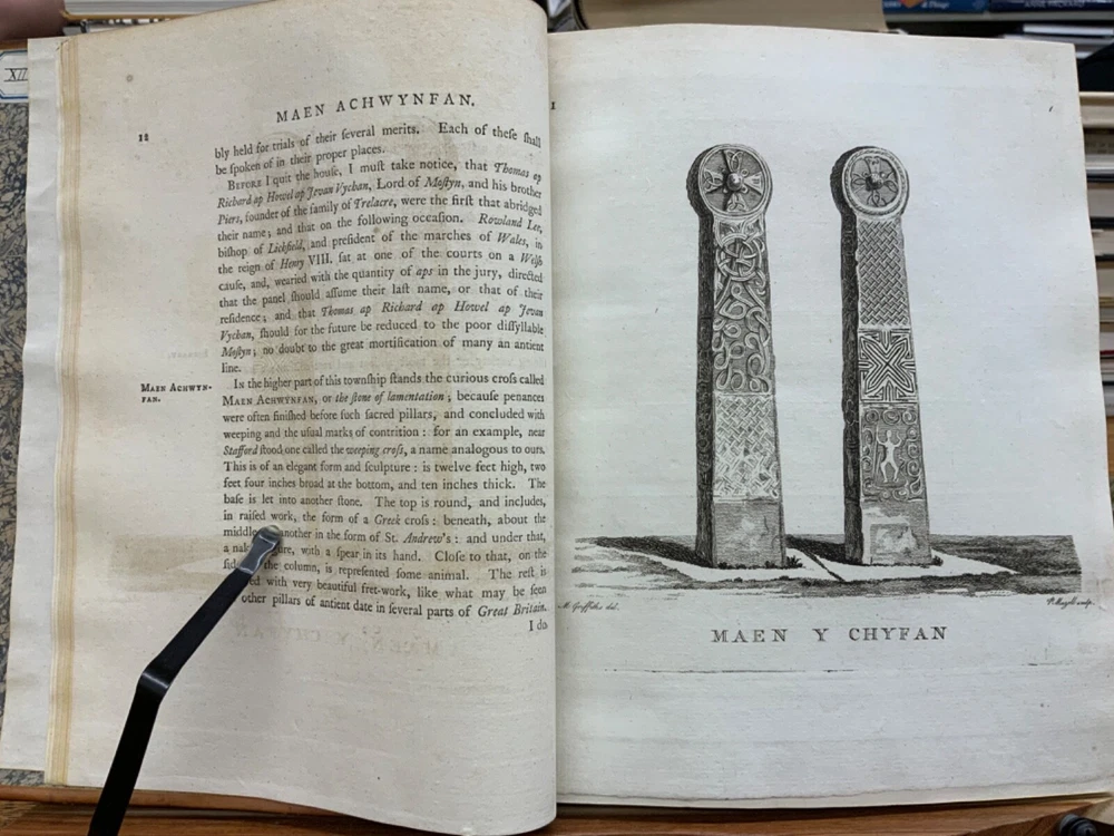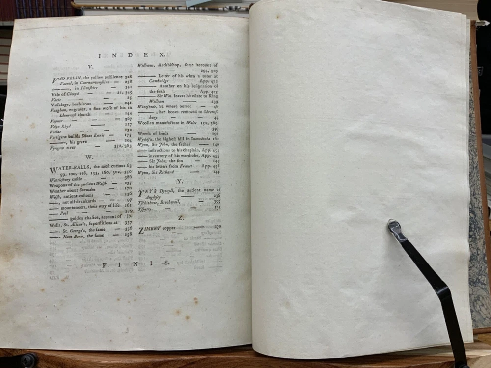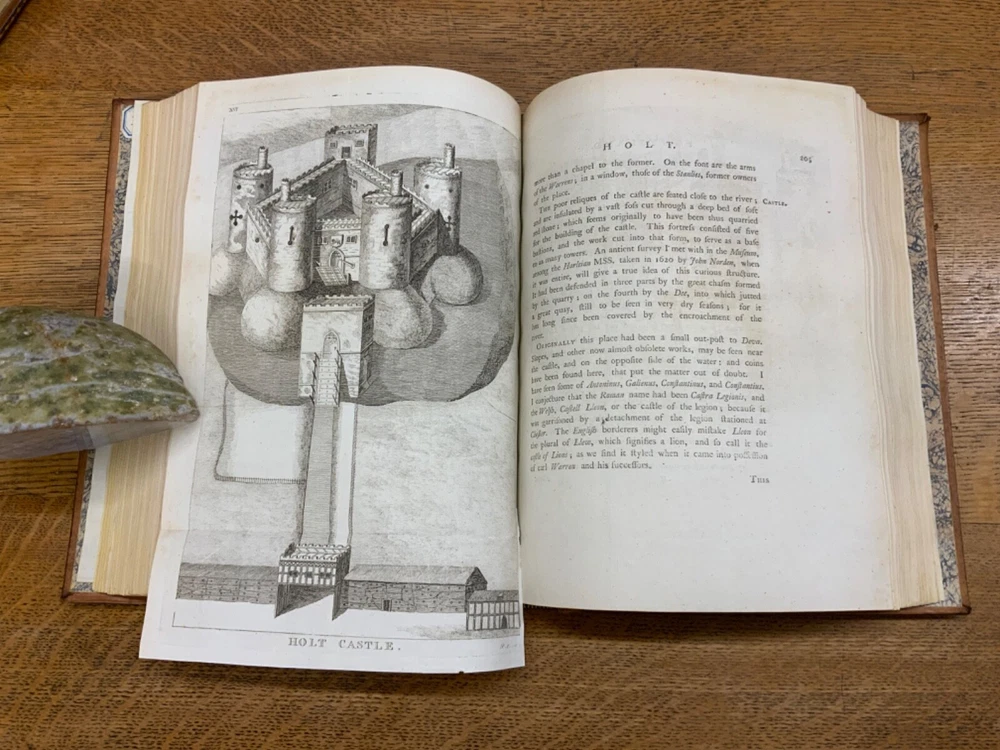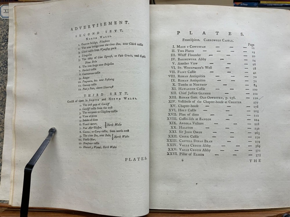 Uniform & modern full-leather binding measuring 10 x 7.75”, royal 8vos. A Tour in Wales. 1773. London: Printed by Henry Hughes. 1778. XXVI plts (Complete). 455 p. First Edition. The Journey to Snowdon. London: Printed by Henry Hughes. 1781. XI plts (Complete). 487 p. First Edition. In good condition. Modern full leather boards normally rubbed at edges and corners. Head and tail of spines rubbed; title and volume labels lightly soiled but attractive and intact. Gilt lettering and deco on spines bright and clean. Edges of text-blocks painted yellow. Ex-library (most likely) manuscript stickers found on top corners of both front paste-downs. Light foxing found around edges of vignette title pages. Normal toning throughout text-blocks; instances of finger-soiling found on fore-edges of leaves. Some light off-setting to leaves adjacent to plates. Some pencil marginalia found on preliminary pages in both volumes. Modern binding tight and intact. Please see photos and ask questions, if any, before purchasing. Thomas Pennant (1726 – 1798) was a Welsh naturalist, traveller, writer and antiquarian. He was born and lived his whole life at his family estate, Downing Hall, near Whitford, Flintshire, in Wales. As a traveller he visited Scotland and many other parts of Britain and wrote about them. Many of his travels took him to places that were little known to the British public and the travelogues he produced, accompanied by painted and engraved colour plates, were much appreciated. Each tour started at his home and related in detail the route, the scenery, the habits and activities of the people he met, their customs and superstitions, and the wildlife he saw or heard about. He travelled on horseback accompanied by his servant, Moses Griffith, who sketched the things they encountered and later worked these up into illustrations for the books. He was an amiable man with a large circle of friends and was still busily following his interests into his sixties. He enjoyed good health throughout his life and died at Downing at the age of seventy-two. Rare 1st Edition complete set. With plates. RAREB1778HPQB 11/24 - HK2162