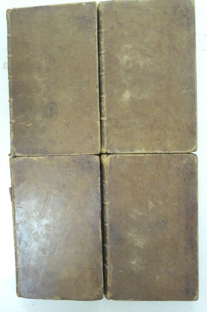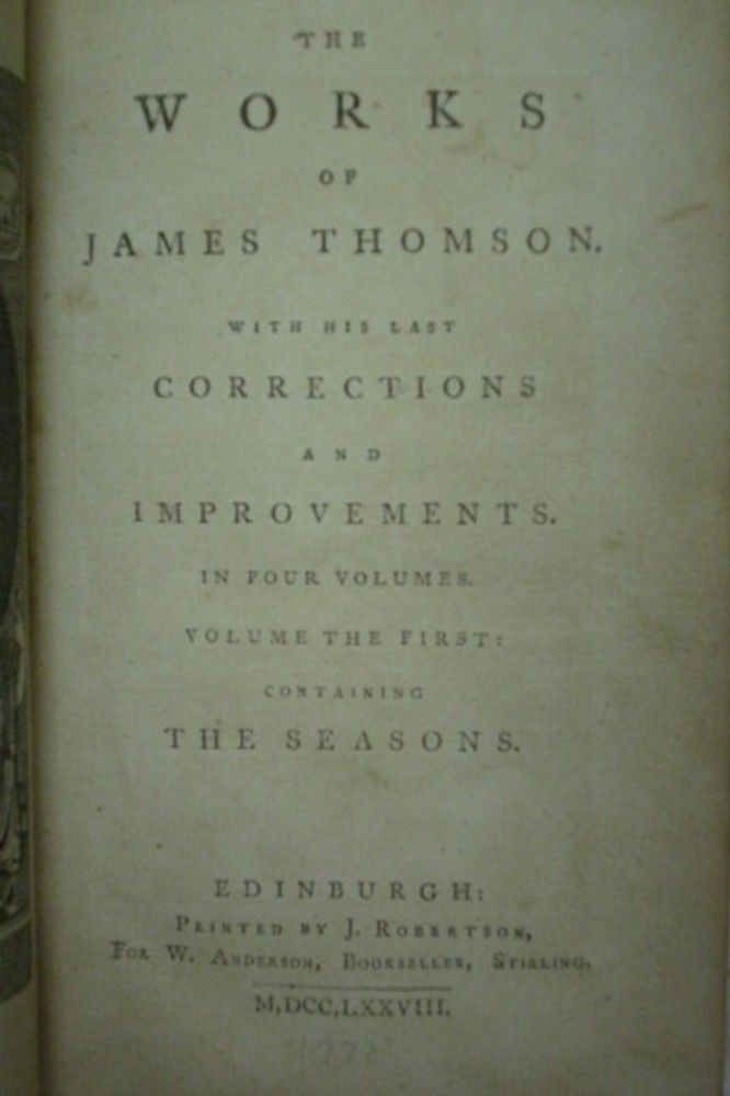You are bidding on a very rare set of antiquarian hardcover books titled The Works of James Thomson - With His Last Corrections and Improvements. The set is complete in four volumes and you are bidding on all four volumes. Books are printed in Edinbugh, England by J. Robertson For W. Anderson, Bookseller, Stirling, 1778. This is a very scarce set from 1778! They have terrific engravings in them! Books are Illustrated with 15 engravings, including the frontis portrait of the author. Each volume has a unique title page, in that they list the contents therein. Vol. I: Containing the Seasons. Vol. II: Containing Liberty, The Castle of Indolence, and Poems On Several Occasions. Vol. III: Containing Sophonisba, Agamemnon, and Alfred. Vol. IV: Containing Edward and Eleonora, Tancred and Sigismunda, and Coriolanus. The books feature full leather binding. The spines has raised bands. The titling is in gold on red morocco labels. The volume numbers are in gold on black morocco labels. The leather labels are in surprisingly good condition with just a bit of curling to some edges. The covers are firmly attached. The leather binding shows some general wear/scuffing but is in overall very good condition. All pages are clean and tightly bound. There is a very old previous owner paste-down label on inside of front cover (Mary Harrod Bliss). Last blank page of Volume I has some penciled notes and a piece missing. Books show some general wear but are in very good condition. This is a very scarce set!!! Would make a super addition to a collection. Great gift idea! (Inventory: Box 29) Track Page Views With Auctiva's FREE Counter