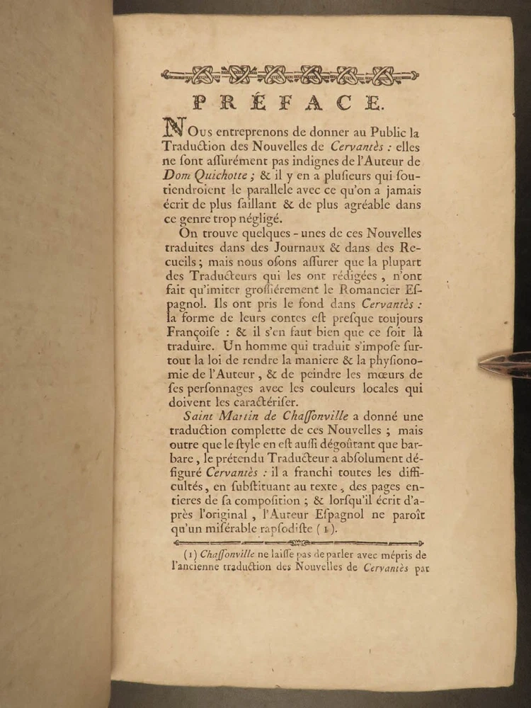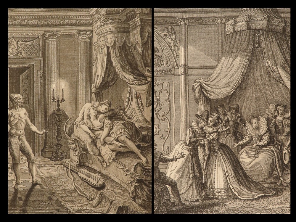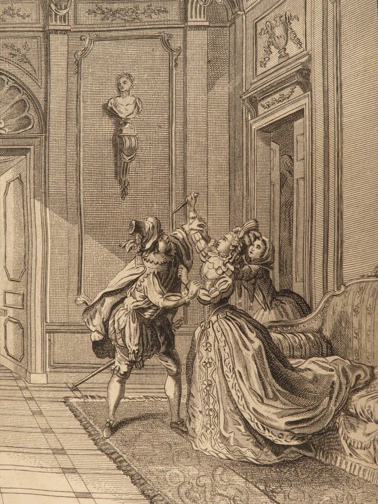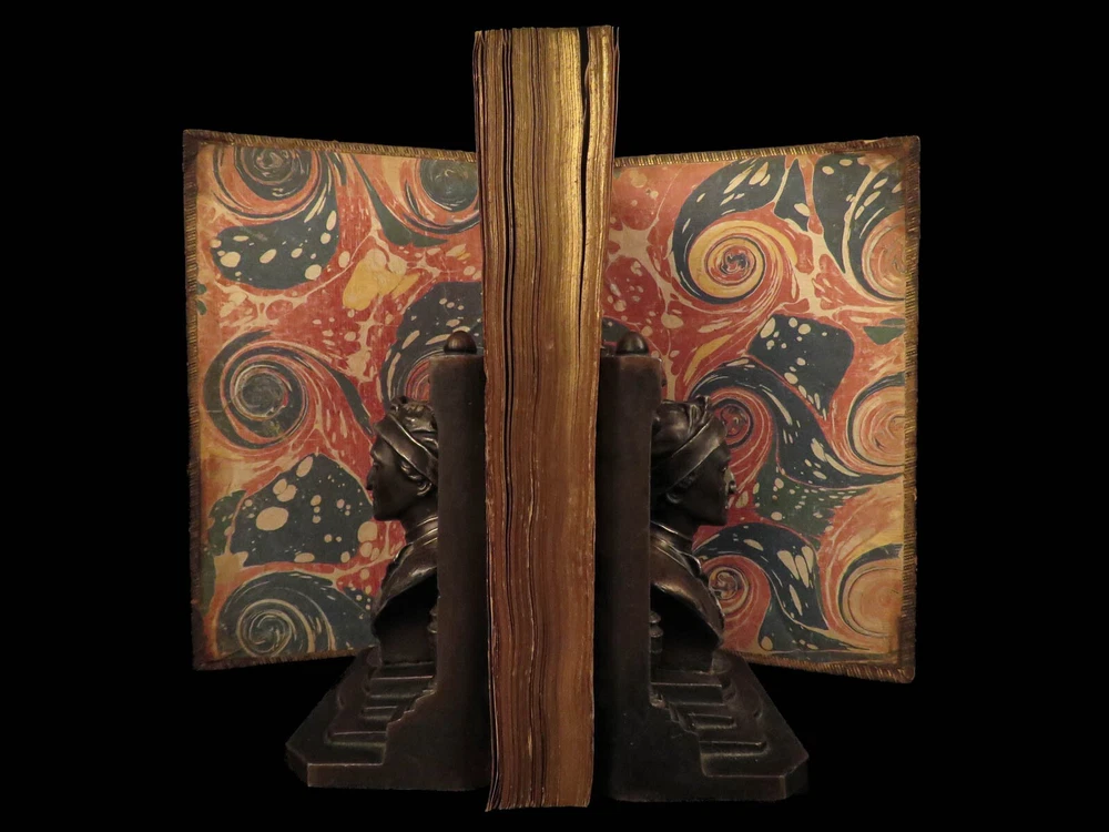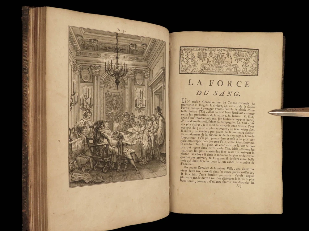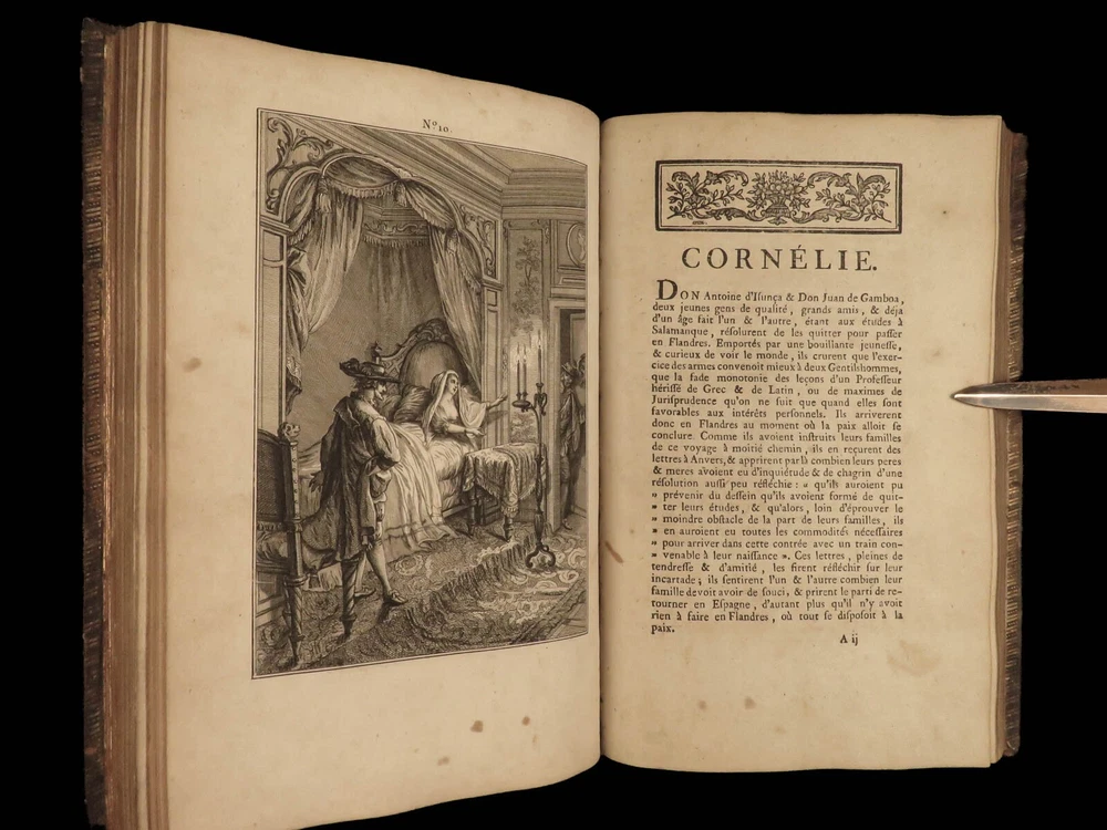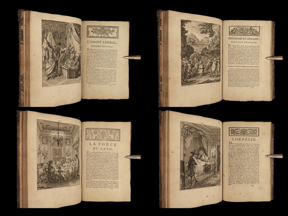 1778 Spanish Cervantes Exemplary Novels Villebrune Illustrated 2v SET Quixote “My genius and my inclination prompt me to this kind of writing; the more so as I consider (and with truth) that I am the first who has written novels in the Spanish language, though many have hitherto appeared among us, all of them translated from foreign authors. But these are my own, neither imitated nor stolen from anyone; my genius has engendered them, my pen has brought them forth, and they are growing up in the arms of the press.” ― Miguel de Cervantes, boasting of being the first to write novellas in Spanish. In 1613, when this collection of Spanish novellas was first printed, they were the most popular novellas of the time. Many of Cervantes’s novellas are still popular today, even though none of his work is as significant as ‘ Don Quixote .’ These short stories would inspire many English dramas especially Middleton and Fletcher. This rare French two-volume edition features ornate figures and illustrations by Lefebvre de Villebrune. Item number: #22777 Price: $599 CERVANTES, Miguel de Saavedra Nouvelles espagnoles de Michel de Cervantès. A Paris : chez la veuve Duchesne ..., 1778. Details : · Collation: 2 volumes o Vol. 1 § La Bohemienne – viii, 71, [1] § L’Amant Liberal – 50 § Theodosie et Leocadie – [5]-40, [2] § Le Jaloux D’Estremadure – [7]-48 § L’Espagnole Angloise – 2, [5]-56 § Le Sot Curieux – [5]-63, [1] o Vol. 2 § Le Licentie de Verre – 56 § L’illustre Fregone – [3]-84 · Wanting p. 7-10 § La Force du Sang – [3]-56 § Cornelie – [3]-76 § Le Mariage Trompeur – [3]-96 § Les Filoux – [3]-63, [1] o 12 full-page engravings · Language: French · Binding: Leather; tight and secure · Size: ~ 9.25in X 6in (23.5cm x 15cm) Our Guarantee: Very Fast. Very Safe. Free Shipping Worldwide. Customer satisfaction is our priority! Notify us with 7 days of receiving, and we will offer a full refund without reservation! 22777