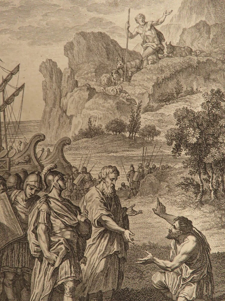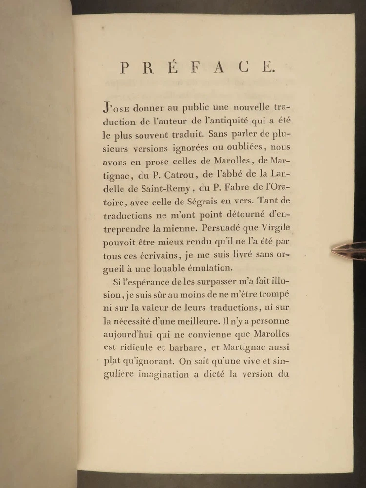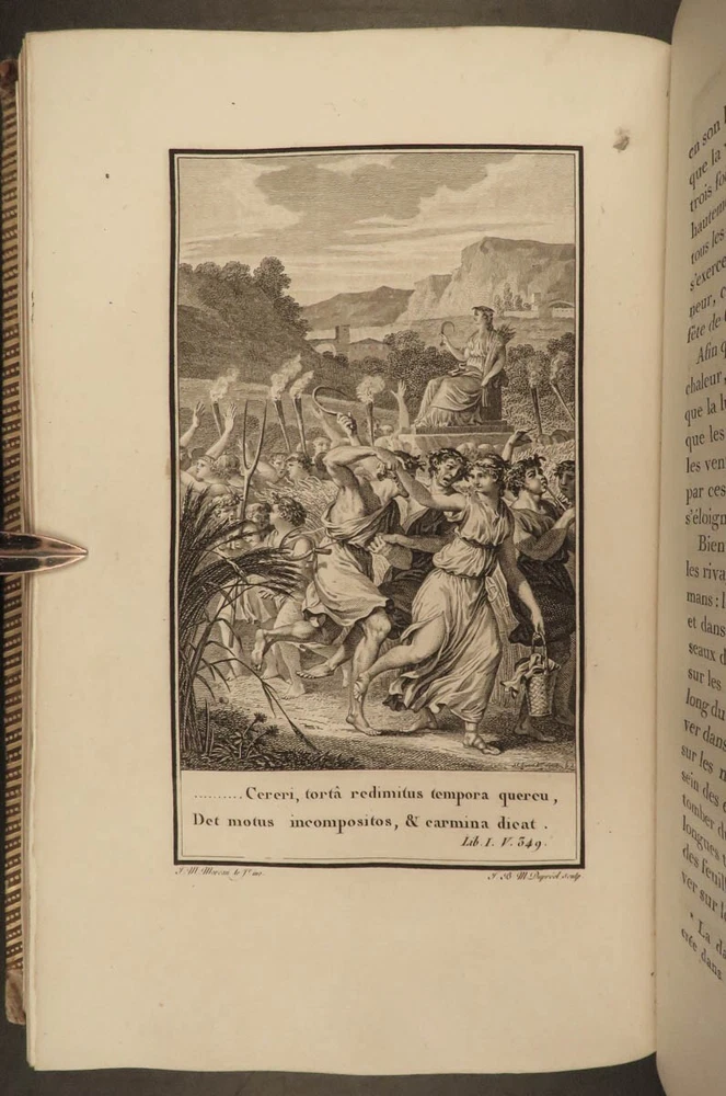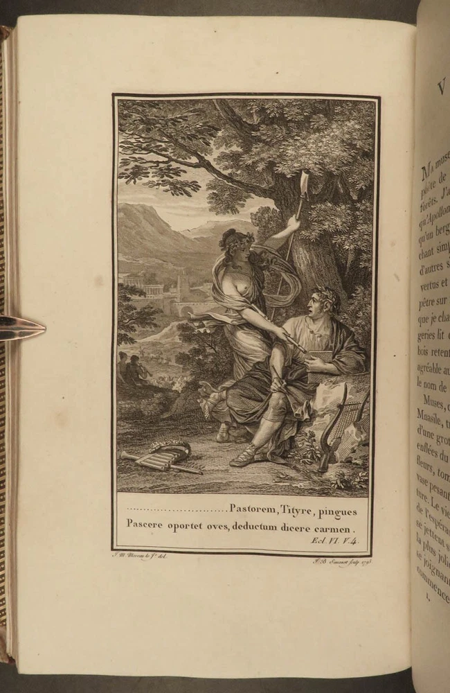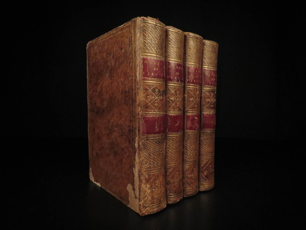 1796 VIRGIL Aeneid Georgics Eclogues Bucolics Desfontaines PROSE French 4v SET “Audaces fortuna iuvat- (Fortune favors the bold).” ― Virgil Virgil is regularly considered one of the greatest Roman poets. His epic poems, ‘ Eclogues ,’ ‘ Georgics ,’ and ‘ Aeneid’ are some of the most important works of western literature and describe mythology, medicine, astronomy, war and military, rhetoric, agriculture, and more! Virgil’s works have been popular throughout the centuries, both to readers and writers respectively. French translator Pierre Desfontaines created one the most unique and impressive versions of Virgil – a parallel French and Latin edition. While similar works exist, Desfontaines translations were not simply word-for-word but rather prose renditions of the Virgil Latin. These translations proved to be highly sought after and are still noteworthy works today. This 1796, four-volume edition of Desfontaines’s ‘ Virgil’ was published in Paris by Plassan. Item number: #21334 Price: $499 VIRGIL Oeuvres de Virgile traduites en françois, le texte vis-à-vis la traduction, avec des remarques Paris: De L'imprimerie de P. Plassan, 1796. Details : · Collation: Complete with all pages; 4 volumes o Vol. 1 – lxi, [3], 478 § 6 engravings o Vol. 2 – 437, [1] § 4 engravings o Vol. 3 – 447, [1] § 4 engravings o Vol. 4 – 510 § 4 engravings · Language: French · Binding: Leather; tight and secure · Size : ~9in X 6in (23cm x 15cm) Our Guarantee: Very Fast. Very Safe. Free Shipping Worldwide. Customer satisfaction is our priority! Notify us with 7 days of receiving, and we will offer a full refund without reservation! 21334