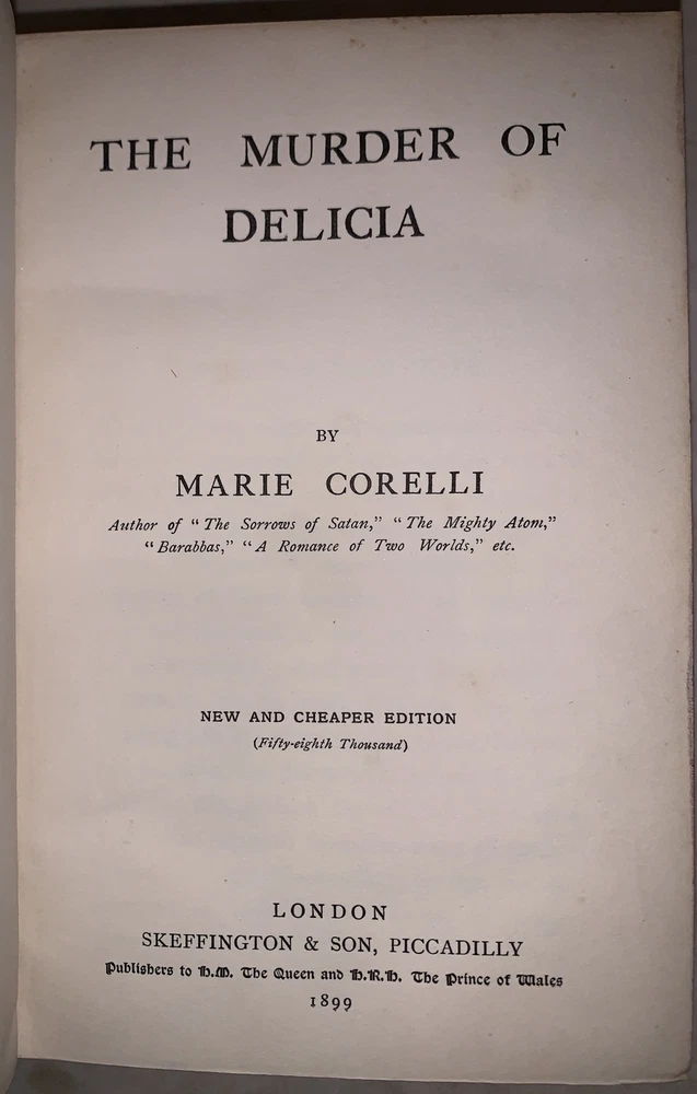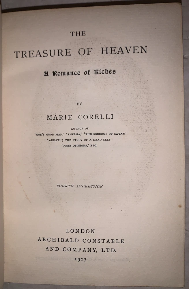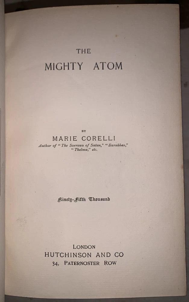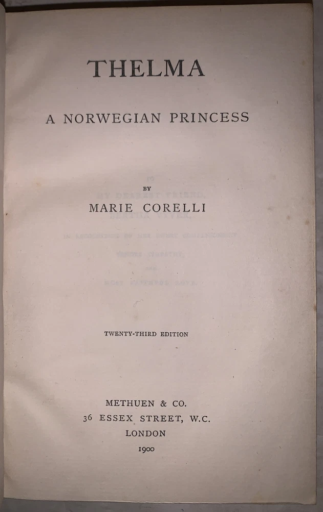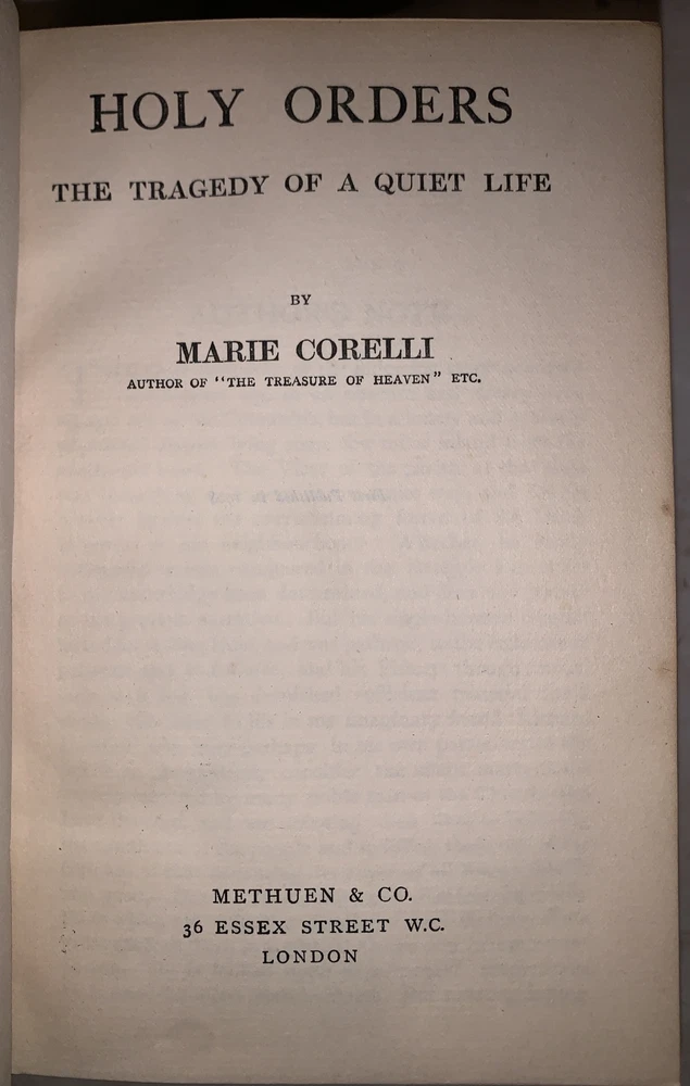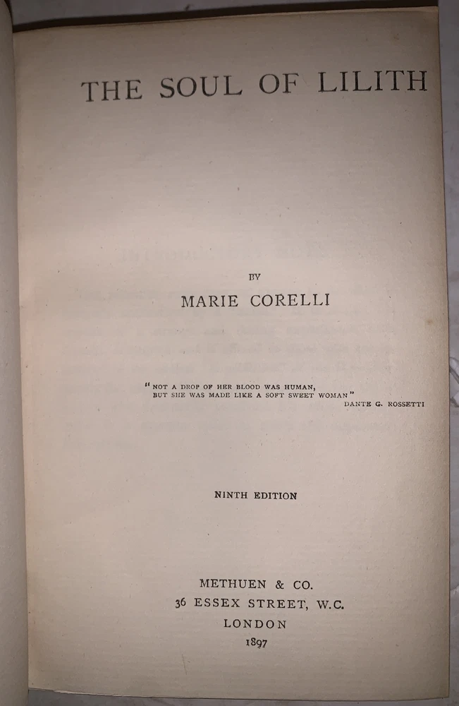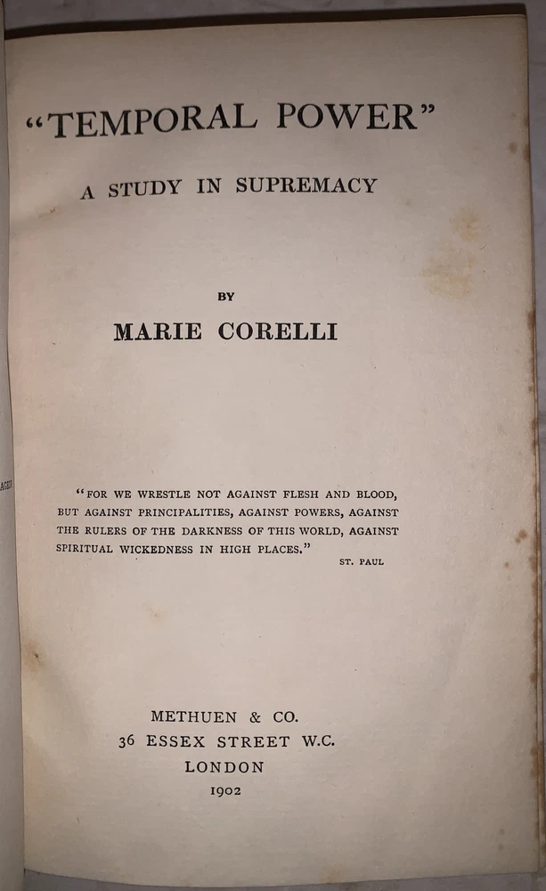 Finely bound set of 18 Marie Corelli books from the late 19th century, early 20th century. Including: 1: Thelma - A Norwegian Princess - 1900 - Twenty-Third Edition 2: The Sorrows of Satan, or The Strange Experience of One Geoffrey Tempest, Millionare, A Romance - 1899 - Fortieth Edition 3: Boy, A Sketch - Tenth Edition 4: A Romance of Two Worlds - 1899 - Nineteenth Edition 5: The Treasure of Heaven, A Romance of Riches - 1907 - Fourth Impression 6: Cameos, Short Stories 7: Ziska, The Problem of a Wicked Soul - 1897 8: God's Good Man, A Simple Love Story - Thirteenth Edition 9: The Master - Christian - 1900 10: "Temporal Power" A Study in Supremacy - 1902 11: The Murder of Delica - 1899 - New and Cheaper Edition (Fifty-eighth Thousand) 12: Holy Orders, The Tragedy of a Quiet Life 13: The Mighty Atom - Ninety-Fifth Thousand 14: The Soul of Lilith - 1897 - Ninth Edition 15: Wormwood, A Romance of Paris - 1900 - Tenth Edition 16: Barabbas, A Dream of the World's Tragedy - 1900 - Thirty-Fifth Edition 17: Vendetta!, or The Story of One Forgotten - 1900 - Sixteenth Edition 18: 'Ardath' The Story of a Dead Self - 1900 - Twelfth Edition All 18 are by Marie Corelli. Most are published in London by Methuen & Co. See photos. Each volume is beautifully bound in quarter red leather over marbled boards. Raised bands, gilt lettering and decoration to spines. Marbled endpapers and edges. Each with the previous owner's neat bookplate "Prospice Respice / Houndswood / St. Albans." Some slight rubbing and wear, spines slightly sunned, some slight damage to the spines of a couple volumes, some occasional foxing and discoloration, else in good + condition. If you have any questions, feel free to ask and don't forget to check out my other listings.