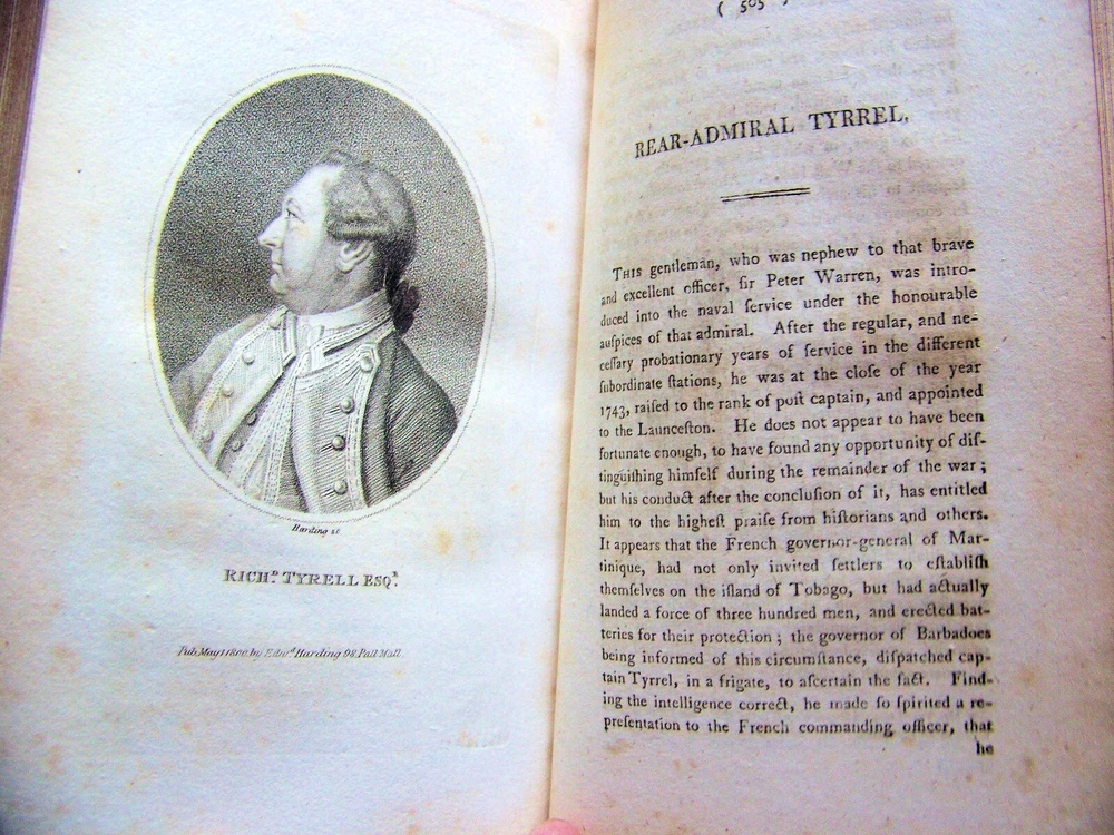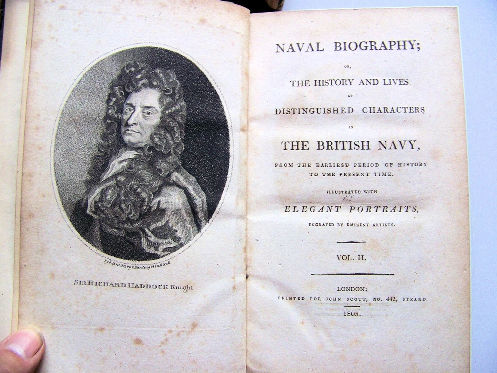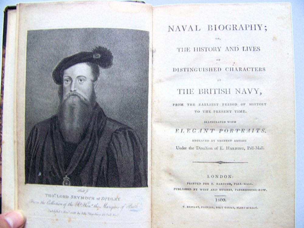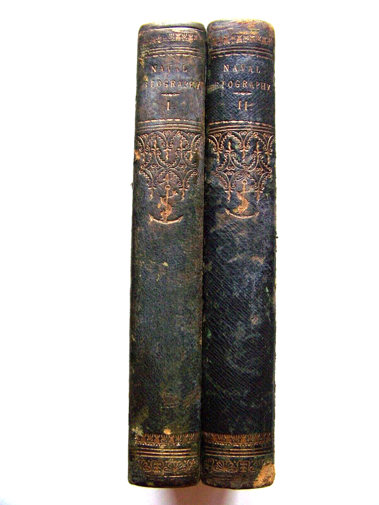 WE'VE PURCHASED ANOTHER TERRIFIC COLLECTION OF BOOKS A GREAT LIBRARY FULL OF VINTAGE MARITIME THEMED BOOKS! MANY FIRST EDITIONS SCARCE TITLES SO GET COMFORTABLE...GRAB A CUP OF COFFEE...AND ENJOY SHOPPING FOR THESE WONDERFUL OLD BOOKS ON THE HIGH SEAS FOR THE NEXT MONTH OR SO. RARE COPY OF THE 1800 & 1805 U. K. FIRST EDITIONS ILLUSTRATED WITH PORTRAITS OF MEN FROM BRITISH NAVAL HISTORY THE HISTORY & LIVES OF DISTINGUISHED CHARACTERS IN THE BRITISH NAVY NAVAL BIOGRAPHY Vol. I (1800 Edition) Vol. II (1805 Edition) BY: ? PUBLISHED BY: JOHN SCOTT