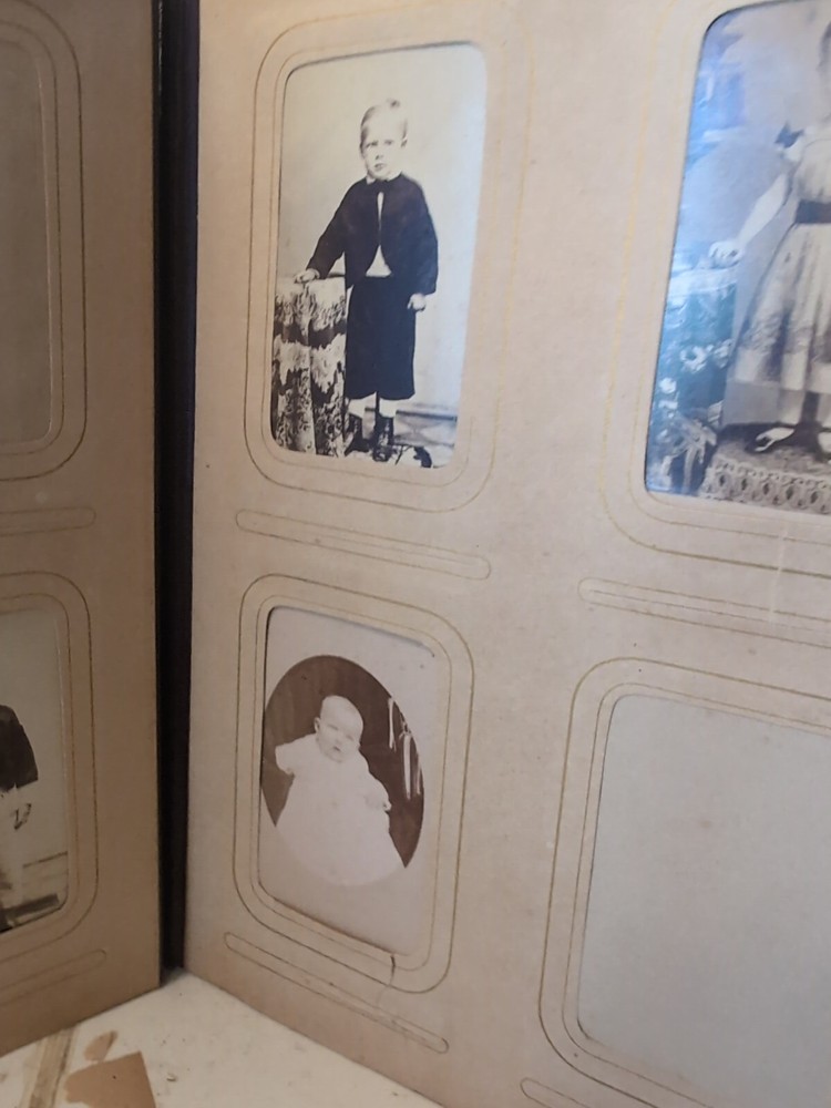 This is a unique and rare 1800s antique photo album that contains 46 black and white photographs of a few prominent familys in The 1870s-1880,s time period in Salem Oregon. Possible family member names are BUSH, Painter, Zeber, and Mumper. In this album The ancestors of my grandmother Mildred Painter fill the pages. I Was far too young to know any of these people. The photographs are in the format of Carte de Visite (CDV) and Daguerreotype. The album was produced in the 1880s in Salem, Oregon in the United States and is one of a kind (OOAK). The album is perfect for collectors of vintage and antique photographs.