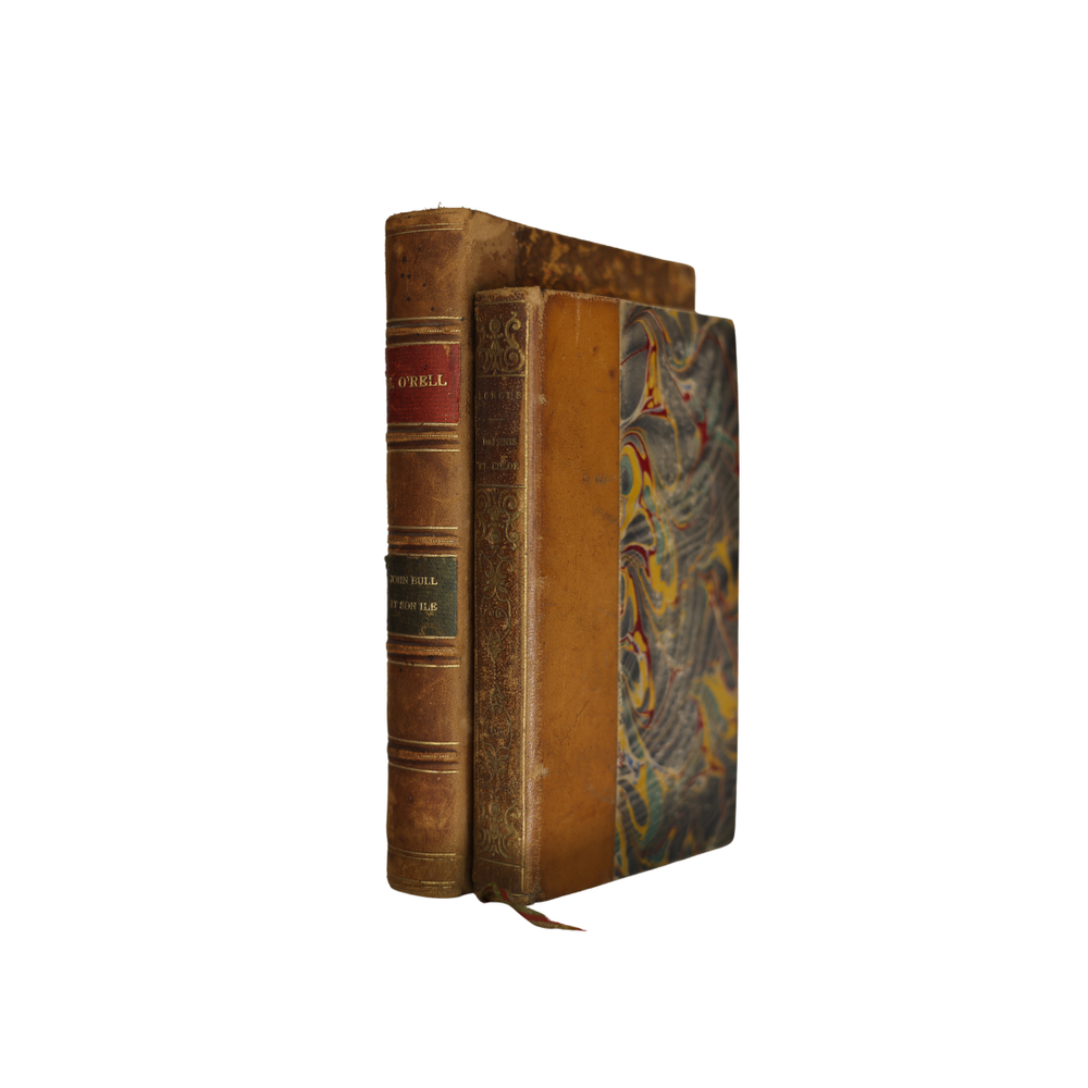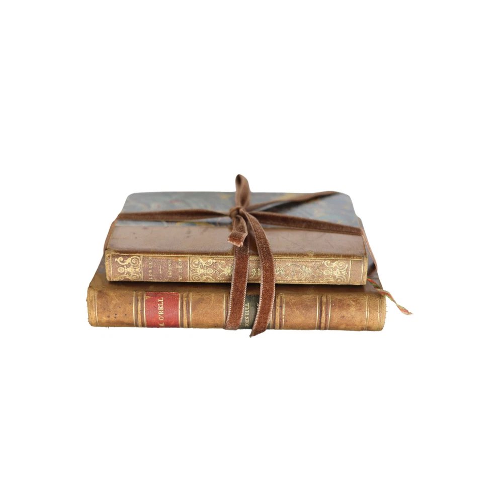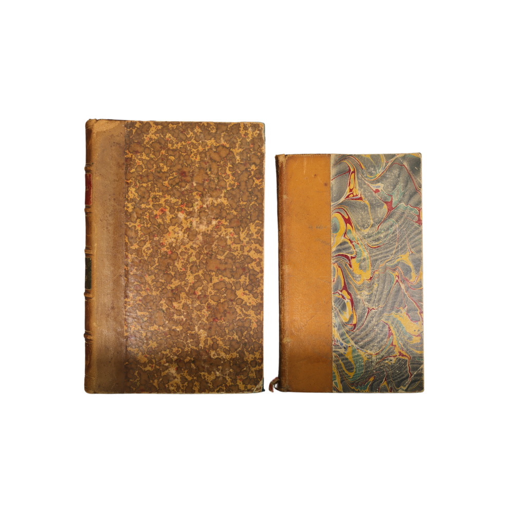 The 1800s French Brown Leather Bound Books (Set of 2) are exquisite examples of 19th-century French bookbinding artistry. Encased in luxurious brown leather, these volumes are adorned with intricate gilt detailing and elegantly embossed spines, showcasing the meticulous craftsmanship of the period. The books' pages, often featuring gilt or marbled edges, offer a glimpse into the literary and cultural heritage of France during the 1800s. This distinguished set not only serves as a beautiful testament to the timeless appeal of antique French books but also brings a touch of historical sophistication and intellectual elegance to any library or home decor.