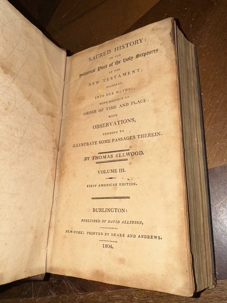 This complete set of the 1804 Sacred History book by Thomas Ellwood is a must-have for any collector. The leather binding and first American edition make it a unique addition to any library. The historical part of the Holy Scriptures is presented in English and published by David Allinson in New York. This book is perfect for those interested in religion and history, with a special focus on the subject matter. The year printed is 1804, adding to the value and rarity of this complete set.