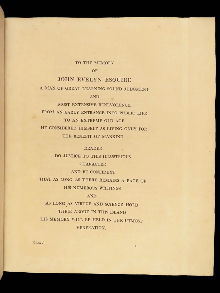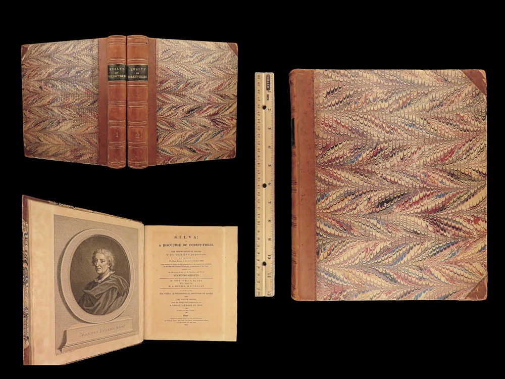 1812 John Evelyn SYLVA Forest TREES Forestry Illustrated Plants Botany 2v SET John Evelyn was an English writer, gardener, and diarist. His diaries, or memoirs, are largely contemporaneous with those of the other noted diarist of the time, Samuel Pepys, and cast considerable light on the art, culture, and politics of his time. It was, however, his work “ Sylva ” that is considered one of the best. This treatise, more often known as “ A Discourse of Forest Trees ” is one of the most important works on forestry ever written. In 1662, Evelyn presented a paper to the Royal Society concerning the depletion of England’s forests due to the logging and ship-building industries with the hopes of advocating for the restoration of the declining forests. Evelyn notes specific varieties of trees and provides direction on how to sustain them as well as providing instruction on how to appropriately cultivate trees rather than just cutting them down en masse. This 1812 edition was published in York, representing the vast legacy that this book had more than 150 years after the first edition. Item number: #25722 Price: $950 EVELYN, John Diary and Correspondence of John Evelyn, F.R.S. to which is Subjoined the Private Correspondence Between King Charles I and Sir Edward Nicholas… York: Thomas Wilson and Son, for Longman, Hurst Rees, Orme, and Brown, 1812. Details : · Collation: Complete; 2 volumes o Vol. I – xii, 13-50, [2], 330 § 28 engraved plates, plus engraved portrait frontispiece o Vol. II – 393, [9], 84 § 16 engraved plates · Language: English · Binding: Leather; tight and secure · Size : ~11in X 9.5in (28cm x 24cm) · Very rare and desirable Our Guarantee: Very Fast. Very Safe. Free Shipping Worldwide. Customer satisfaction is our priority! Notify us with 7 days of receiving, and we will offer a full refund without reservation! 25722