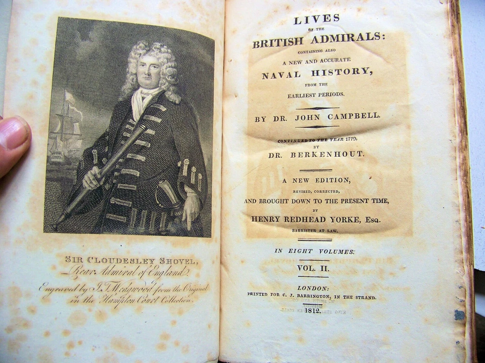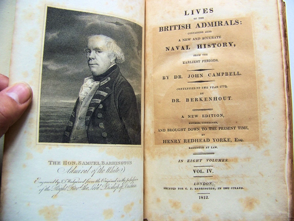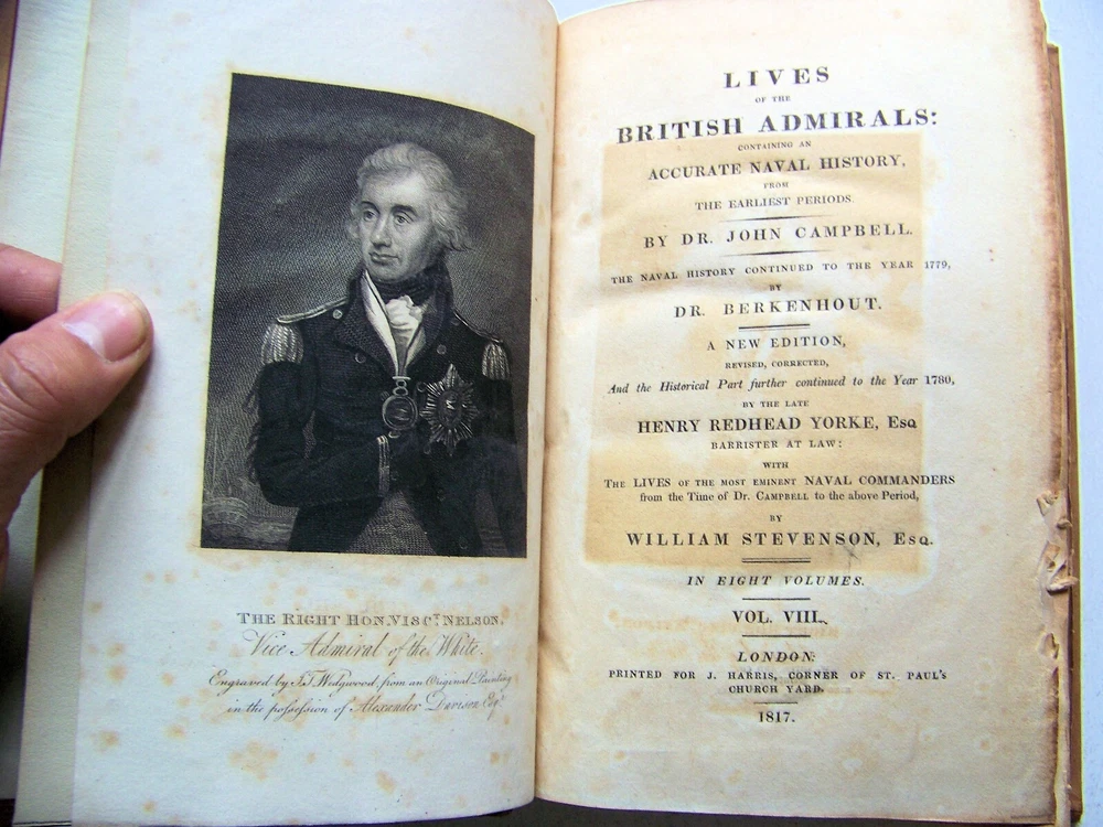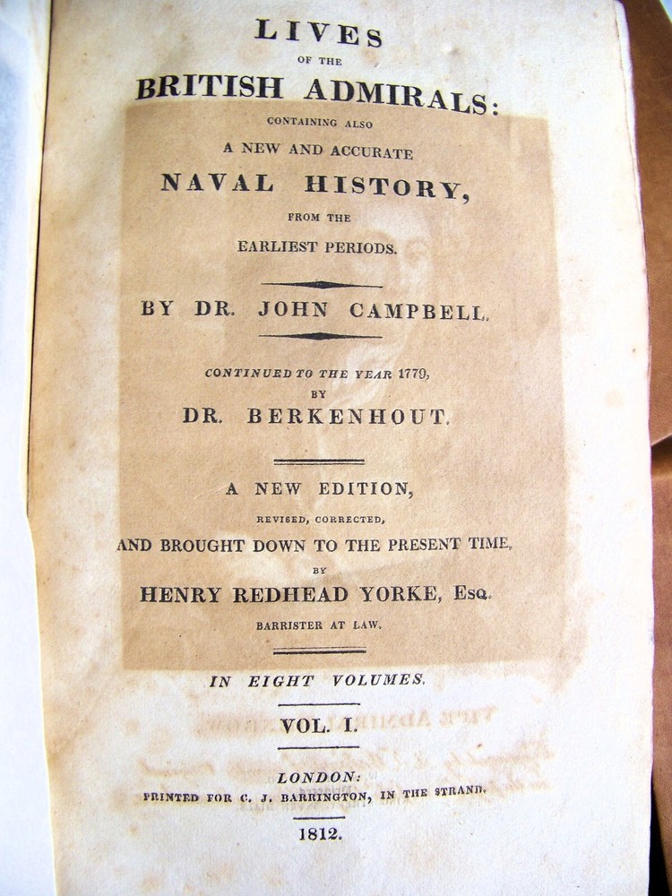 WE'VE PURCHASED ANOTHER TERRIFIC COLLECTION OF BOOKS A FULL LIBRARY OF VINTAGE BOOKS! FIRST EDITIONS SCARCE TITLES A WIDE VARIETY OF TOPICS SO GET COMFORTABLE...GRAB A CUP OF COFFEE...AND ENJOY SHOPPING SCARCE COPY OF THE 1812-1817 U. K. EDITION EIGHT VOLUME SET CONTAINING ACCURATE NAVAL HISTORY FROM THE EARLIEST PERIODS CONTINUED TO THE YEARS 1779 & 1780 FULL LEATHER BINDING WITH RAISED RIBS ON SPINE LIVES OF THE BRITISH ADMIRALS BY: JOHN CAMPBELL, DR. BERKENHOUT, & HENRY REDHEAD YORKE PUBLISHED BY: J. HARRIS