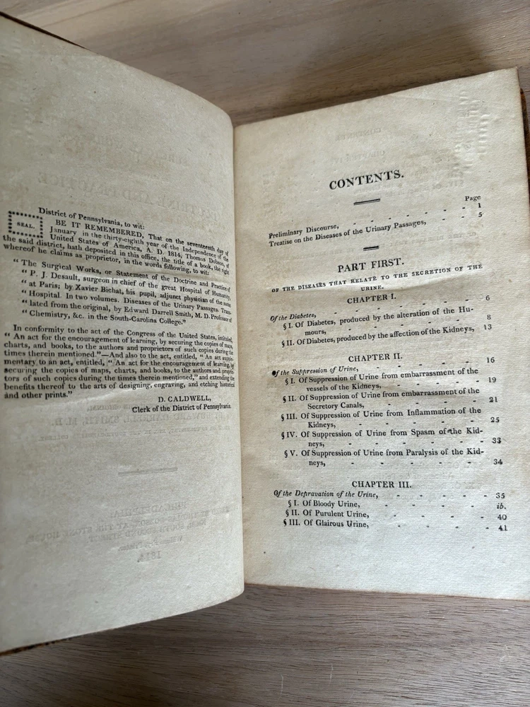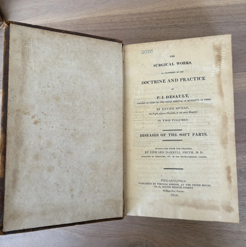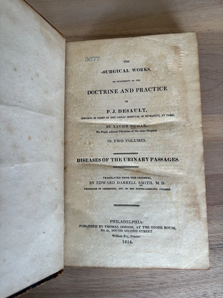 1814 Surgical Works Doctrine & Practice P.J. Desault - Two Volumes - Bichat - Illustrated Two volumes: Volume 1 - Diseases of the Soft Parts Volume 2 - Diseases of the Urinary Passages There are illustrations in the back of the books. Very fragile books due to age. I promise to have the best customer service, ship things quickly and return anything! Please email me with any and all questions. I would love the opportunity to work with you. :) Shipping too high? Please contact me to see if shipping with another carrier is less expensive. Will combine shipping on multiple orders.