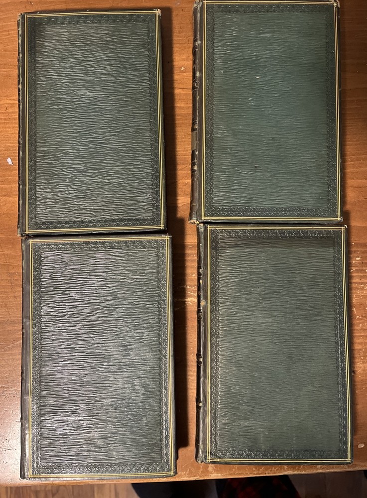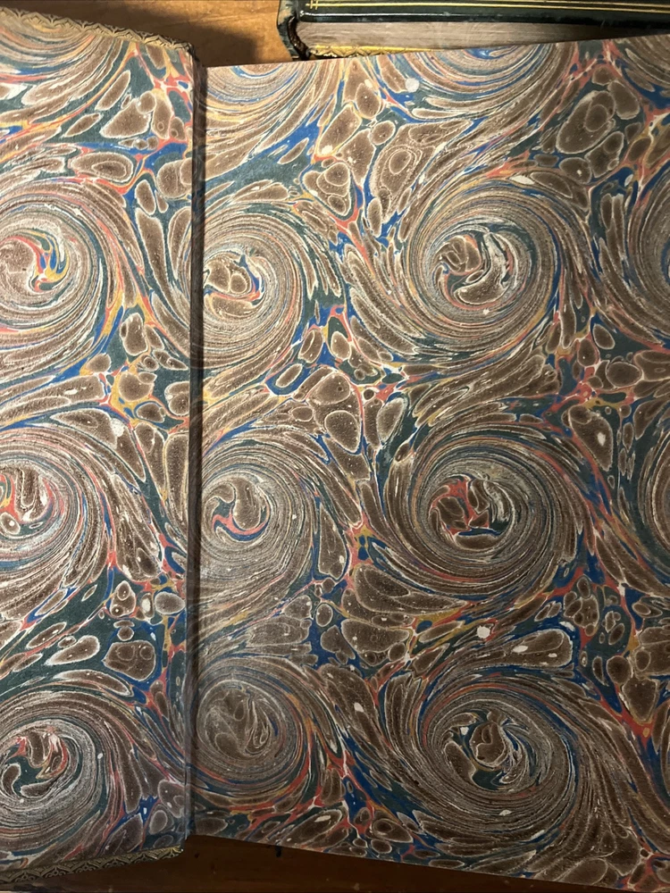 8.5 x 5.5 inches. Ornate leather bindings in very good plus condition. Marbled endpapers. Chipping to spine on volume II. Contents secure. Sporadic foxing and staining but overall clean....