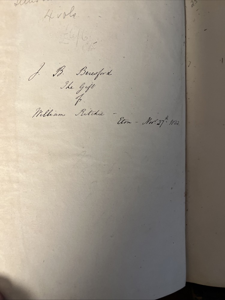 8.5 x 5.5 inches. Ornate leather bindings in very good plus condition. Marbled endpapers. Chipping to spine on volume II. Contents secure. Sporadic foxing and staining but overall clean.