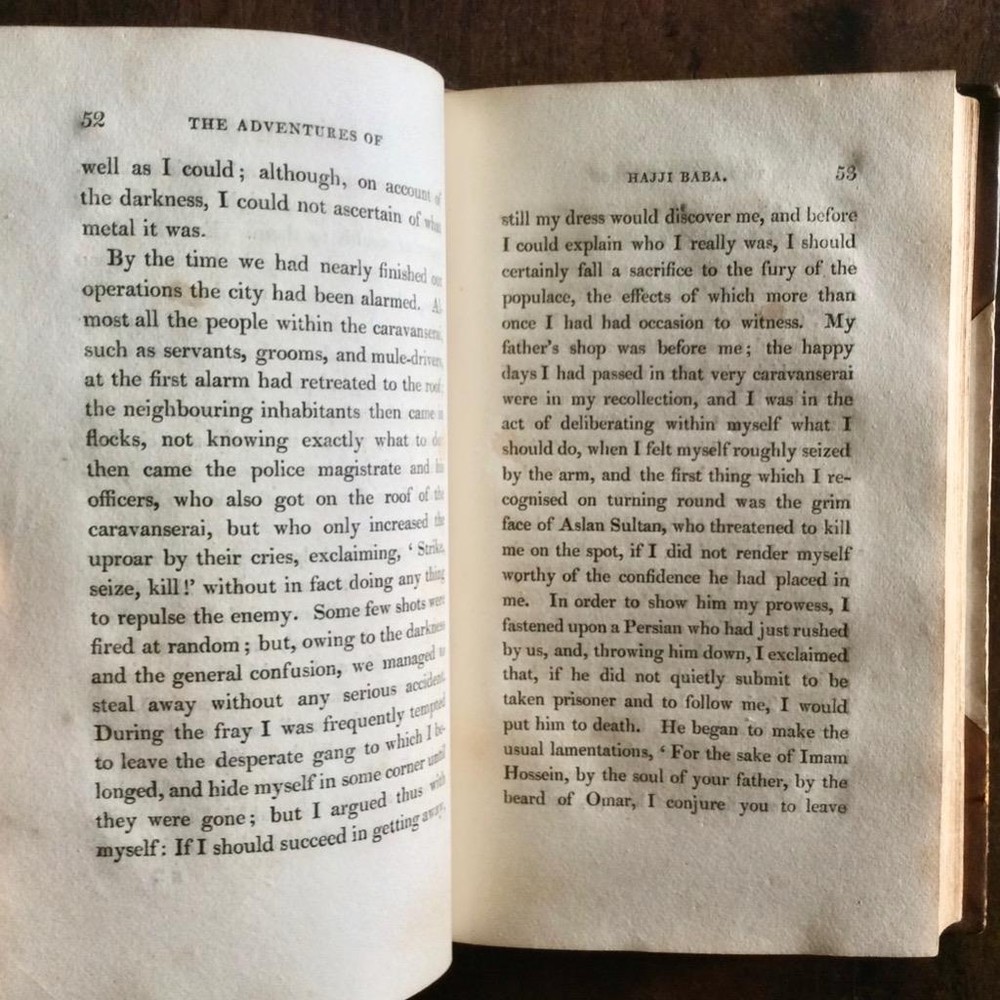 Please scroll down for full listing & description 1824 The ADVENTURES Of HAJJI BABA By J J MORIER 3 x Volume Set LEATHER BOUND 1824 The ADVENTURES Of HAJJI BABA By J J MORIER 3 x Volume Set LEATHER BOUND Click images to enlarge Description THE ADVENTURES OF HAJJI BABA OF ISPAHAN BY JAMES J. MORIER COMPLETE IN THREE VOLUMES PUBLISHED BY JOHN MURRAY, LONDON 1824 SECOND EDITION HARDBACKS BOUND IN 19TH CENTURY HALF LEATHER BINDINGS, HALF TITLE TO VOLUME 2 EACH MEASURES APPROX 6.5 x 4 INCHES SOME MINOR RUBBING & SCUFFS TO LEATHER SPINES & CORNERS, OCCASIONAL LIGHT FOXING TO PAGES WITH THE VERY OCCASIONAL PAGE WITH MINOR MARGINAL STAINS, OCCASIONAL PAGES WITH CREASES TO CORNERS OVERALL VERY GOOD WITH ALL BOARDS FIRMLY ATTACHED A COLLECTABLE SECOND EDITION BOUND IN AN ATTRACTIVE LEATHER BINDINGS PLEASE CHECK MY E-BAY SHOP FOR RARE & ANTIQUARIAN BOOKS,MAPS & PRINTS Add me to your Favourite Seller Visit My eBay Store Get images that make Supersized seem small. Showcase your items with Auctiva's Listing Templates! THE simple solution for eBay sellers. Track Page Views With Auctiva's Counter