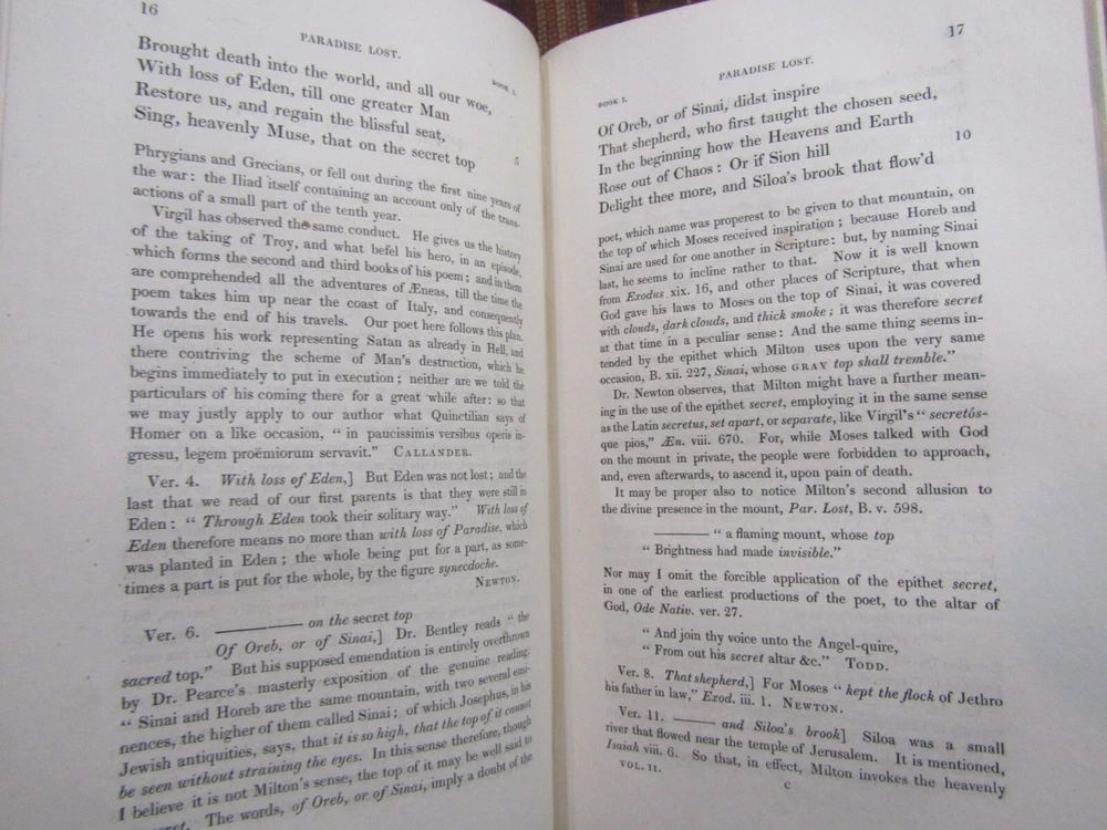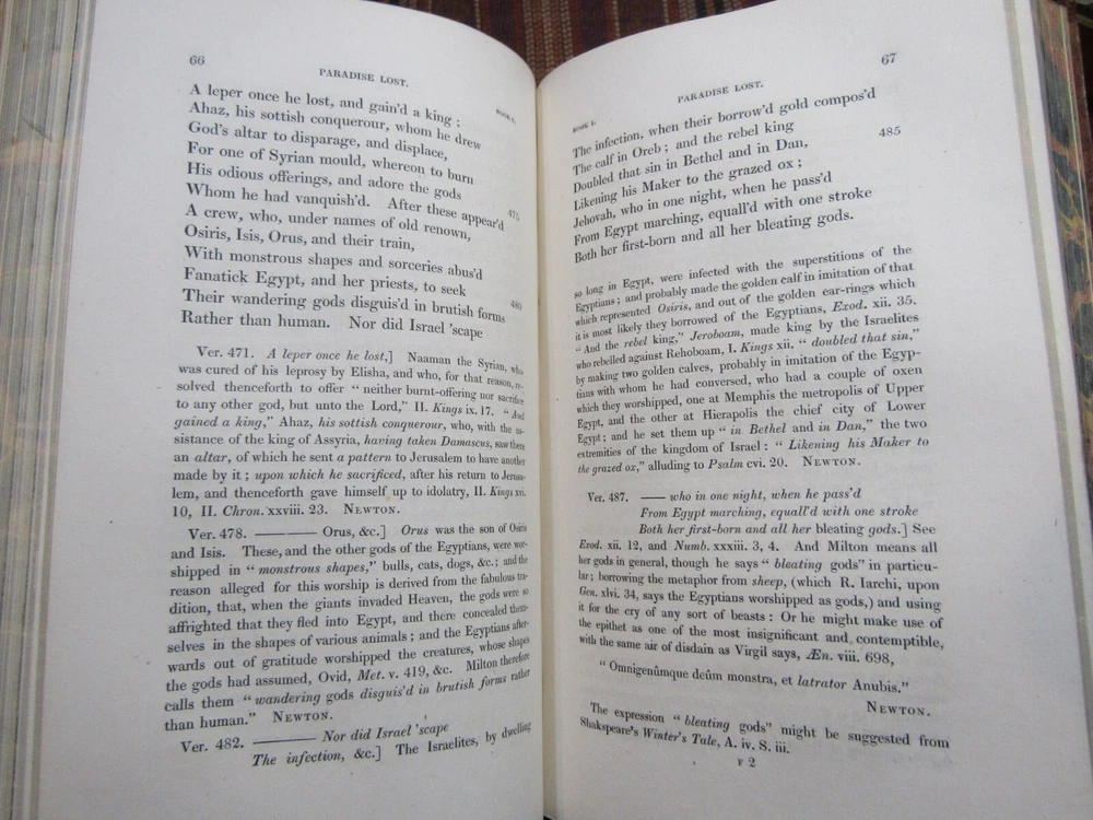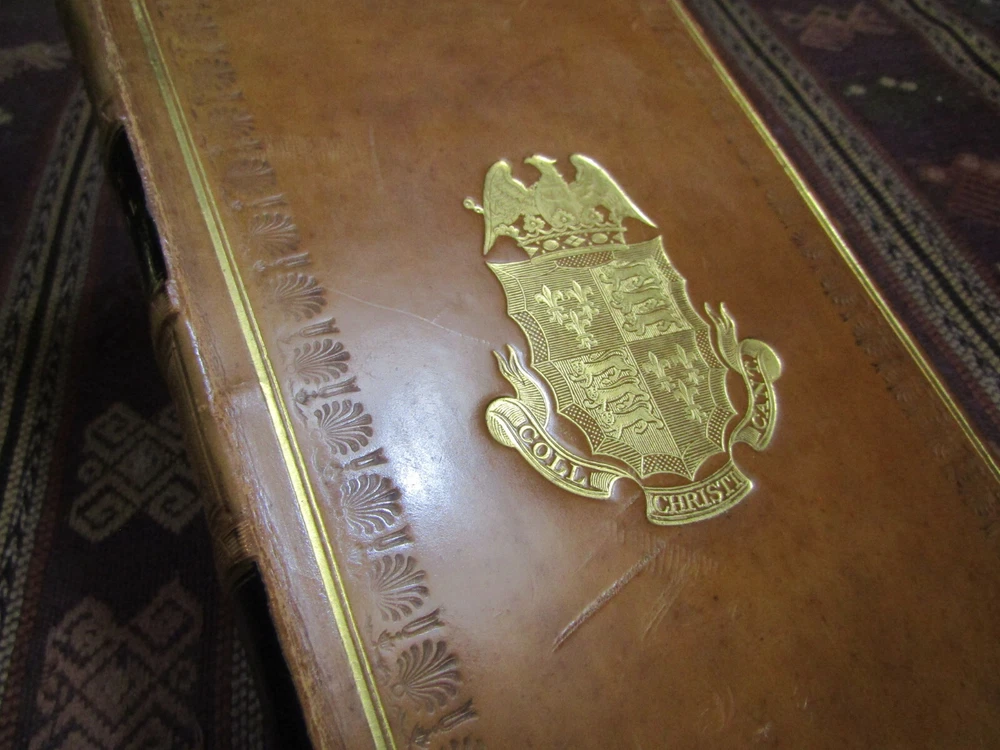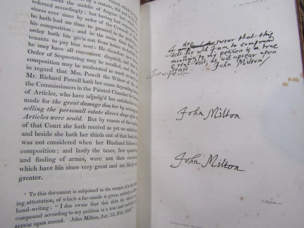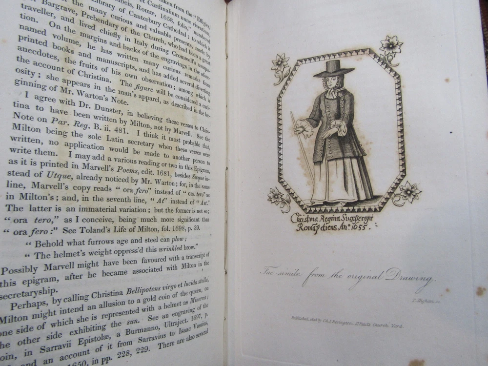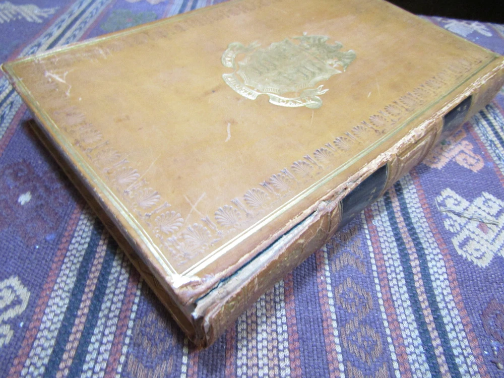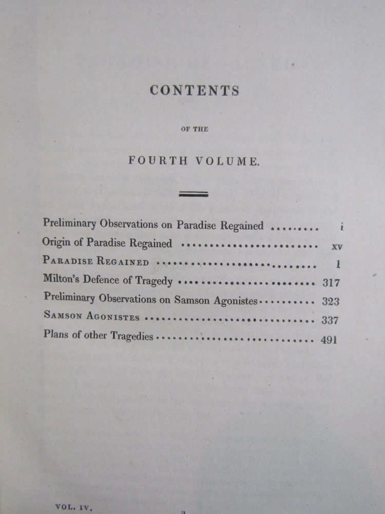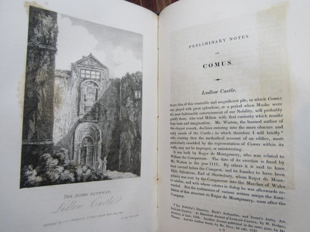 ~~Lovely Full Armorial Leather Bindings~~ ~ 6 Volume Set ~ Third Edition ~ ~ (Some Splitting to Rear Hinge of Volume I) ~ The Poetical Works of John Milton. With Notes of Various Authors. The Third Edition, with other Illustrations; and with Some Account of the Life and Writings of Milton. Derived Principally from Documents in his Majesty's State-Paper Office, now First Published [With "Paradise Lost", etc. 6 Volumes in Armorial Gilt Leather Bindings] By John Milton ~ Edited and with "Life" by Rev. H. J. Todd ~ London: Printed for E. and J. Rivington; J. Cuthell [et al], ~ 1826 ~ ************************************************* Octavos. Variously paginated. Hardcovers bound in lovely full calf with dual black leather labels and gilt stamping on the spines. Armorial bindings with crests on the front and rear covers on each volume embossed in gilt. Blind rules along the perimeters of the covers. The gilt crest has an left-facing eagle sitting on a crown above a shield. The shield has four compartments, two with three fleur-de-lis and two with three left facing lions and a motto of "Coll / Christi / Cant." All edges marbled, and all volumes with matching green marbled endpapers. The bindings generally show moderate wear and bumping, but the rear outer hinge on Volume I is splitting with the split running about 3 1/4 inches up from the foot of the spine. The rest of the volumes are a little rubbed but are fairly attractive and are sound. The text has light foxing. ***************************************** We Always Accept Returns if the Item Does Not Match the Description. If You Have any Questions, Please Do Not Hesitate to Ask! *************************************************** Come visit our OPEN SHOP in Greensboro, North Carolina. Shop Hours: 10-6 Mondays ~~ Saturdays ~~Closed on Sundays~~ Pages Past -- Used & Rare Books / 1837 Spring Garden St. / Greensboro, N.C. 27403 We are proud to have serviced the Greensboro area with an open bookshop since 1996 !