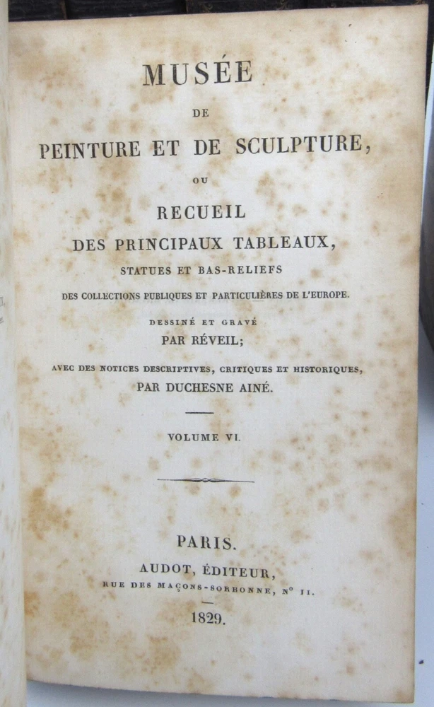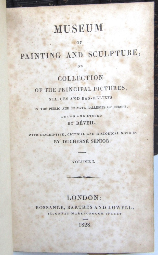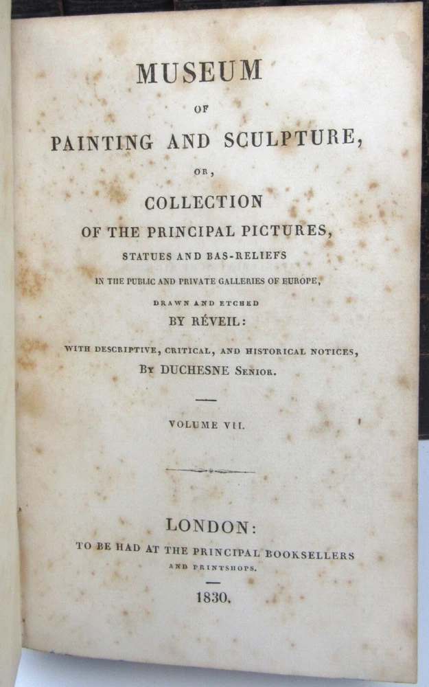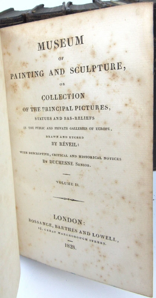 🖼️ Discover Artistic Treasures: Museum of Painting and Sculpture Book Set Immerse yourself in the artistic wonders of history with this extraordinary Museum of Painting and Sculpture book set by Duchesne Senior, published in 1828 by Bossange, Barthes, and Lowell. This rare first edition collection, bound in luxurious leather over marbled boards, dates back to the early 1800s, offering a captivating glimpse into the world of art from a bygone era. 🎨 Artistic Masterpieces Await Each volume is a treasure trove of artistic masterpieces, meticulously curated and accompanied by insightful commentary from Duchesne Senior. With its rich leather bindings and marbled boards, this set exudes timeless elegance and sophistication. 🔍 Condition While there is expected wear to the boards and edges consistent with its age, each volume remains remarkably well-preserved. Some scattered foxing adds to the antique charm, while the leather bindings could benefit from cleaning. Please note that we did not inspect every page, but the set appears complete - Please review all pictures for a detailed assessment of the item's condition. 🚚 Shipping & Handling All items are meticulously packed for a safe journey, complete with tracking for your peace of mind. ⏳ Handling Time : Typically ships next business day, though set for two business days to account for uncontrollable external factors like northeast weather conditions, etc. 📦 Shipping Cost : We offer standard shipping via first class or priority mail, tailored to the weight and dimensions of the item. We utilize trusted carriers such as USPS, FedEx, and UPS based on cost efficiency. 💳 Payments Payment is expected promptly at the close of the auction or the day after the sale. Transactions will be canceled for non-payment after four calendar days. 🚫 Non-Paying Buyers : Those who fail to complete payment may be blocked from future transactions to maintain a smooth buying experience for all. ❌ Canceled Transactions : Winning bidders and 'Buy It Now' customers who request to cancel the sale post-completion will be blocked from future transactions to uphold fairness in our selling process. Thank you for considering our item, and please don't hesitate to reach out with any questions you may have. Happy shopping! 🛍️