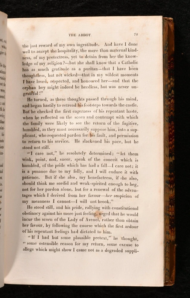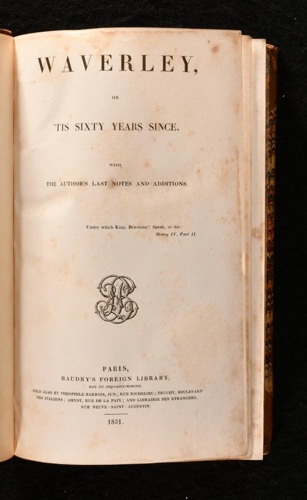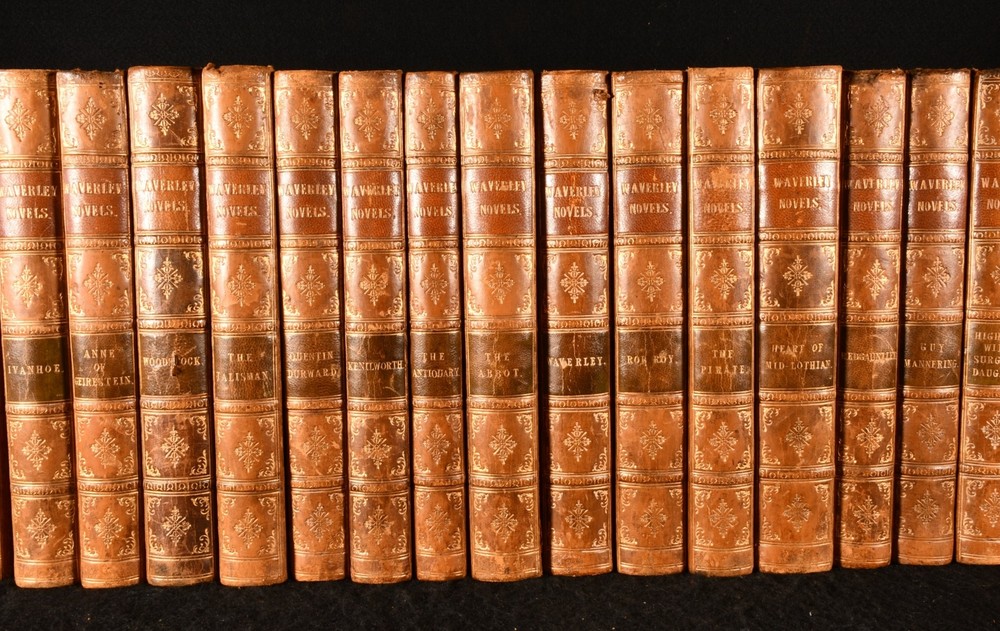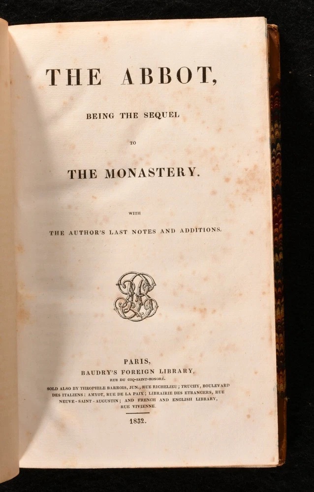 Click here to see our other books! The Waverley Novels Sir Walter Scott 1831-1838 Baudry's European Library : Paris 8.5" by 5" SUMMARY A handsome library set of the Waverley novels, in a handsome half calf binding. Leather Binding Overall Condition: Very Good This book weighs 10 KG when packed UK Postage: £ 4.49 US Postage: £ 68.99 EU Postage : £ 36.99 European Postage: £ 65.99 Asia Postage: £ 129.99 Worldwide Postage: £ 229.99 DESCRIPTION An uncommon Baudry's European Library edition of the works of Sir Walter Scott. With the bookplate of Thomas Gilbert to the front pastedowns. Contains: Anne of Geirestein Ivanhoe The Antiquary Kenilworth Quentin Durward The Talisman Woodstock The Betrothed Peveril of The Peak Highland Widow/Surgeon's Daughter St Ronan's Well The Monastery The Fortunes of Nigel Fair Maid of Perth The Abbot Redgauntlet The Pirate Black Dwarf/Old Mortality Heart of Mid-Lothian Waverley Guy Mannering Rob Roy Count Robert/Castle Dangerous Lammermoor Montrose The Waverley Novels are a long series by Sir Walter Scott. They were the most widely read works of their time and remained as popular for nearly a century. Sir Walter Scott was a Scottish historical novelist, playwright and poet. He was one of the first to have contemporary readers in Europe, Australia and North America. CONDITION In a half calf binding with marbled boards. Externally very smart with slight rubbing to the extremities and boards. Bookplate to front pastedowns of one 'Thomas Gilbert'. Internally firmly bound. Pages generally bright and clean with scattered spotting and marginal age toning, due to paper used. Overall Condition: Very Good GLOSSARY OF TERMS Overall Condition (Dustwrapper condition rating is shown after that for the book itself, where a dustwrapper is present) Fine - Very well preserved copy showing very little wear Very Good Indeed - Only one or two minor faults, really a very attractive copy Very Good - Quite a wide term meaning no major faults but probably several smaller ones often expected given the age of the book, but still a respectable copy Good - Meaning not very good. Some more serious faults as will be described in the condition report under 'condition' Good Only - Meaning one or more faults that could really do with repair Fair - As with good only above but with other faults leaving a compromised copy even after repair Poor - Really bad and possibly seriously incomplete. We only sell books in this condition where their rarity or value makes them attractive none the less. Major defects will be described. GUARANTEE We offer a full money back guarantee on our descriptions. Please ask for details and conditions. We prefer PAYPAL. If you pay via PAYPAL we will post the item off the same or the next working day with the postage you have selected. Please note we cannot accept USD cheques