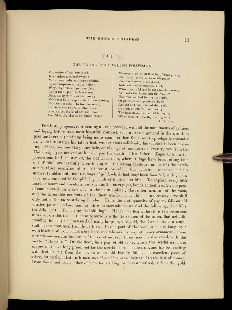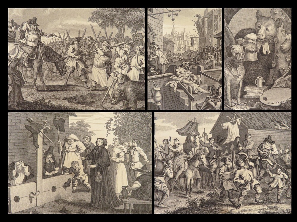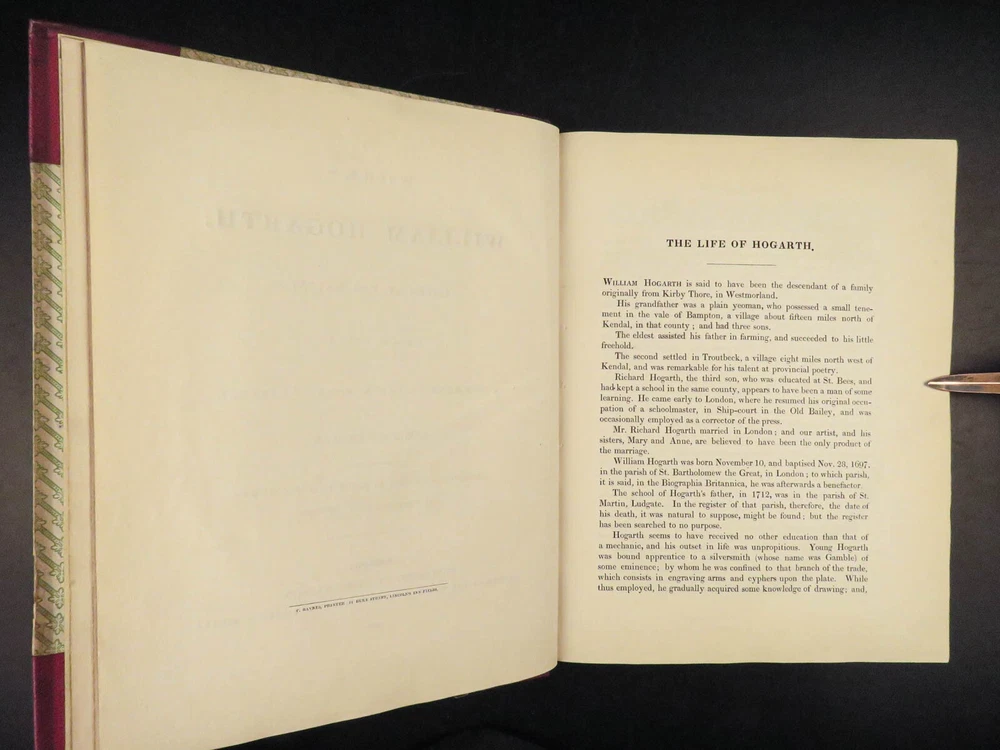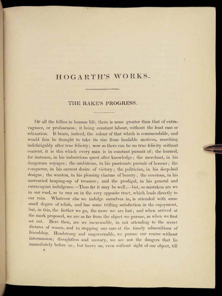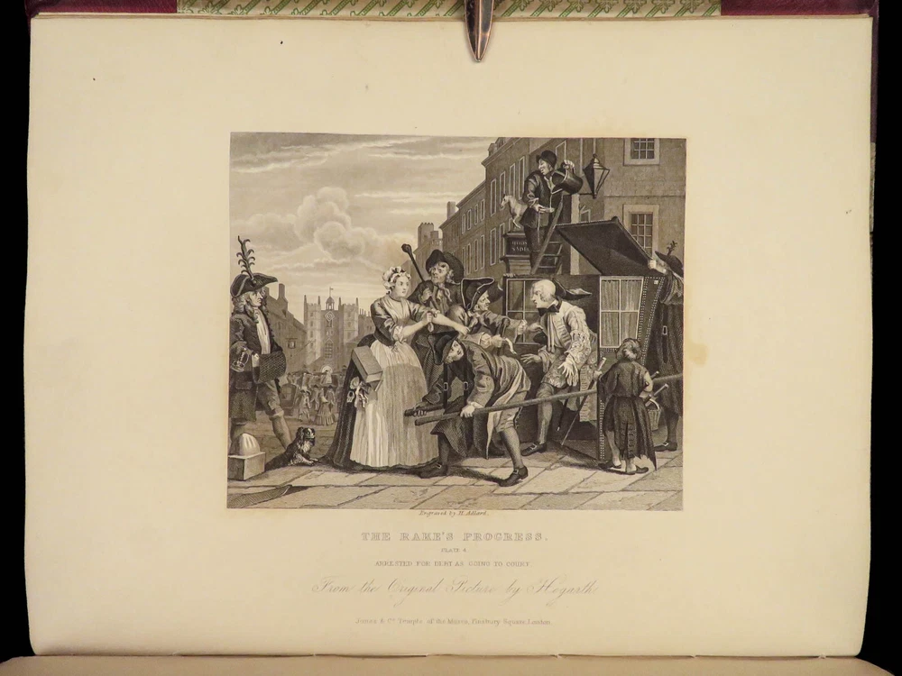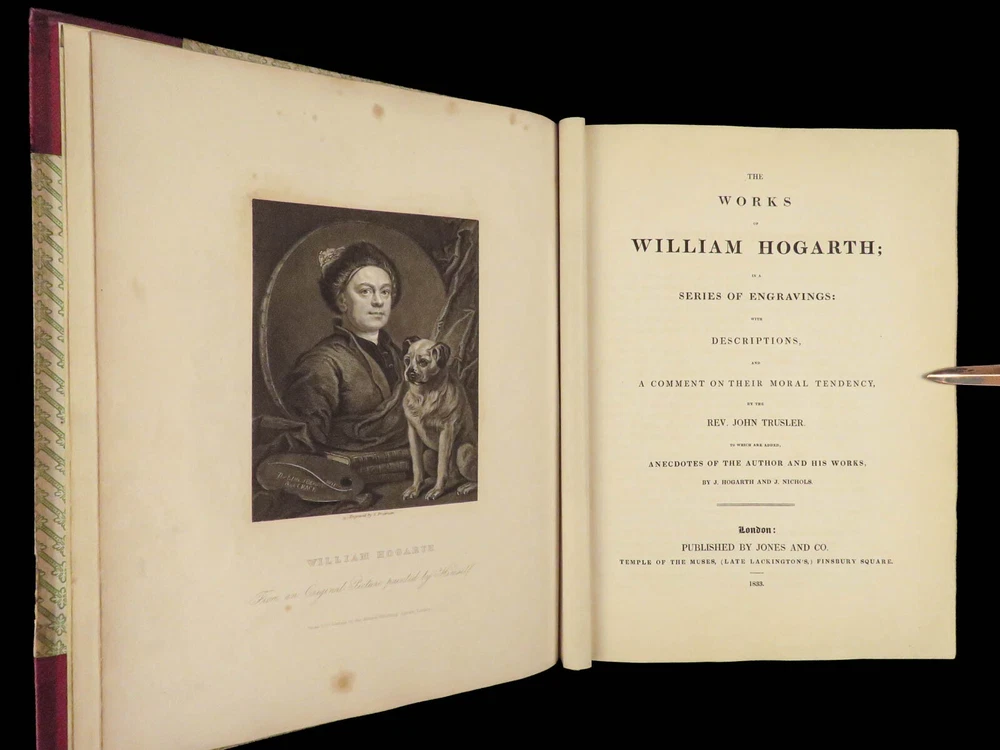 1833 William Hogarth Illustrated ART Political Hudibras Rakes Progress 2v SET William Hogarth was one of the most famous English artists of the 18th-century and his satirical cartoons appeared in comic-strips and other printed works for decades. His most famous works were short series of sketches that told moral stories through the lens of political satire – ‘ A Harlot’s Progress ,’ ‘ A Rake’s Progress ,’ and ‘ Marriage-A-La-Mode .’ This 1833 printing of the works of Hogarth include his most famous works including illustrations to ‘ Hudibras ,’ and ‘ Industry and Idleness .’ Item number: #25287 Price: $499 HOGARTH, William The works of William Hogarth, in a series of engravings with descriptions, and a comment on their moral tendency, by the Reverend John Trusler: to which are added, anecdotes of the author and his works; by J. Hogarth and J. Nichols. London: Jones and Co., 1833. Details : · Collation: Complete with all pages; 2 volumes o Vol. 1 – [2], 116 o Vol. 2 – [4], 117-224, [2] o 109 engraved plates (including frontispiece) · Language: English · Binding: Leather; tight and secure · Size : ~11in X 8.75in (28cm x 22.5cm) Our Guarantee: Very Fast. Very Safe. Free Shipping Worldwide. Customer satisfaction is our priority! Notify us with 7 days of receiving, and we will offer a full refund without reservation! 25287