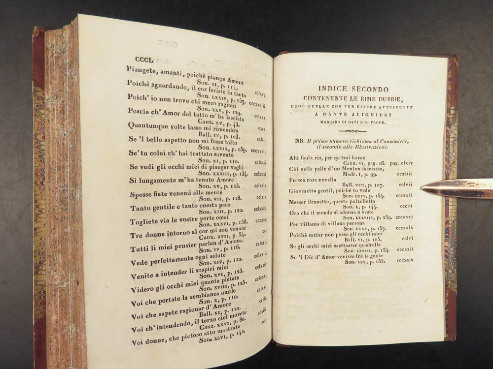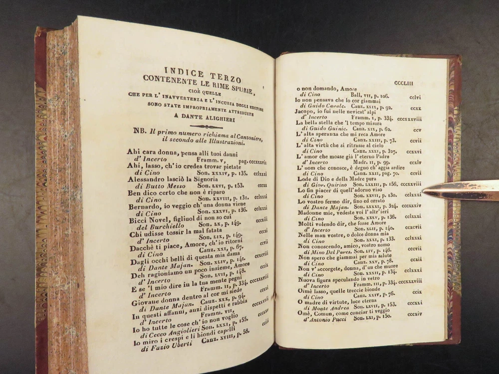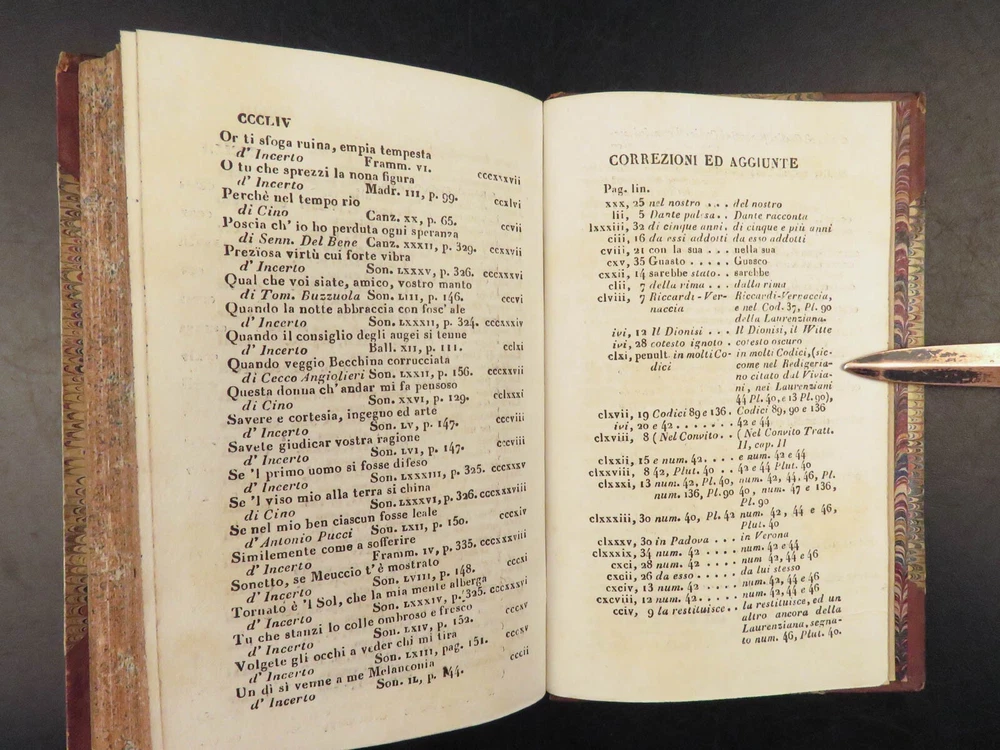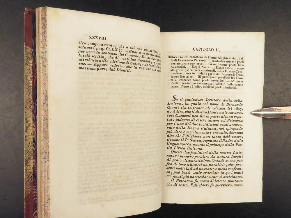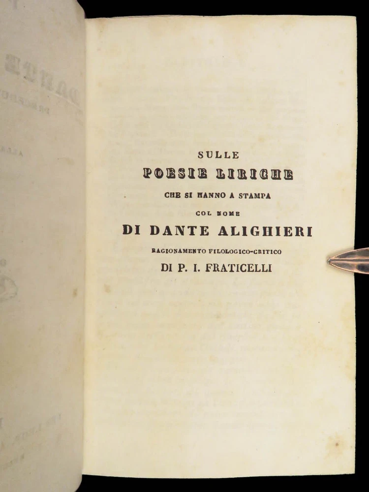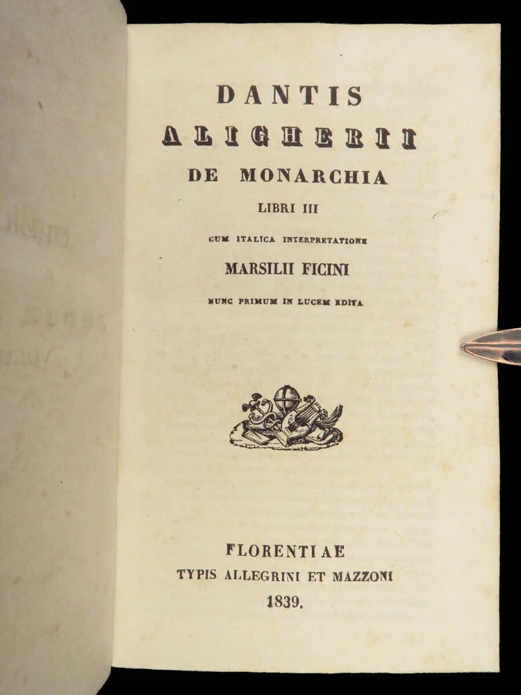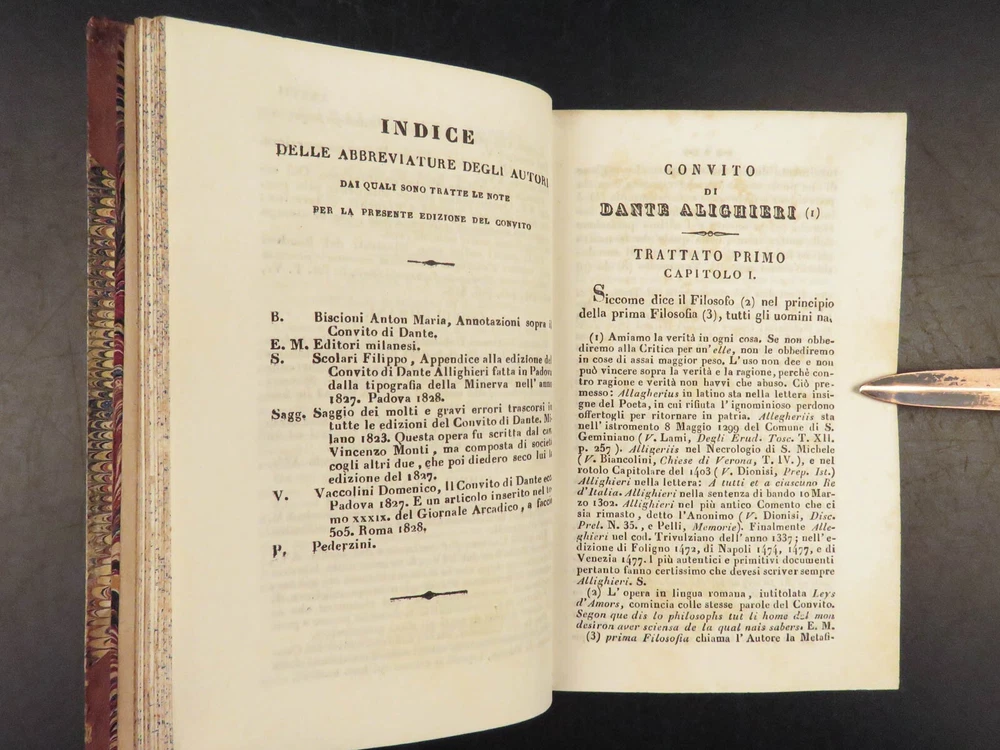 1834 DANTE Convivio The Banquet Monarchia Medieval Poetry Italian 5v Set RARE “Abandon all hope, ye who enter here.” ― Dante Alighieri, The Divine Comedy While best-known for the famous ‘ Divine Comedy’ , Dante Alighieri also wrote two lesser-known works such as ‘ Convivio’. ‘ Convivio’ , or ‘ The Banquet’ is a collection of Dante’s own knowledge, a sort of encyclopedia of philosophy, religion, science, history, and astronomy. This collection of Dante’s minor works includes Convivio and ‘ Monarchia’ – a treatise on political philosophy. This five-volume Italian edition of Dante’s works was published in Florence. A fine five-volume set! Item number: #24839 Price: $950 ALIGHIERI, Dante Opere minori In Firenze [Florence]: Leop. Allegerini e G. Mazzoni, 1834-39. 1 st edition Details : · Collation: Complete with all pages; 3 volumes in 5 tomes o Vol. I § Part 1 – cccliv, [2] § Part 2 – [2], 356 o Vol. II § Part 1 – xxxvii, [1], 324 § Part 2 – [2], 325-696 o Vol. III – xii, 358, [2] · Provenance: Armorial bookplate - Edward Francis Witts o Likely Edward Francis Witts (1813-1886), rector of Upper Slaughter in Gloucestershire. He was also the father of George Backhouse Witts (1846–1912), a British civil engineer and archaeologist who specialised in the prehistoric barrows of Gloucestershire. Motto: ANTE OBITUM NEMO FELIX · Language: Italian / Latin · Binding: Leather; tight and secure · Size : ~6in X 3.75in (15cm x 9.5cm) · Very rare and desirable collection! Our Guarantee: Very Fast. Very Safe. Free Shipping Worldwide. Customer satisfaction is our priority! Notify us with 7 days of receiving, and we will offer a full refund without reservation! 24839