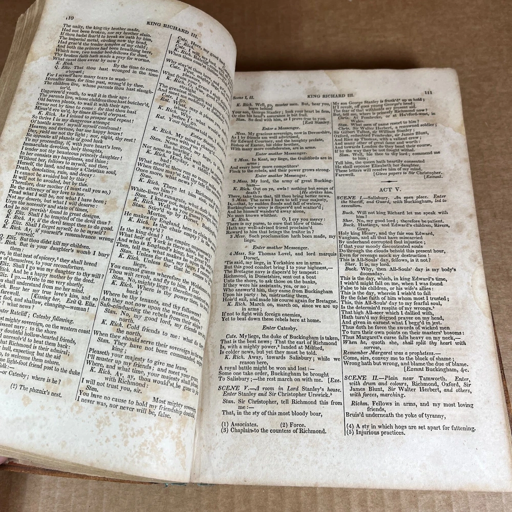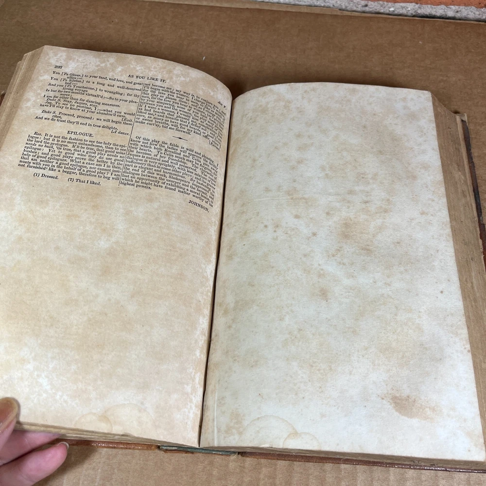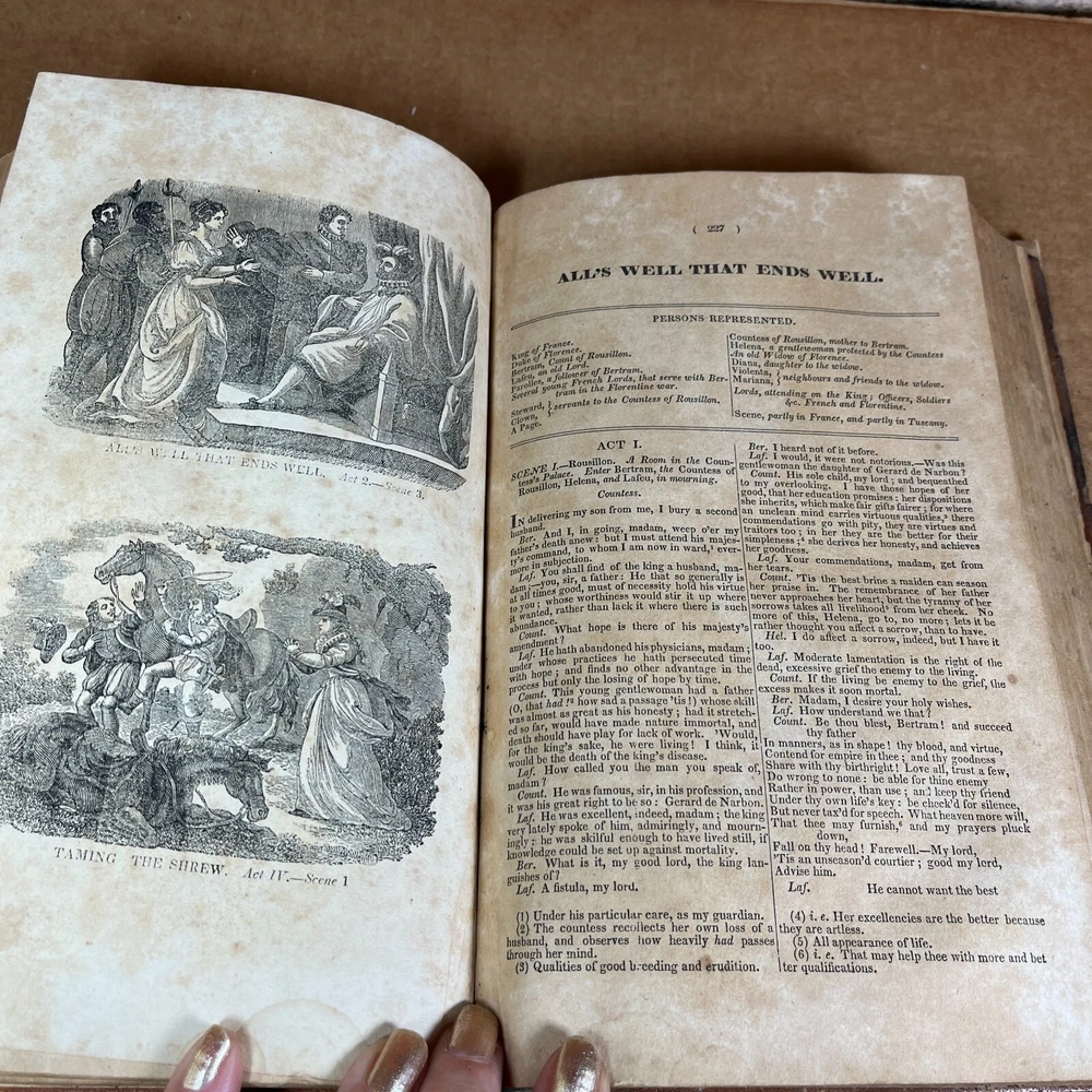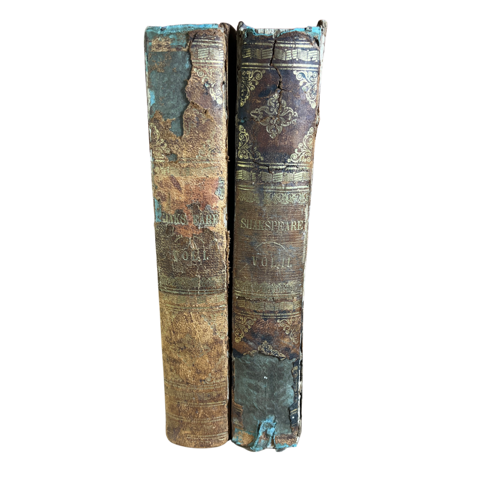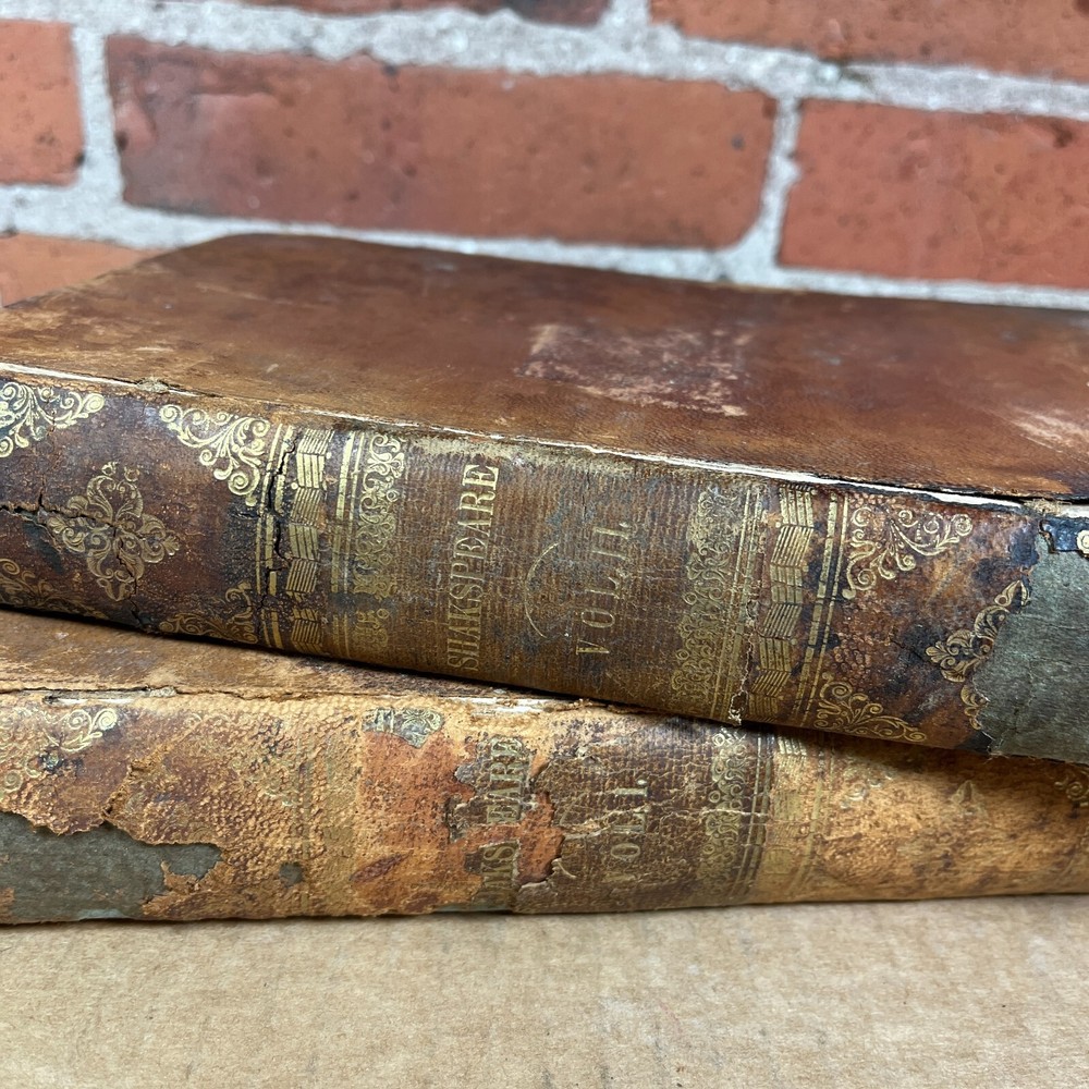 The Dramatic Works of Shakespeare - Two-Volume Set - Leather Bound - 1841 This rare two-volume set of The Dramatic Works of Shakespeare, published in 1841 by Thomas Cowperthwait & Co., is a timeless piece of literary history. Bound in leather, these volumes showcase the classic works of William Shakespeare, preserving his timeless plays in a beautiful antique format. Features: Title: The Dramatic Works of Shakespeare Volumes: Two-volume set Publisher: Thomas Cowperthwait & Co. Publication Year: 1841 Format: Leather bound Condition: Significant wear on leather cover Moderate foxing throughout Boards and endpapers cracked Binding is tight with no loose or missing pages See photos for details A Literary Treasure: These volumes are a wonderful addition for collectors of antique books, Shakespeare enthusiasts, or anyone who appreciates the rich history of 19th-century bookbinding and publication. Despite the wear, the bindings are secure, and the pages remain intact, making this set both a display piece and a readable classic. Carefully Packaged for Safe Delivery: We take pride in securely packaging every item to ensure it arrives in excellent condition. Thank you for looking! Feel free to reach out with any questions or inquiries.