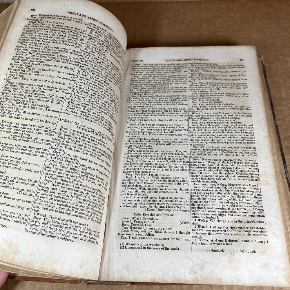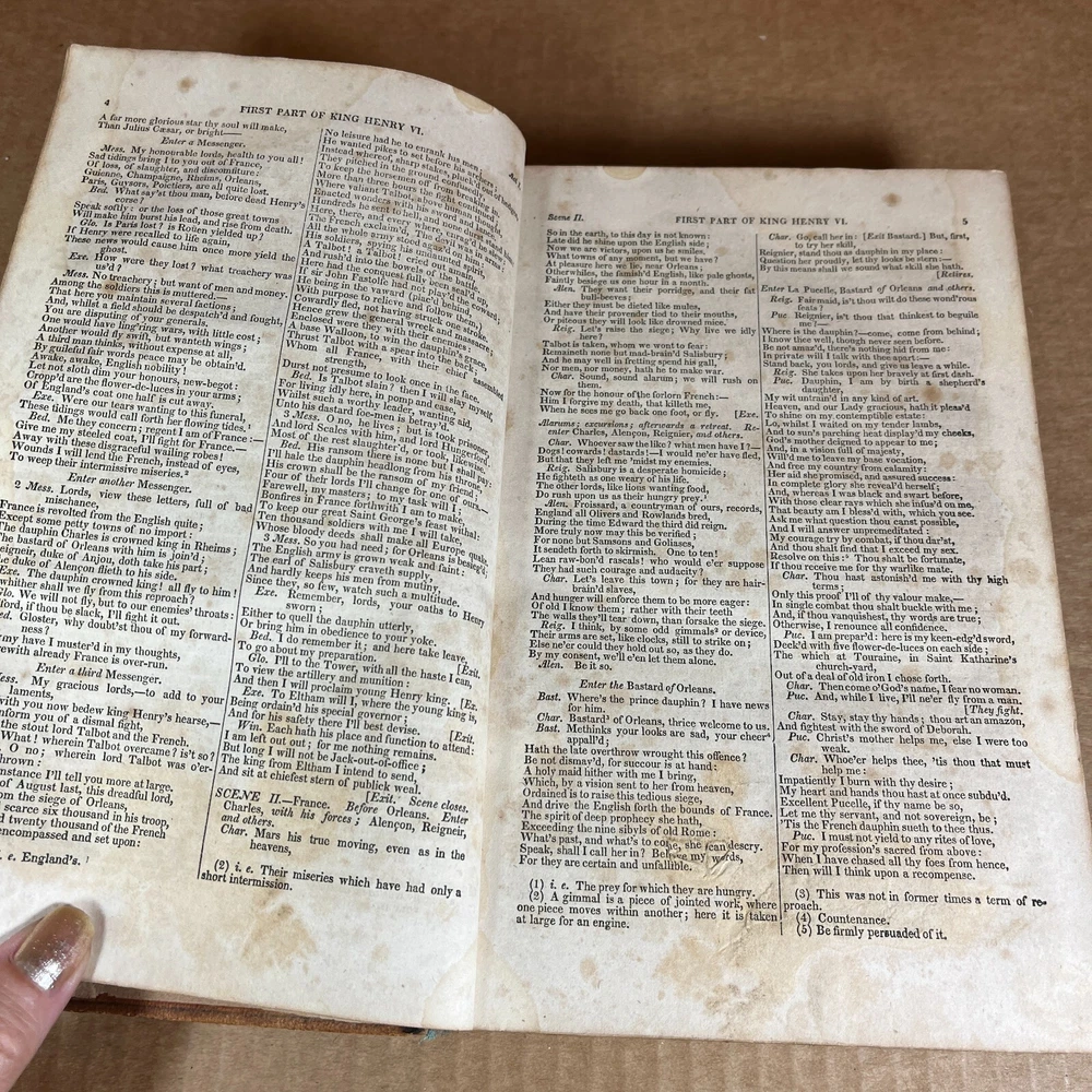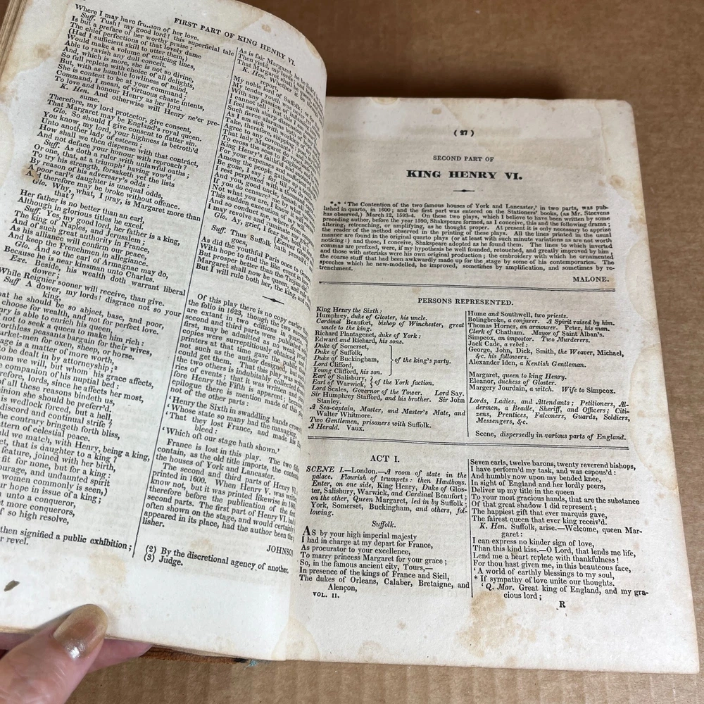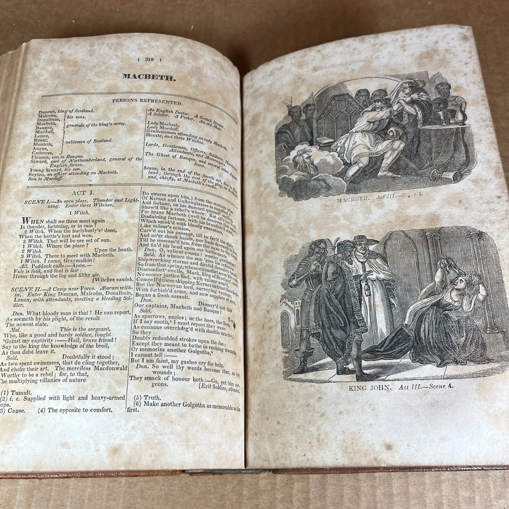 The Dramatic Works of Shakespeare - Two-Volume Set - Leather Bound - 1841 This rare two-volume set of The Dramatic Works of Shakespeare, published in 1841 by Thomas Cowperthwait & Co., is a timeless piece of literary history. Bound in leather, these volumes showcase the classic works of William Shakespeare, preserving his timeless plays in a beautiful antique format. Features: Title: The Dramatic Works of Shakespeare Volumes: Two-volume set Publisher: Thomas Cowperthwait & Co. Publication Year: 1841 Format: Leather bound Condition: Significant wear on leather cover Moderate foxing throughout Boards and endpapers cracked Binding is tight with no loose or missing pages See photos for details A Literary Treasure: These volumes are a wonderful addition for collectors of antique books, Shakespeare enthusiasts, or anyone who appreciates the rich history of 19th-century bookbinding and publication. Despite the wear, the bindings are secure, and the pages remain intact, making this set both a display piece and a readable classic. Carefully Packaged for Safe Delivery: We take pride in securely packaging every item to ensure it arrives in excellent condition. Thank you for looking! Feel free to reach out with any questions or inquiries.
