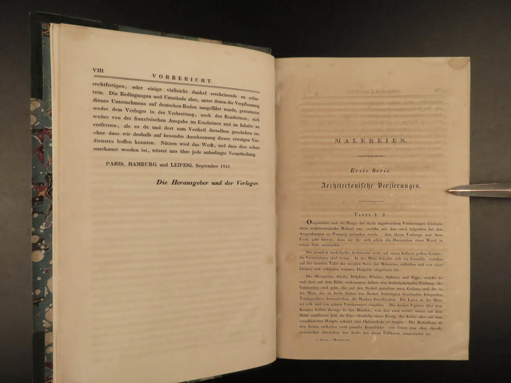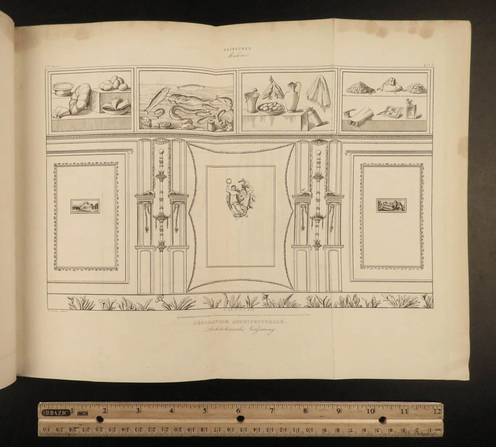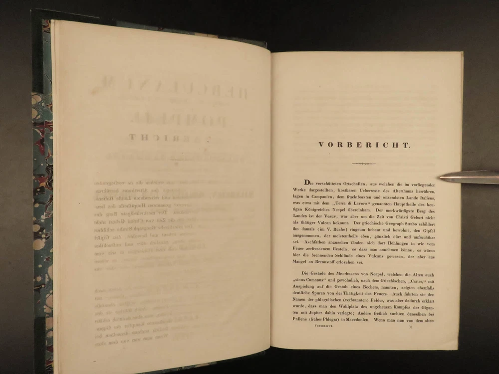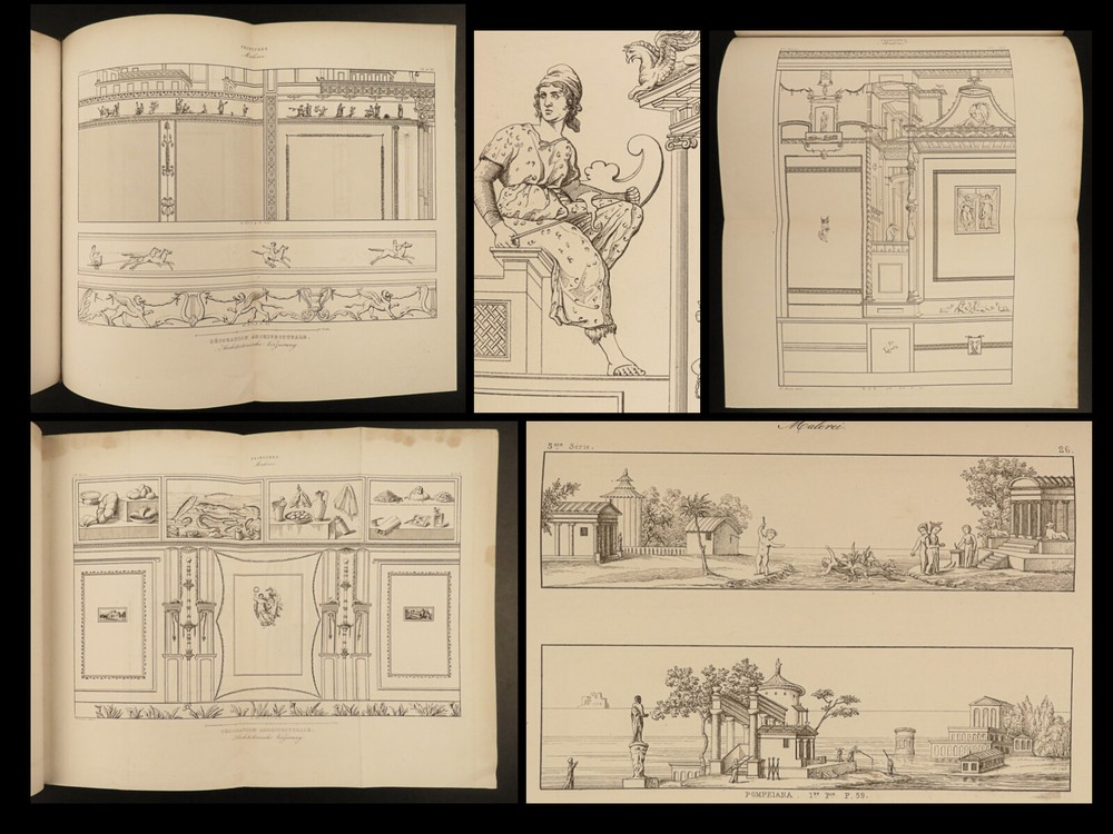 1841 Herculaneum & Pompeii ART Paintings Sculptures VESUVIUS 6v SET 718 PLATES! Henri Roux and Louis Barre’s “ Herculanum and Pompeii ” is a rare, fascinating 19 th -century history of the antiquities of the Italian cities Herculaneum and Pompeii which were destroyed by the eruption of Mount Vesuvius in 79A.D. This work is devoted to the study of the paintings and bronze statues found in the ruins documenting each notable piece of art discovered. This impressive set contains more than 700 illustrations – easily one of the most heavily 19 th -century illustrated works of Vesuvian history. Item number: #20092 Price: $950 BARRE, Louis; Henri Roux Herculanum und Pompeji : Vollständige Sammlung der daselbst entdeckten, zum Theil noch unedirten Malereien, Mosaiken und Bronzen Hamburg : Meissner, 1841. Details : · Collation: Complete with all pages; 6 volumes o 718 plates · Language: German · Binding: Leather; tight and secure · Size : ~10.25in X 6.75in (26cm x 17cm) Our Guarantee: Very Fast. Very Safe. Free Shipping Worldwide. Customer satisfaction is our priority! Notify us with 7 days of receiving, and we will offer a full refund without reservation! 20092