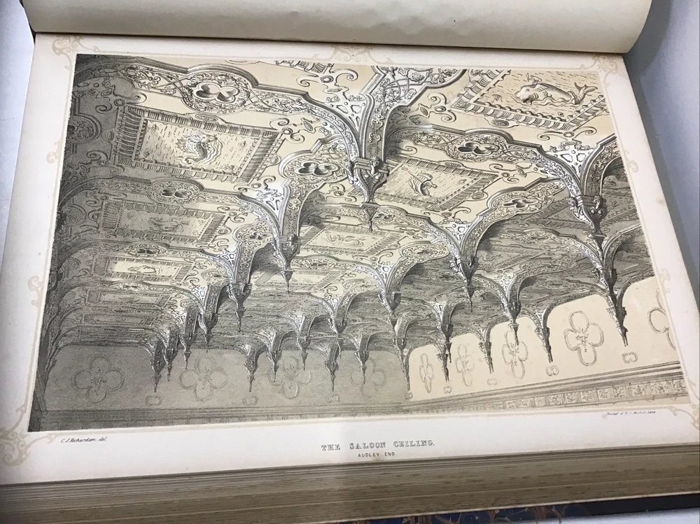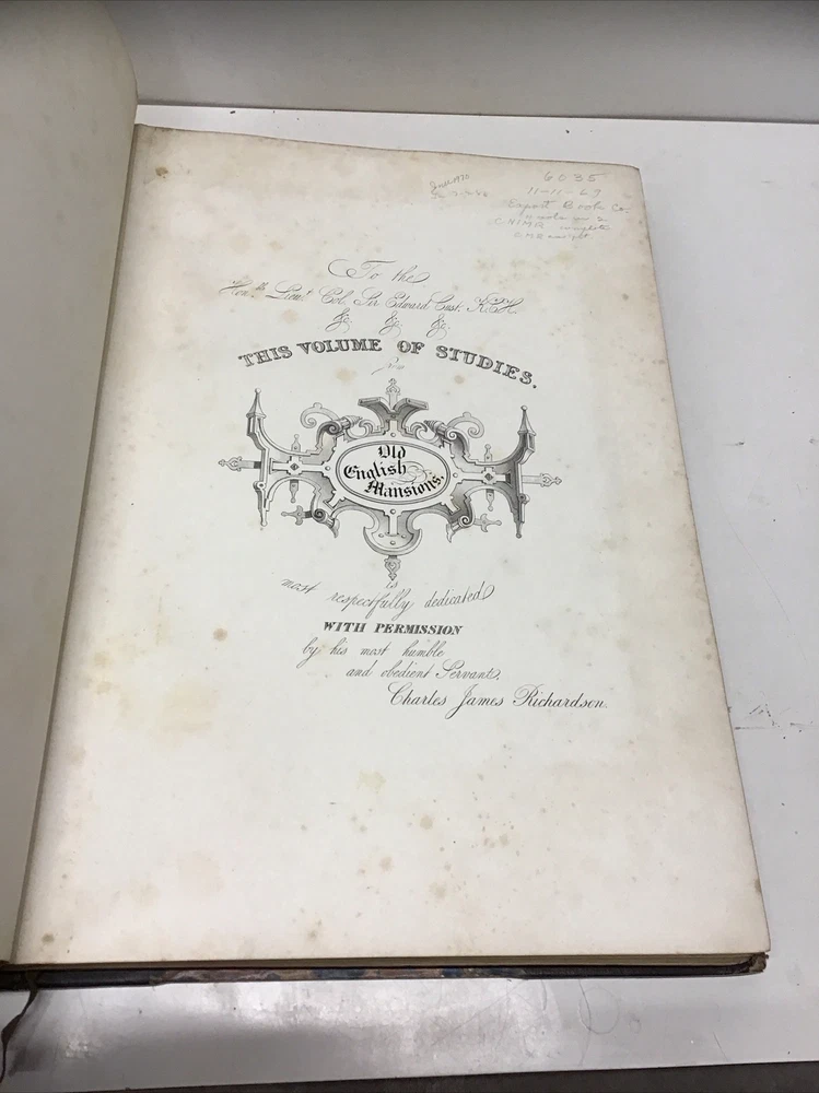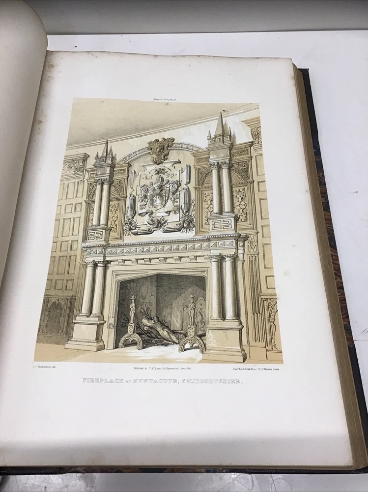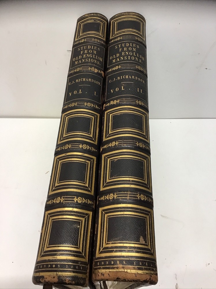 Explore the lavish lifestyle of Old English Mansions with this 1841-1848 4Vols in 2 Studies book set, authored by C. J. Richardson. The exquisite leather-bound books feature illustrations by Charles James Richardson and are published by Tho. McLean in London. The books are an original Folio Edition and are a must-have for collectors of antiquarian and collectible books. This book set is a special find for anyone interested in English architecture and history. The beautiful illustrations and informative text will transport readers to a bygone era of grandeur and opulence. Illustrated with four tinted lithographed title-pages, and with twenty-four lithographs to first series; twelve decorative text plates followed by twenty-three lithographs to second series; thirty-seven plates to third series; thirty-seven to third series. These plates include eight chromolithographs, and a number of double page plates. With all four volumes bound in two. With the 1841 first series and 1842 second series bound in one volume, and the 1845 third series and 1848 fourth series also bound together. 1841-1848 4Vols in 2 Studies from Old English Mansions CJ Richards Folio Edition - weigh over 29 pounds Size 14.25” x 19.25” These 175+ year old books have some wear to covers and interior pages have some stains and foxing (See Photos) Marbleized endpapers. Keep in mind the shipping price also covers handling fees, packaging materials & time, not just postage. Shipping Calculator is often wrong please contact me for an accurate international shipping price. See our eBay store for thousands of our other items. B12E