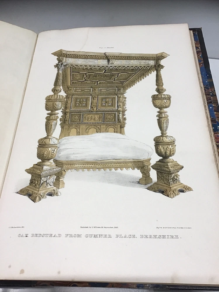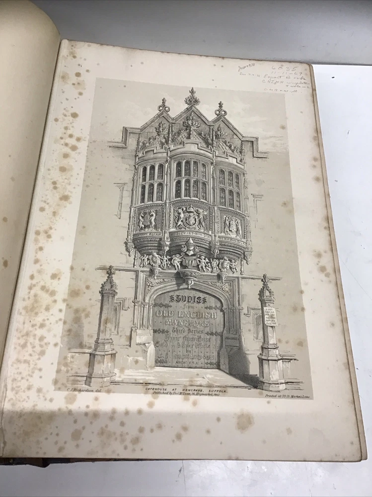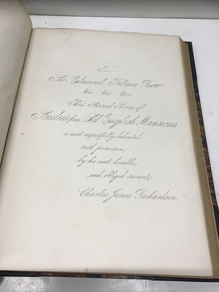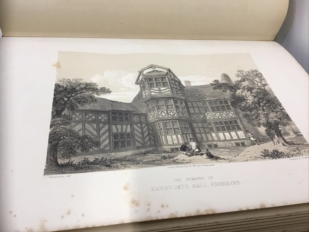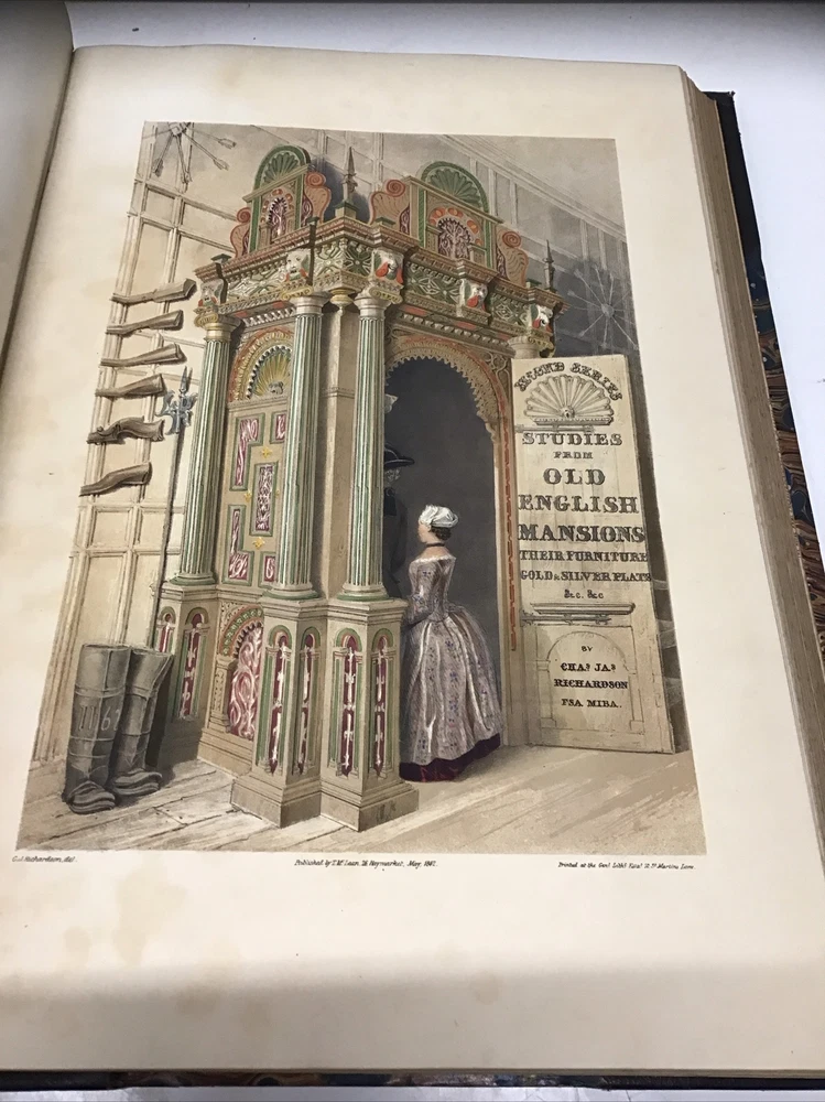 Explore the lavish lifestyle of Old English Mansions with this 1841-1848 4Vols in 2 Studies book set, authored by C. J. Richardson. The exquisite leather-bound books feature illustrations by Charles James Richardson and are published by Tho. McLean in London. The books are an original Folio Edition and are a must-have for collectors of antiquarian and collectible books. This book set is a special find for anyone interested in English architecture and history. The beautiful illustrations and informative text will transport readers to a bygone era of grandeur and opulence. Illustrated with four tinted lithographed title-pages, and with twenty-four lithographs to first series; twelve decorative text plates followed by twenty-three lithographs to second series; thirty-seven plates to third series; thirty-seven to third series. These plates include eight chromolithographs, and a number of double page plates. With all four volumes bound in two. With the 1841 first series and 1842 second series bound in one volume, and the 1845 third series and 1848 fourth series also bound together. 1841-1848 4Vols in 2 Studies from Old English Mansions CJ Richards Folio Edition - weigh over 29 pounds Size 14.25” x 19.25” These 175+ year old books have some wear to covers and interior pages have some stains and foxing (See Photos) Marbleized endpapers. Keep in mind the shipping price also covers handling fees, packaging materials & time, not just postage. Shipping Calculator is often wrong please contact me for an accurate international shipping price. See our eBay store for thousands of our other items. B12E
