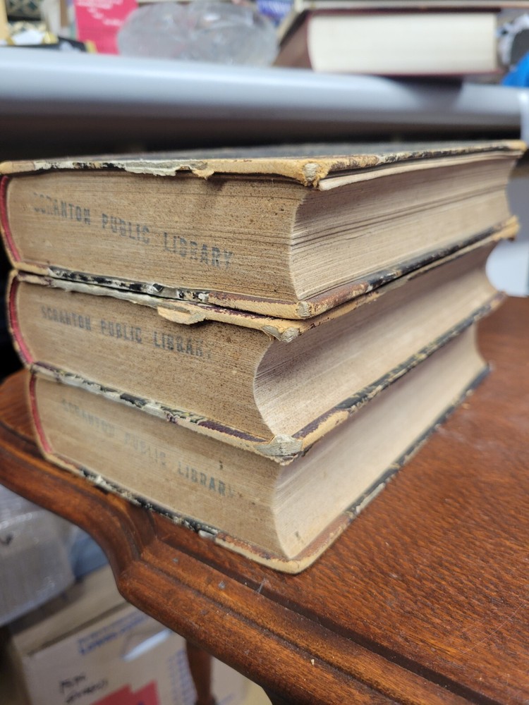 1849!!! These are not only antique they are also ex-library so considering both the condition is pretty darn good, they are a bit worse for wear with some tape and HEAVY stamping and damage at the back where library cards were removed. Heavy foxing in the pages as seen. Amazingly though no loose pages. You are getting the 3 books seen in photos which hold volumes 8,9,10,11 and 12. Please see all photos as an important part of the description!