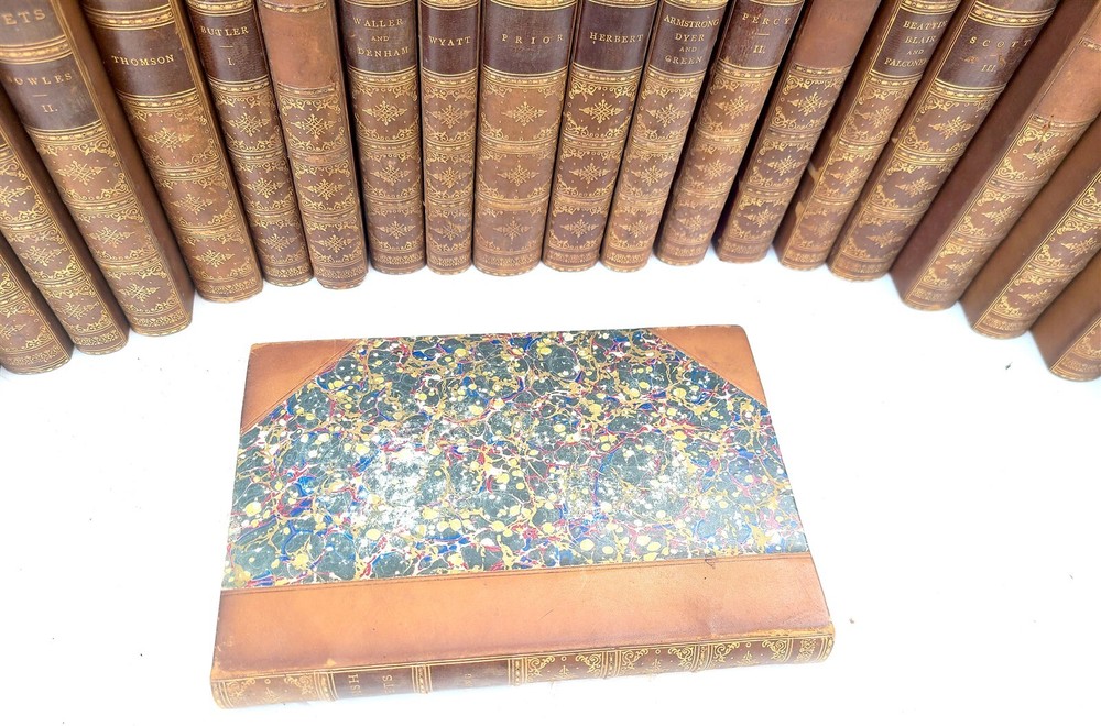 BRITISH POETS 25 volumes (incomplete set) Edinburgh; 1850s Size: 6 by 8 3/4" Original 3/4 leather with marbled boards Top edge gilt, nicely decorated spines Very good interior condition, some wear of bindings. Lacks a few spine title labels Text on English ================================== Please see my other auctions Thank You Refund Policy: We will issue a FULL REFUND, 100% money back if you are not satisfied with your purchase. Items must be returned to us within 20 days in order to receive a refund or replacement. Buyer is responsible for shipping costs. Powered by SixBit's eCommerce Solution
