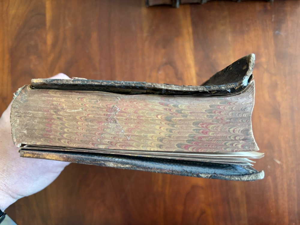 Split hinges unmentioned (reparable with skill and some rice paper), but still a handsome and serviceable copy, largely as described. Arrived well-packed in a heavy box and a waterproof plastic sleeve! Promptly shipped, a good value for money spent! Thanks!