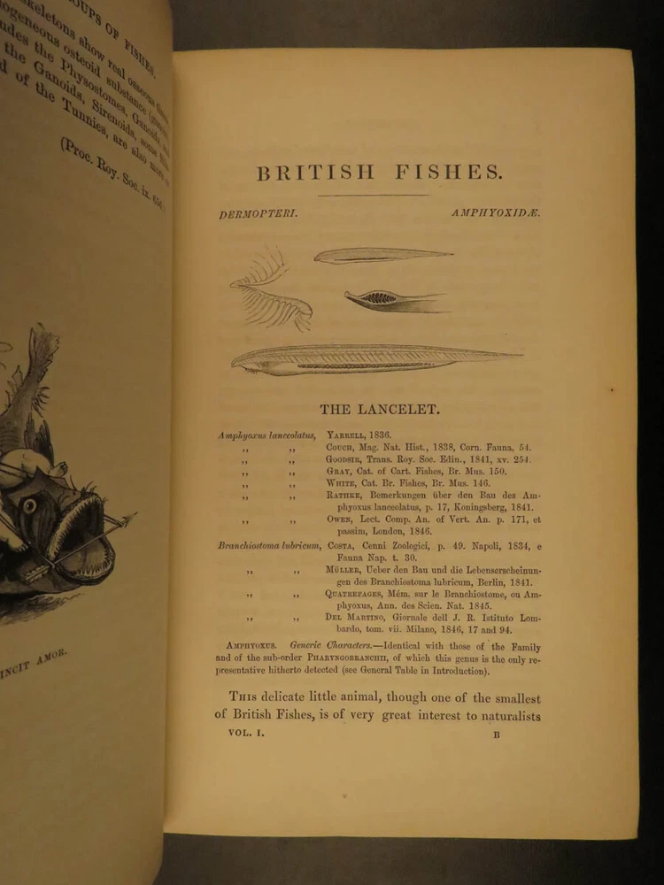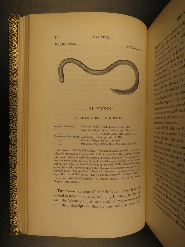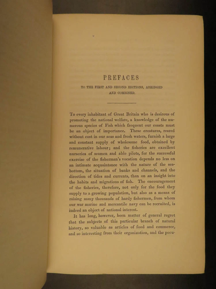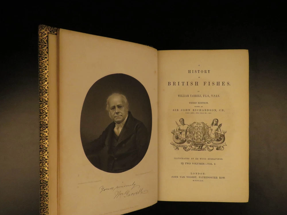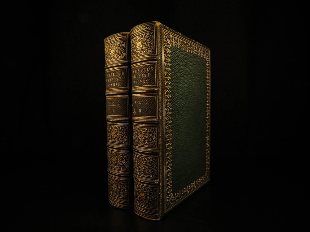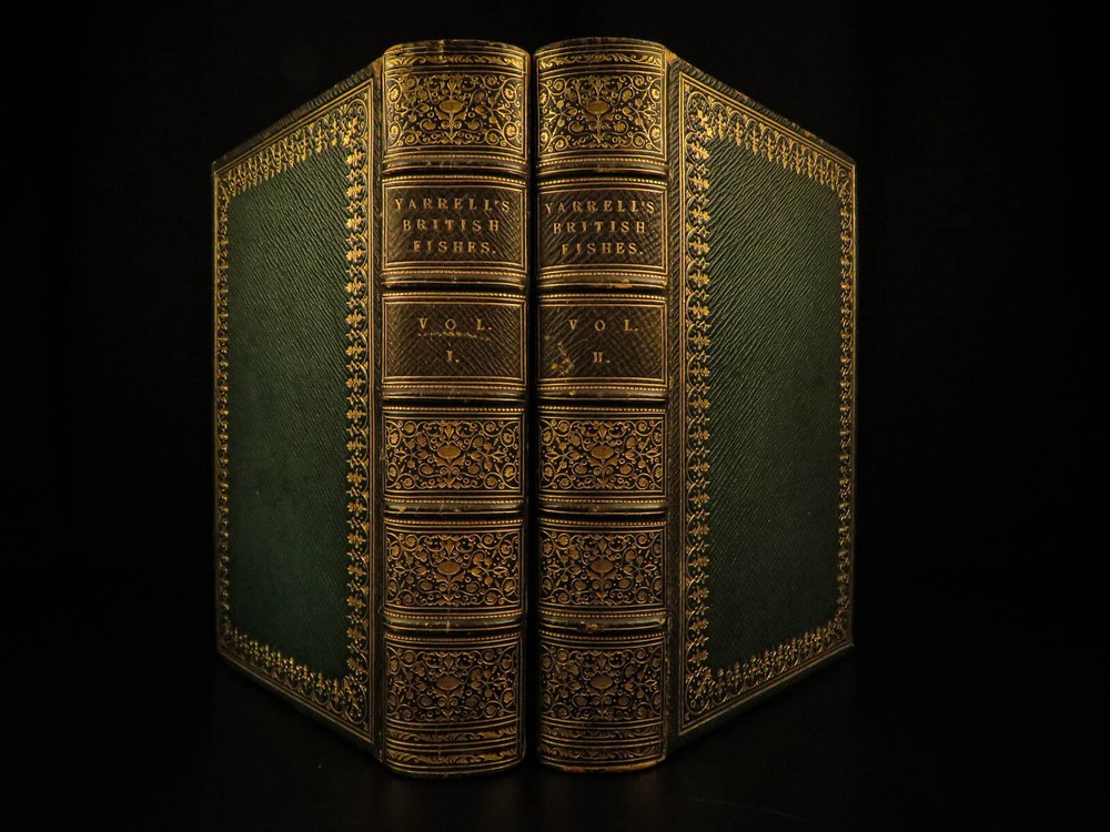 1859 British Fish Illustrated Woodcut Engravings Natural History Yarrell 2v SET The first edition of William Yarrell’s “History of British Fishes’ was published in 1836 with a supplement added in 1839. This 1859 edition contains descriptions of 260 species with illustrated cuts, and many additional ornamental vignettes. According to Westwood & Satchell " indispensable in every English Anglers Library as a work of reference. Yarrell was, besides, an angler, and his work contains many useful hints in connection with the sport (WS). This EXQUISITE 1859 edition is illustrated with 522 woodcut engravings! Item number: #7732 Price: $599 YARRELL, William A History of British Fishes. London: John Van Voorst, Paternoster Row, 1859. Details : · Collation: Complete with all pages o 2 volumes o V1: [xxxviii], 675 o V2:[5], 670, [2] o 522 woodcut engravings · References: Casey Wood p. 639. Freeman p. 379. Westwood & Satchell pp. 243-44. cfStarkman & Read p. 114. Nissen ZBI, 4488 · Language: English · Binding: Leather; tight and secure · Size : ~9in X 6in (22.5cm x 15cm) Our Guarantee: Very Fast. Very Safe. Free Shipping Worldwide. Customer satisfaction is our priority! Notify us with 7 days of receiving, and we will offer a full refund without reservation! 7732