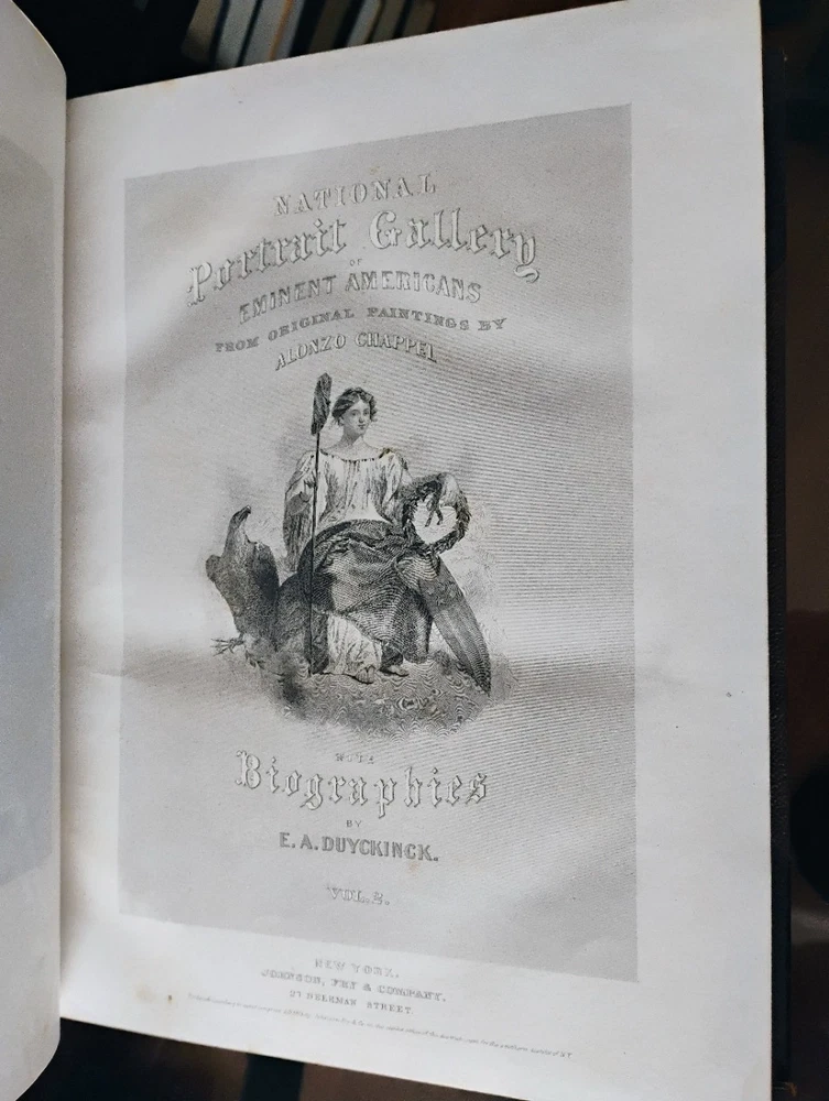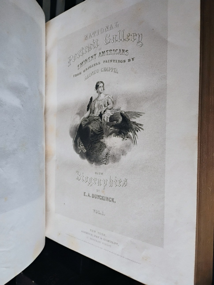 National Portrait Gallery of Eminent Americans Including Orators, Statesmen, Naval, and Military Heroes, Jurists, Authors, etc Evert A. Duyckinck 3/4th leather binding, somw wear and rubbing to binding, gilt page endings, internally some occasional minor spotting but mostly clean. Please let me know if you have any questions. Shipping will be with USPS Media Mail to keep costs down. I can ship with different methods if requested. 30 day returns.