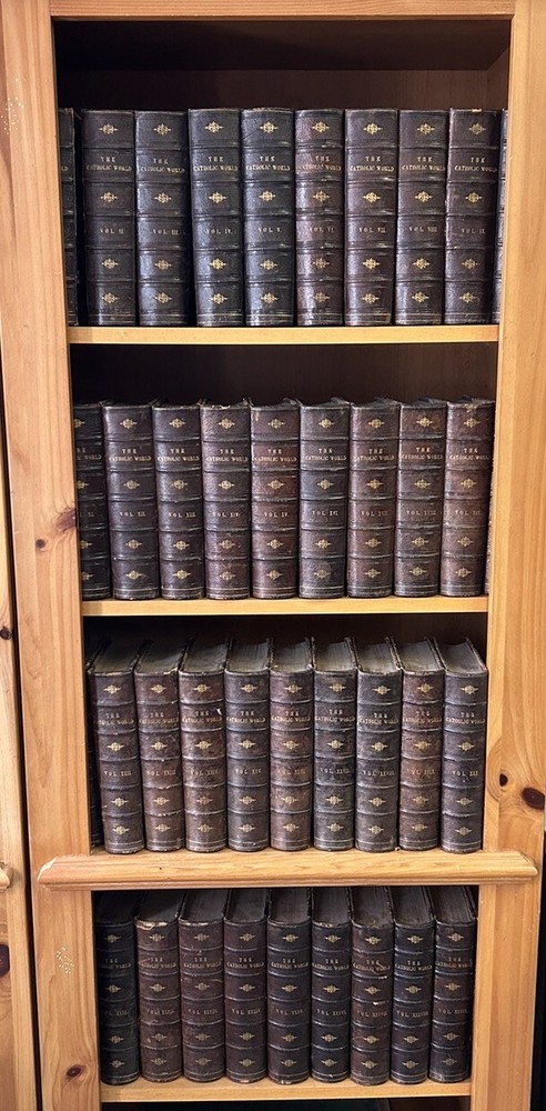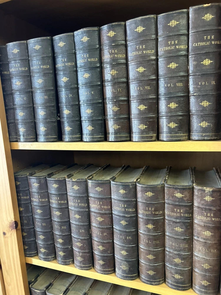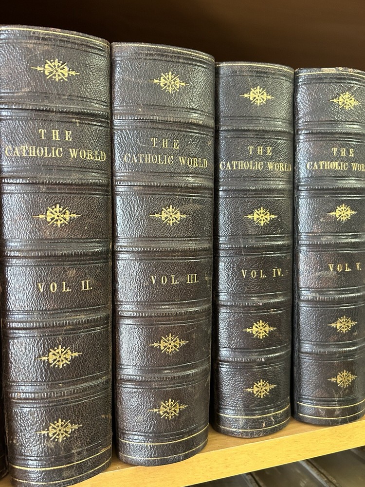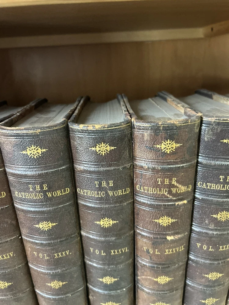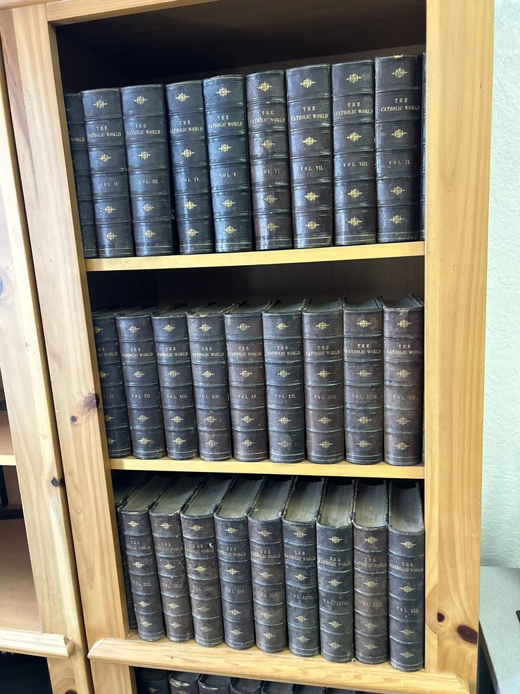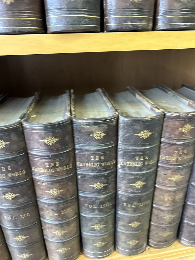 1865 - 40 volume Leatherbound set of the Catholic World. Please utilize pictures to determine the exact condition of the books. If you have any questions or need more pictures, simply send a message and I will reply promptly. International shipping always available.