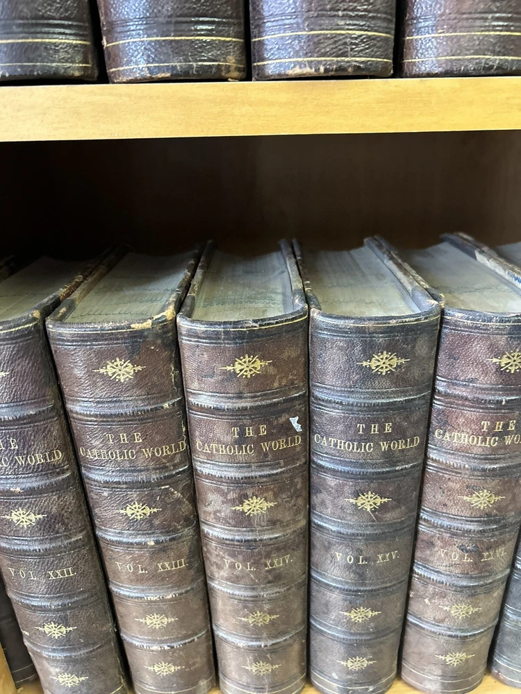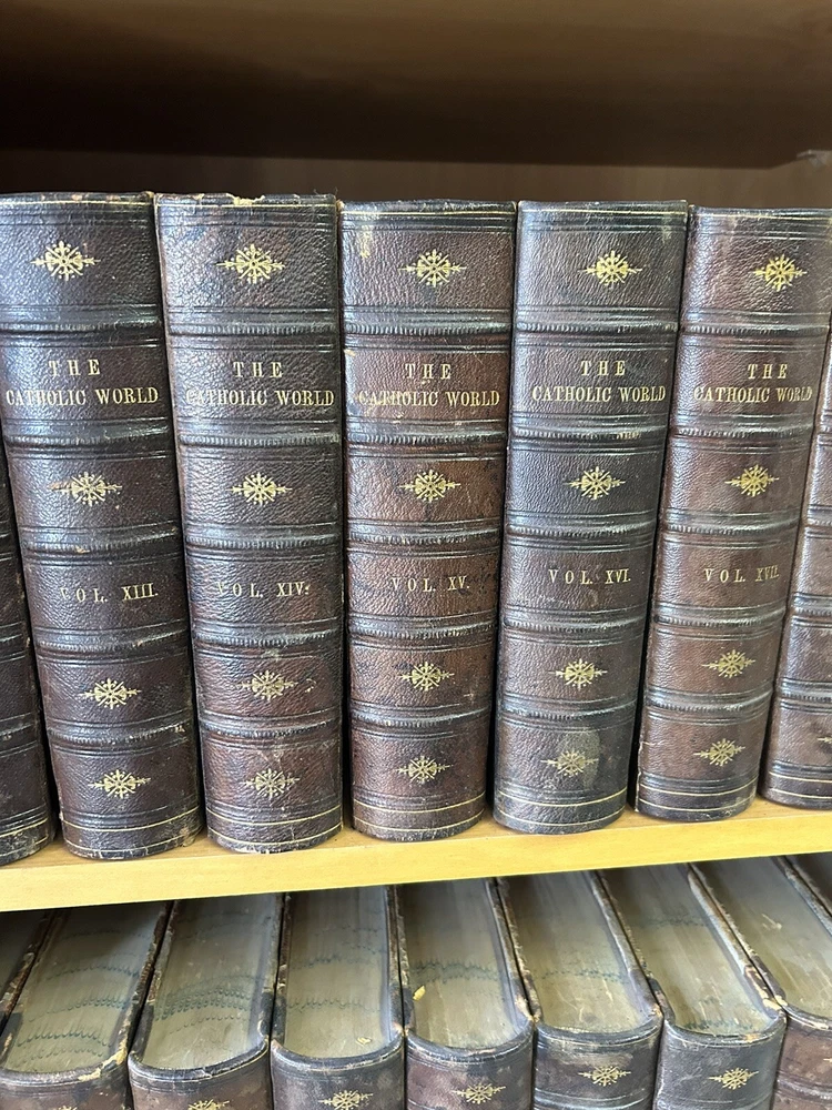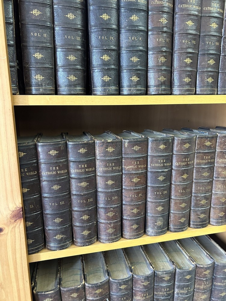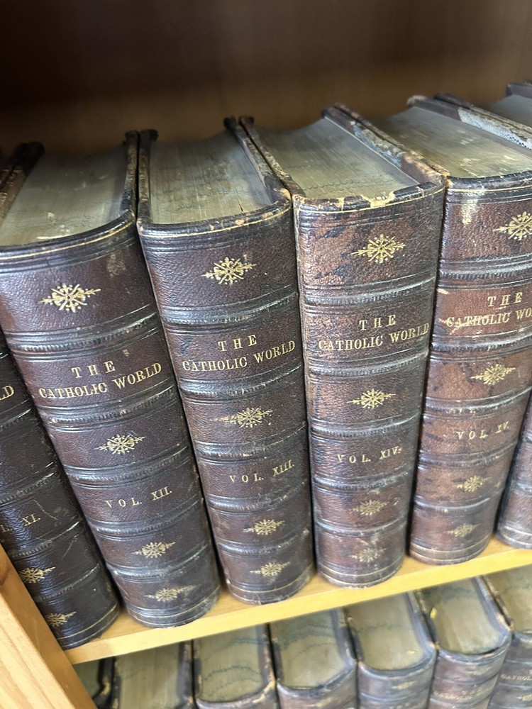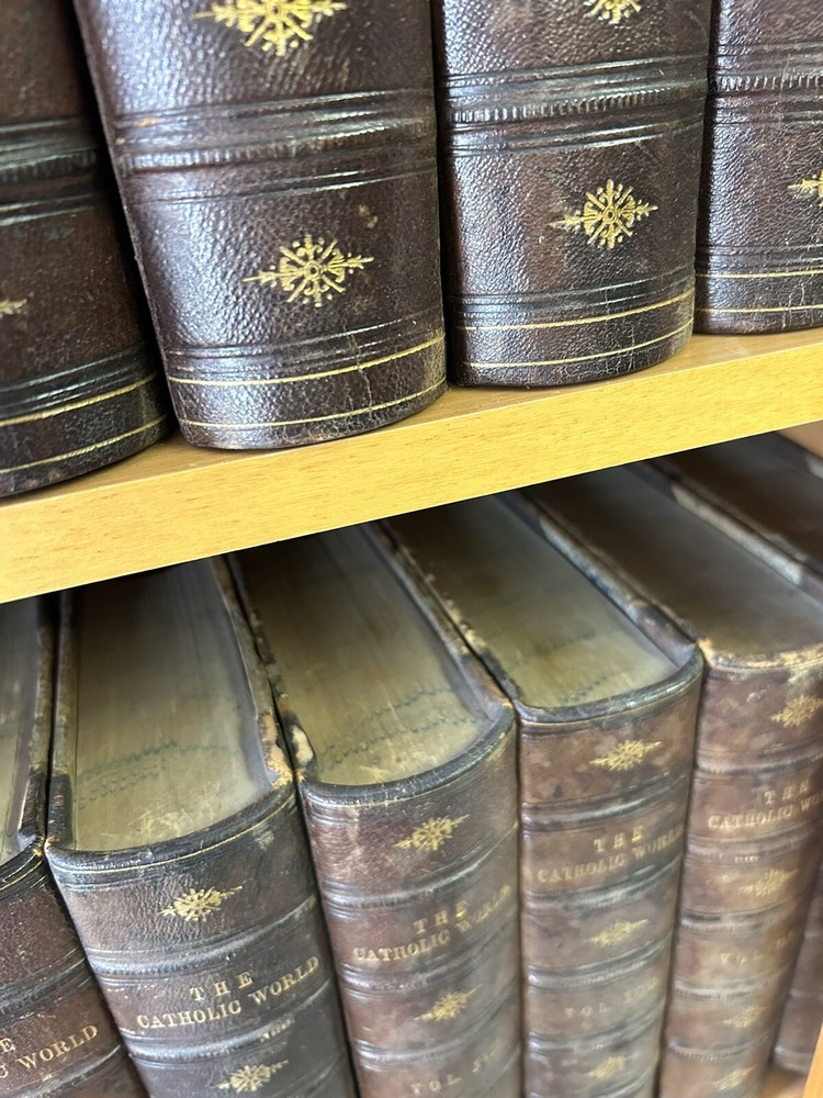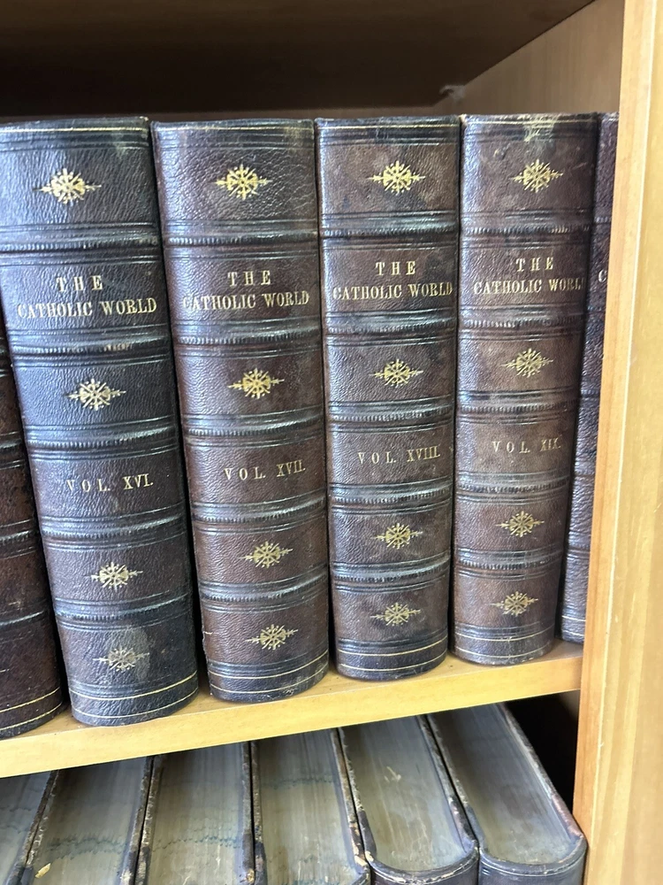 1865 - 40 volume Leatherbound set of the Catholic World. Please utilize pictures to determine the exact condition of the books. If you have any questions or need more pictures, simply send a message and I will reply promptly. International shipping always available.