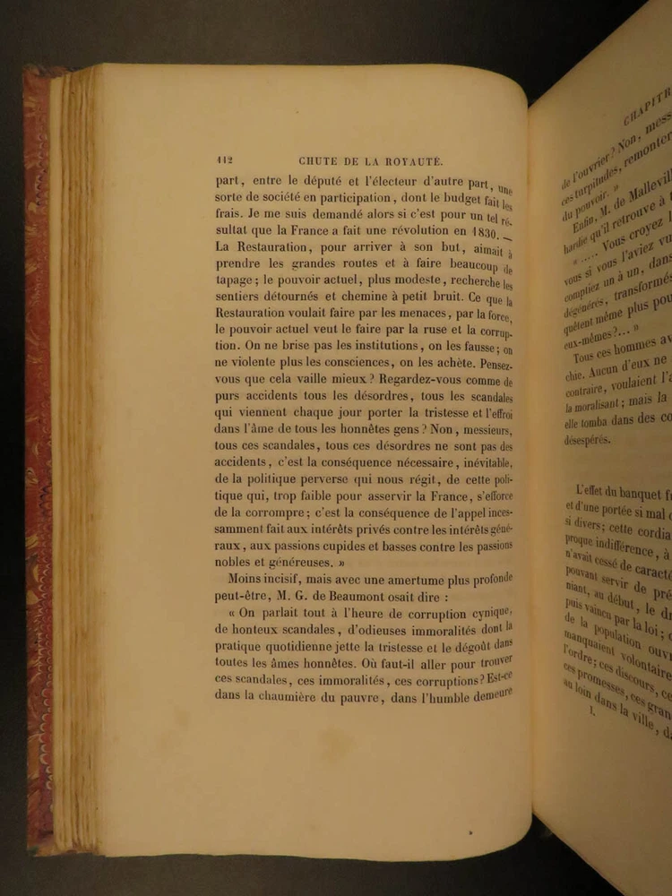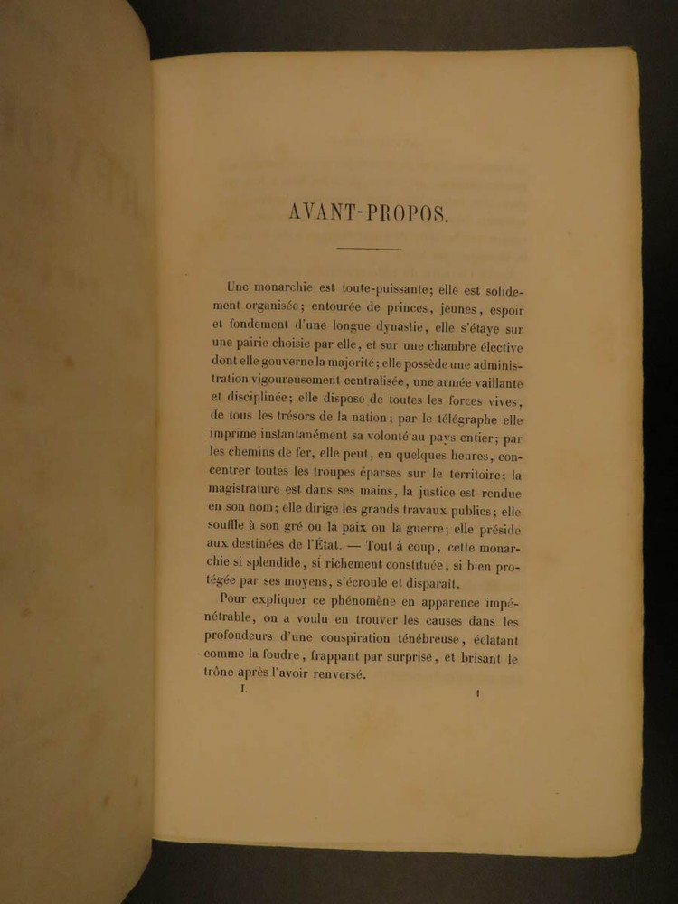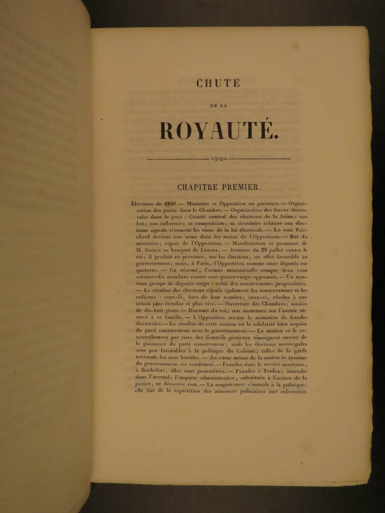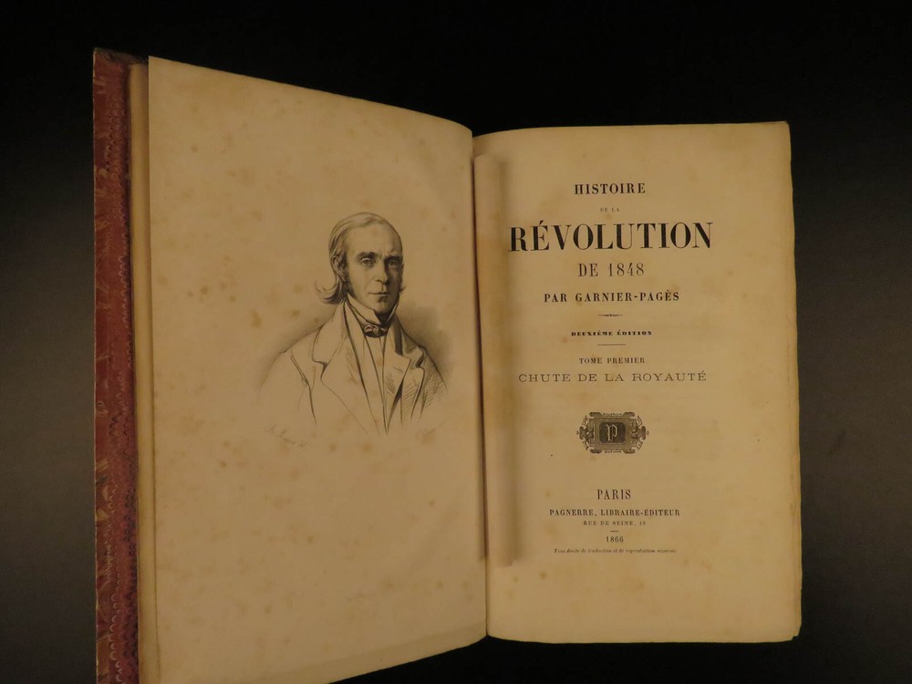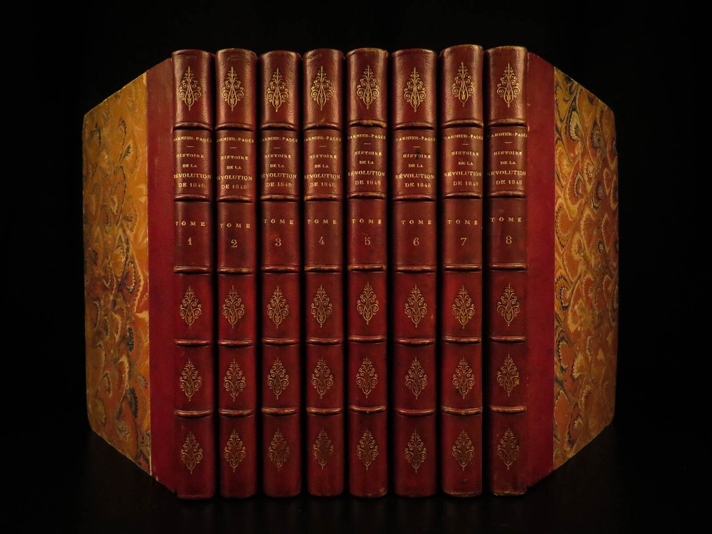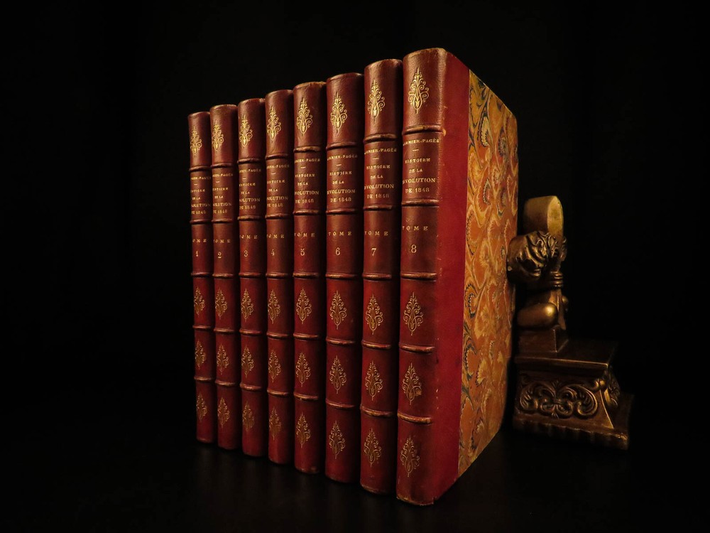 1866 Garnier-Pages History of 1848 French Revolution France Napoleon III 8v SET Louis-Antoine Garnier-Pages was a 19 th -century French politician best remembered for his unpopularity as the Mayor of Paris. In 1848, while in office, he imposed substantial taxation – a move that was concurrent with the Revolutions of 1848. He published an anthology of the 1848 Revolutions, focusing on the fall of French royalty, the establishment of the French Second Republic, and the effects on other European revolutions. Item number: #7707 Price: $550 GARNIER-PAGES, Louis-Antoine Histoire de la revolution de 1848 Paris : Pagnerre, 1866. Details : · Collation: Complete with all pages o 8 volumes o Portrait frontispiece in vol 1 · Language: French · Binding: Leather; tight and secure · Size : ~9.5in X 6.5in (24cm x 16cm) Our Guarantee: Very Fast. Very Safe. Free Shipping Worldwide. Customer satisfaction is our priority! Notify us with 7 days of receiving, and we will offer a full refund without reservation! 7707