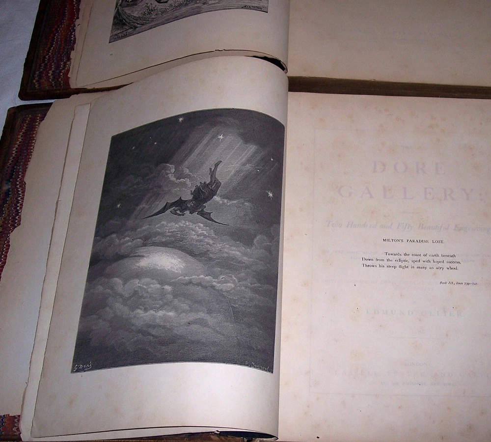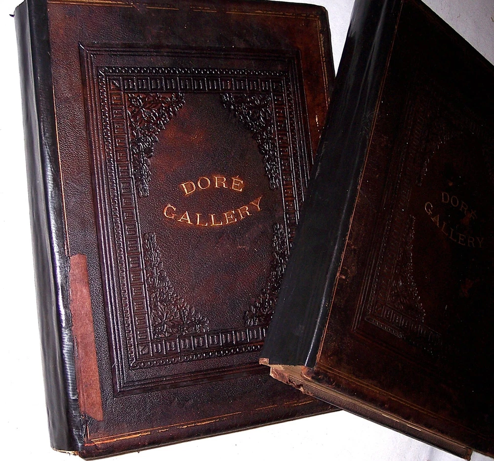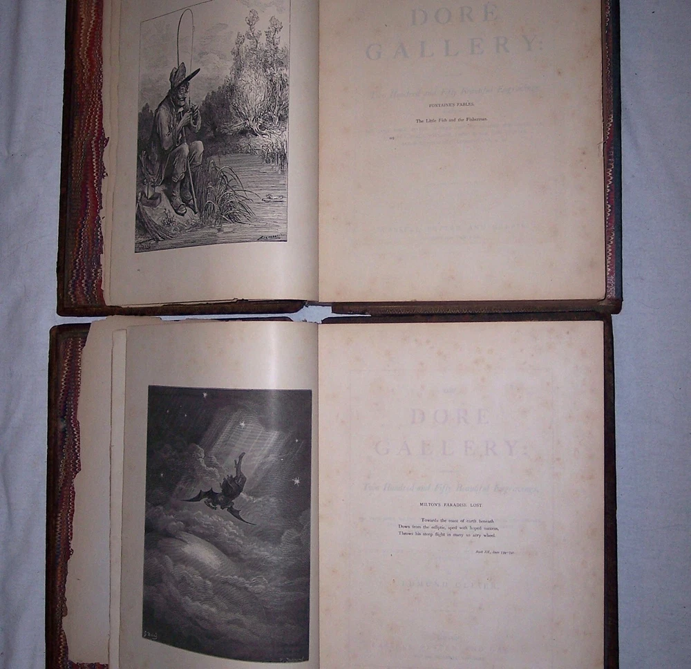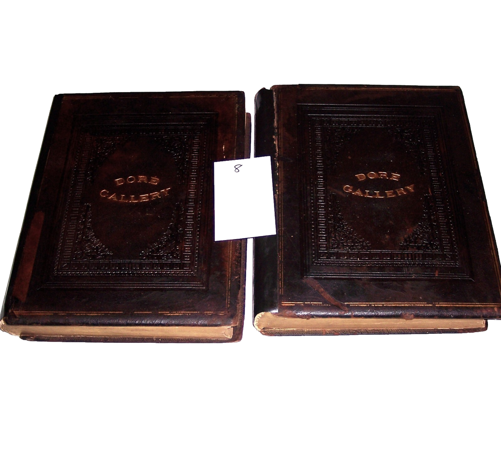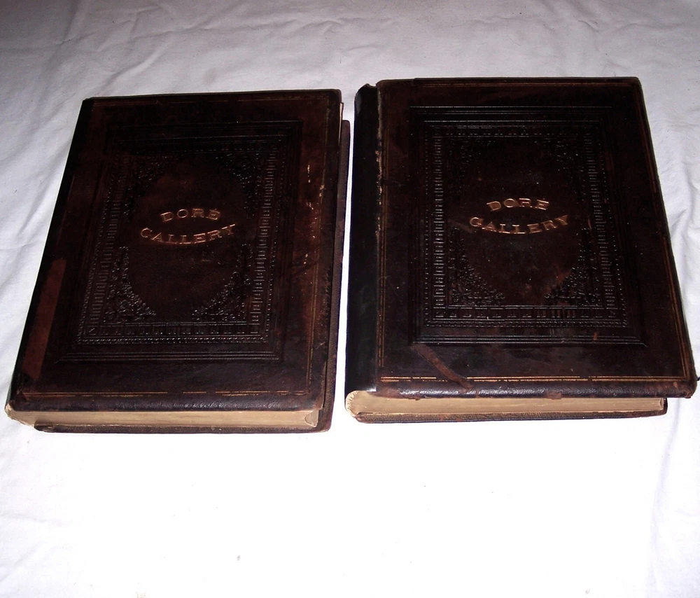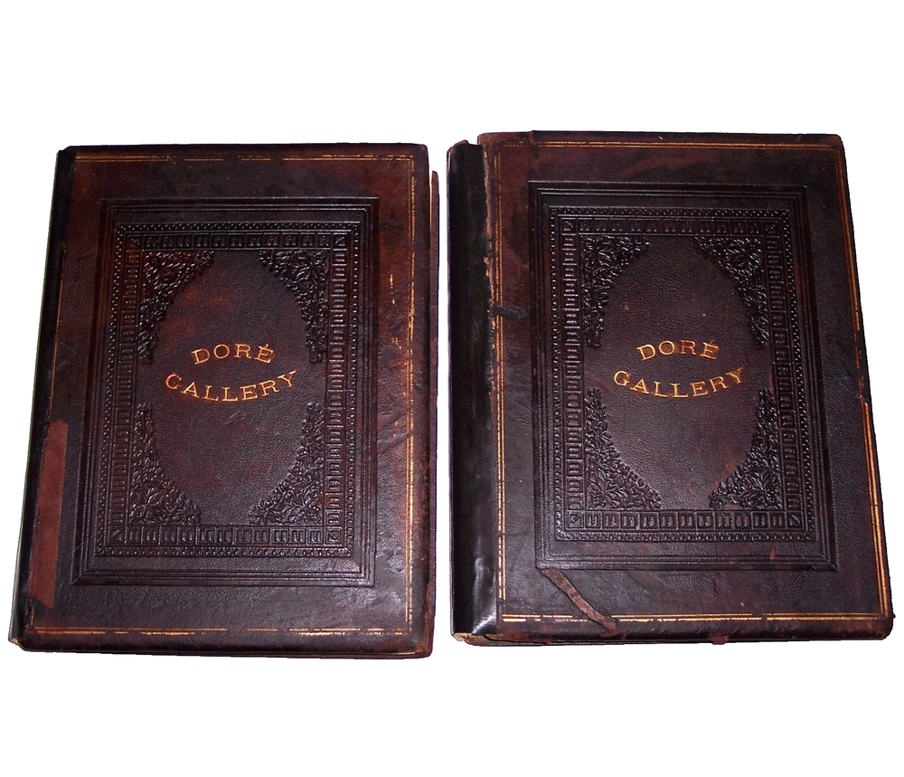 1870 C. Gustave Dore Gallery Book Set W/250 Illustrated Engravings Each Book Estate Find. I searched every where to find another exactly like this one and could not. Gustave Dore was a prolific engraver, artist, illustrator, and sculptor, working primarily as a wood and steel engraver. He produced over 100,000 sketches in his lifetime, and lived to be 50 years old, averaging 6 sketches per day for each day he lived. By the time he died he had also earned over $2 million, living a life of affluence. Even though he was an untrained, self-taught artist, who never used a live model, and who could not sketch from nature, his work is considered some of the most important in the entire engraving art world. As a child, young Dore was an avid artist, and earned his way as an illustrator in a Paris bookshop, publishing his first drawings when he was 15 years old. His young age and great talent drew much attention, which led to newspaper and journal articles written about the “child illustrator,” and generated further interest in the artist. As an illustrator, Dore created engravings for the books of Balzac, Rabelais, Milton, Dante, Edgar Allen Poe, and Lord Byron. He was commissioned to illustrate a version of the English Bible, which was extremely popular, allowing for the foundation of his own gallery, the Dore Gallery. For his work on Dante’s Inferno, he was decorated with the Cross of the Legion of Honor. Text by Edmund Ollier (including a memoir of Dore) 250 illustrations by Gustave Dore Leather binding Each original 1870 book is a collection of 250 full-page Doré wood engravings from 11 of his illustrated editions, including Dante, Milton, Cervantes, and the Bible. Contains a selection of the best of Doré s illustrations from the Bible, Milton s Paradise Lost, Dante s Inferno, Cervantes Don Quixote, La Fontaine s Fables and Baron Munchausen, among others The plate engravings are stunning. In good overall condition for age other than the spine was replaced at some point in time with black electrical tape The first few and last few pages show most wear and staining, with inside pages in good shape for age with minor foxing and stains Due to its age and with such huge books, I always consider these fragile and to be understandably handled with care especially when opening to read Set weighs approximately 22 pounds and measures approx 15.5 X 2 X 12 inches each book. FREE LOCAL PICKUP Selling As-Is PRODUCT LIABILITY DISCLAIMER : No warranty of any kind, expressed or implied, is made regarding the function, use of and/or safety of the product(s) sold. Buyer assumes all risk and liability resulting from purchase of above item(s) . Also check out my store for more Visit My eBay Store: Horse Cents and Pony Tales