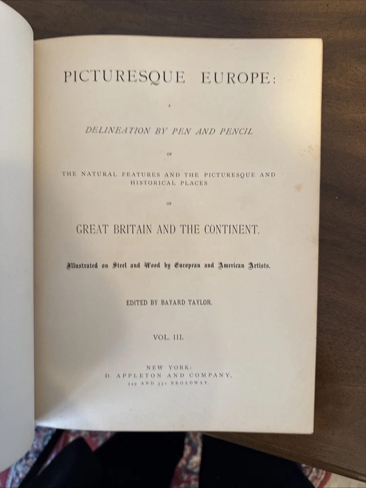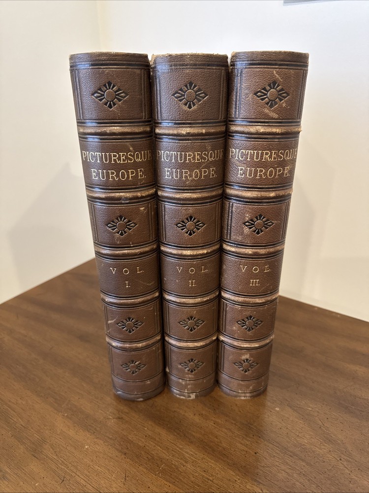 Explore the charm of vintage literature with the 1875 edition of "Picturesque Europe," comprising Volumes 1, 2, and 3. Encased in a refined leather binding, these books offer a glimpse into the aesthetic and cultural narratives of Europe during the 19th century. A testament to the grandeur of historical travelogues, they are a collector's delight and a timeless addition to any antiquarian library. Each volume is a window into the past, filled with rich narratives and illustrated plates that capture the essence of the era's European landscapes and histories. The prestige condition of these leather-bound classics adds an air of sophistication and exclusivity to your collection, making them not just reading materials but also pieces of history . These three books are in pristine condition and have rarely been handled. A true rare find wor this kind of quality.