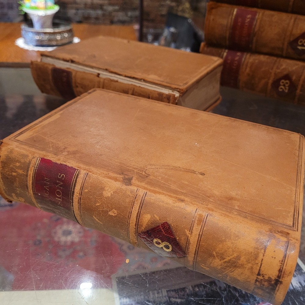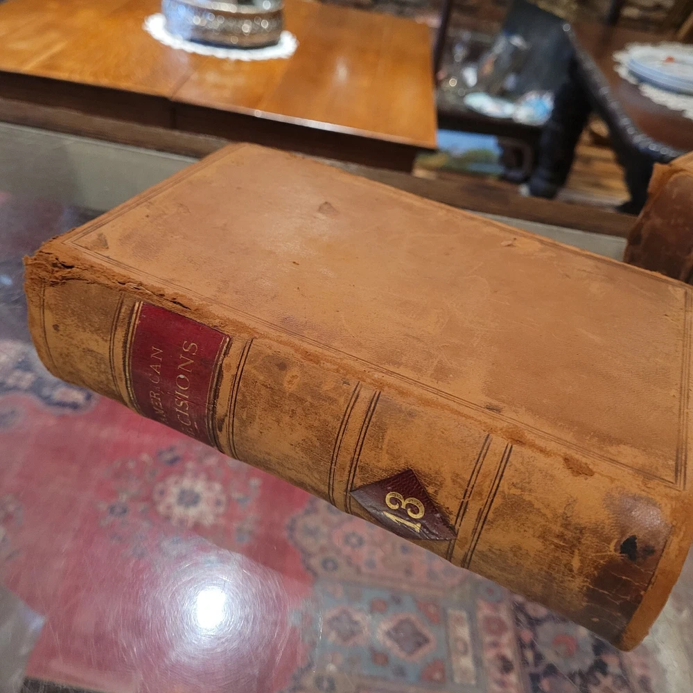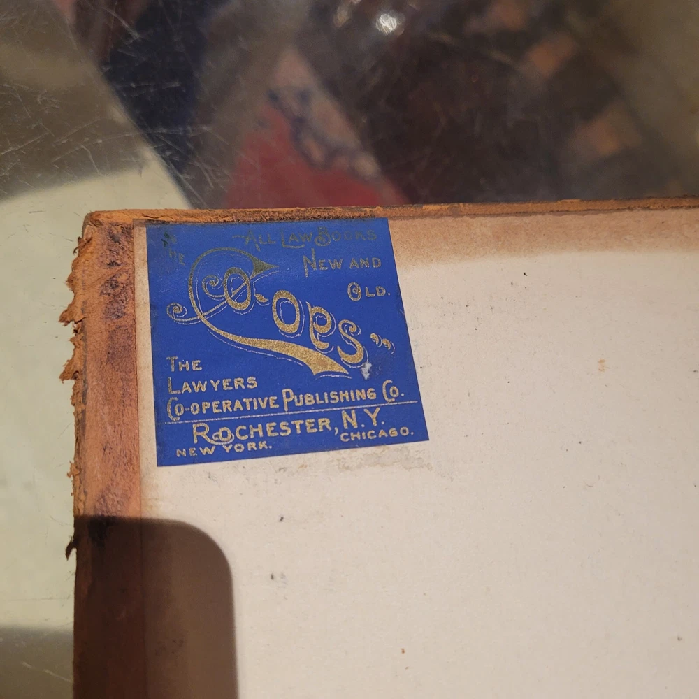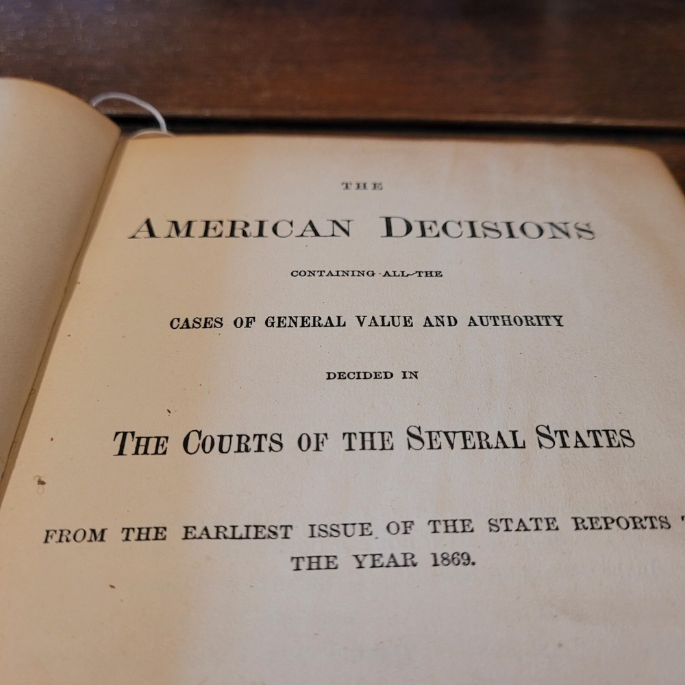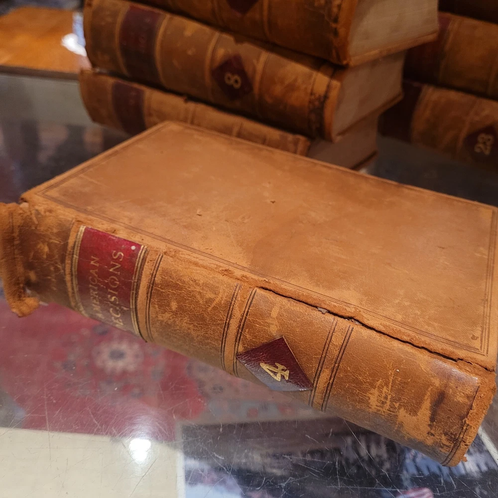 Collection of court decisions that were decided in several states. Published in San Franciso by A.L. Bancroft and Company (Law book publishers, booksellers and stationers). Books are stamped with the name of Swan, Martin & Martin from Atlantic ,Iowa. Tasteful decor addition for a law office.