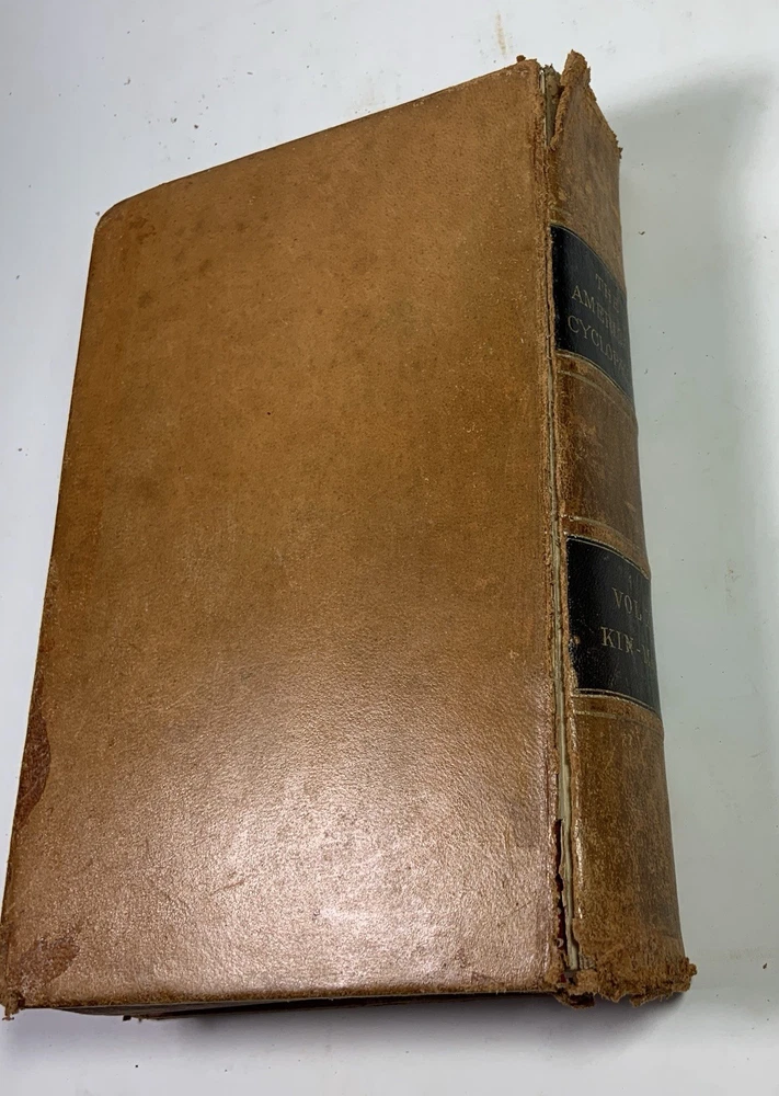 This is a partial set of The American Cyclopaedia , volumes X through XIV, published by D. Appleton & Co. The set includes: Volume X (1883) Volume XI (1883) Volume XII (1883) Volume XIII (1883) Volume XIV (1883) All volumes are original 19th-century editions, leather-bound with marbled page edges. Condition: The leather covers show typical wear for their age, including corner and edge damage, surface peeling, and some splitting along the spine joints. Some volumes have noticeable splitting and should be handled with care, though all covers remain attached. Page edges also show discoloration and wear from age and handling. Inside, the pages are aged but in good, readable condition. Most are unmarked, though some volumes may contain prior owner notations such as pricing, acquisition dates, names, or dates completed. A solid partial set for collectors, historical research, or period decor. Please feel free to message with questions or additional photos. Free shipping via Fed Ex within the continental U.S. only. The American Cyclopaedia, D. Appleton, antique encyclopedia, Victorian reference books, leather-bound books, partial set 1800s, collectible history, vintage nonfiction, historical library decor